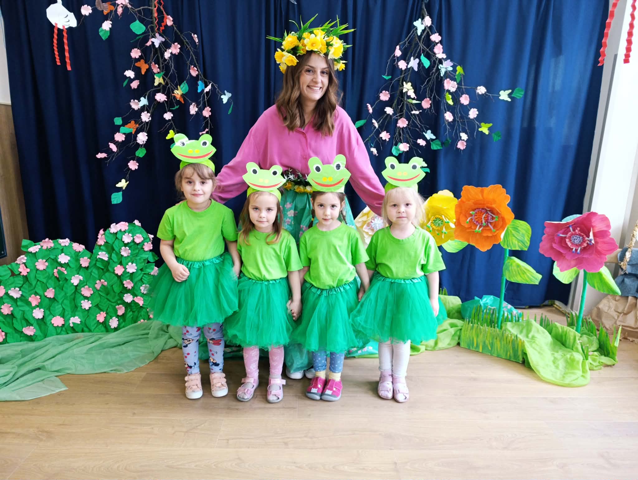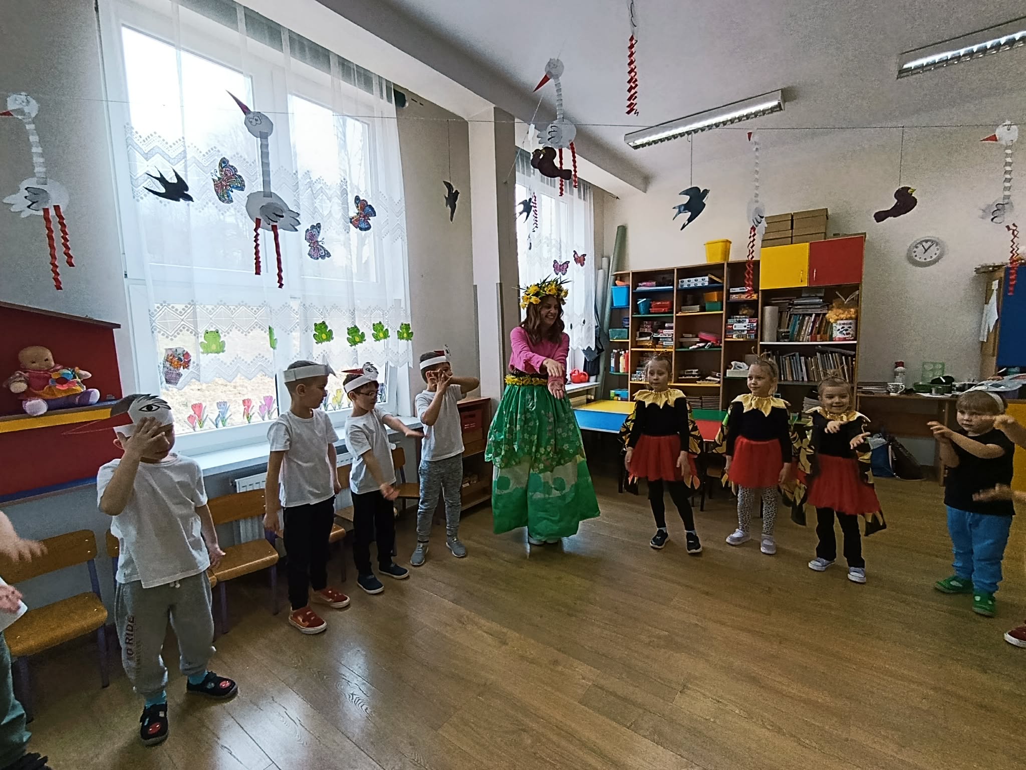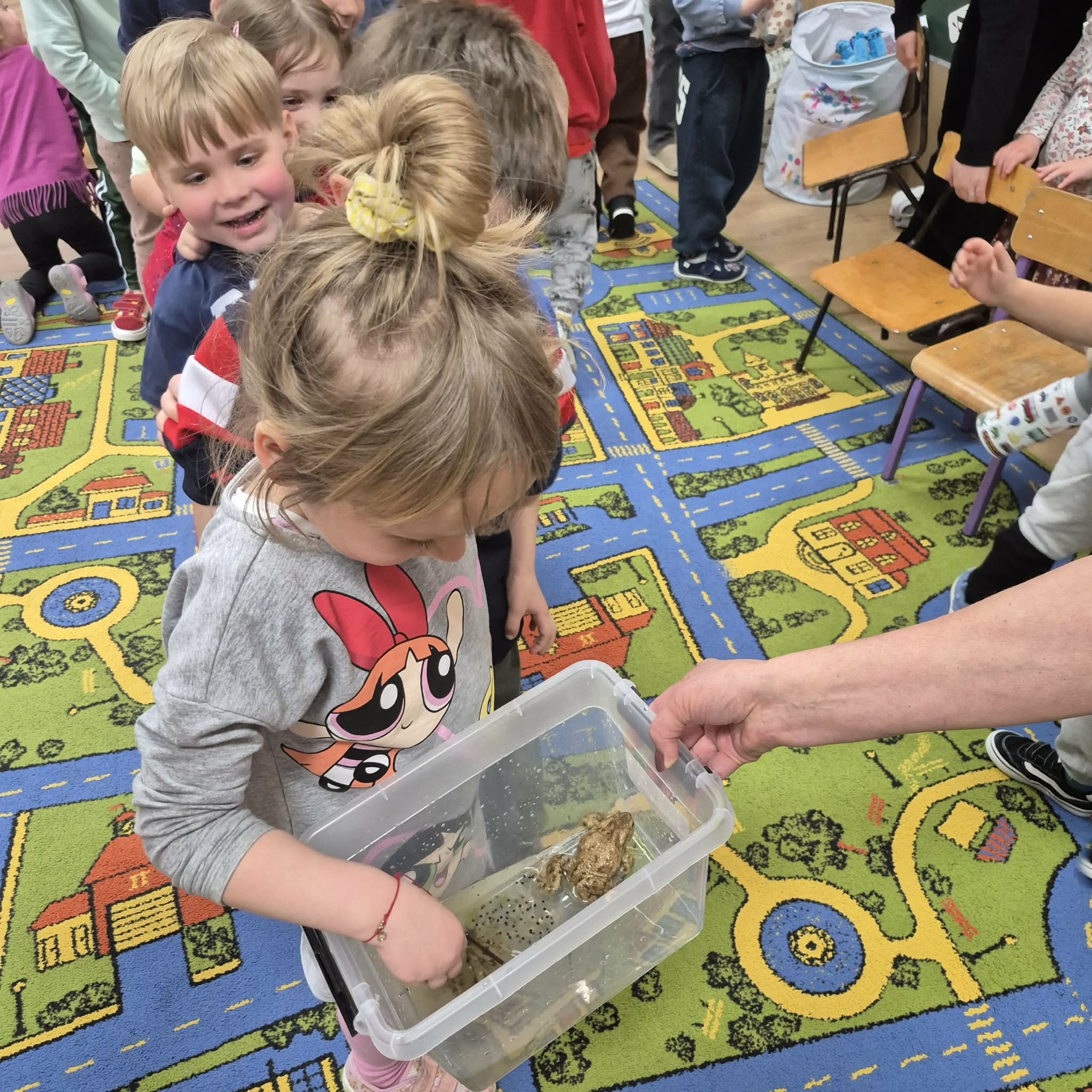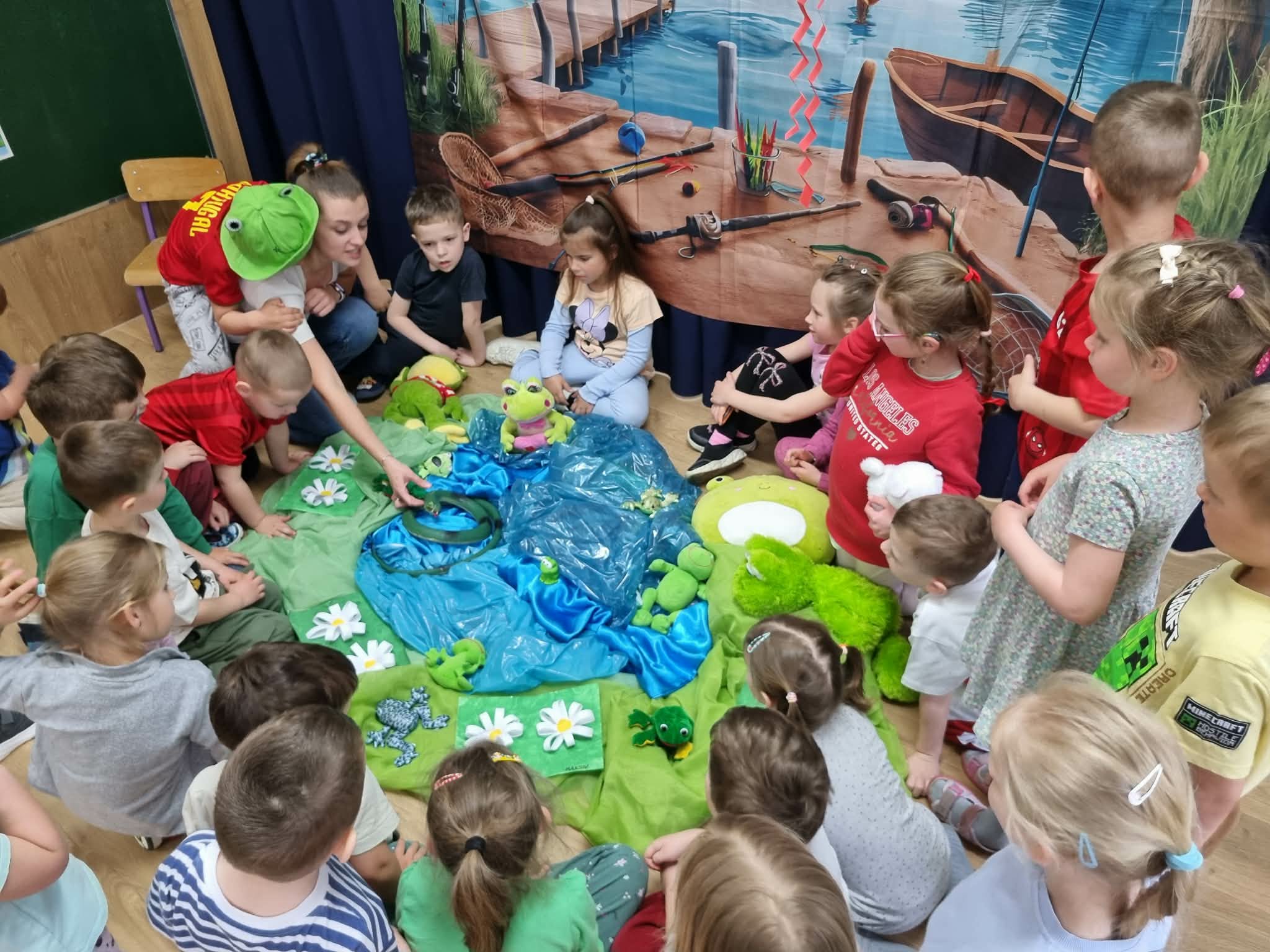 Dzień ŻABY, a właściwie dwa dni, w naszym przedszkolu upłynęły pod znakiem koloru zielonego i wielkich skoków. Dostarczyły one dzieciom mnóstwo emocji i nowej wiedzy. Największą atrakcją okazało się spotkanie z prawdziwymi żabami. Tutaj podziękowania należą się mamie Hubercika – p. Kasi. Przedszkolaki z ogromnym zaciekawieniem (i dużą odwagą!) przyglądały się naszym gościom, poznając z bliska ich zwyczaje oraz to, jak miła w dotyku i niezwykła jest ich skóra. W części edukacyjnej dzieci zamieniły się w małych przyrodników. Dowiedziały się m.in.: jak wygląda niezwykła przemiana od kijanki do dorosłej żaby, dlaczego żaby są pożyteczne i jak pomagają nam w ogrodach, że nie wszystkie żaby są zielone! To były dni pełne uśmiechu, nauki empatii wobec zwierząt i wspólnej, “rozskakanej” zabawy!