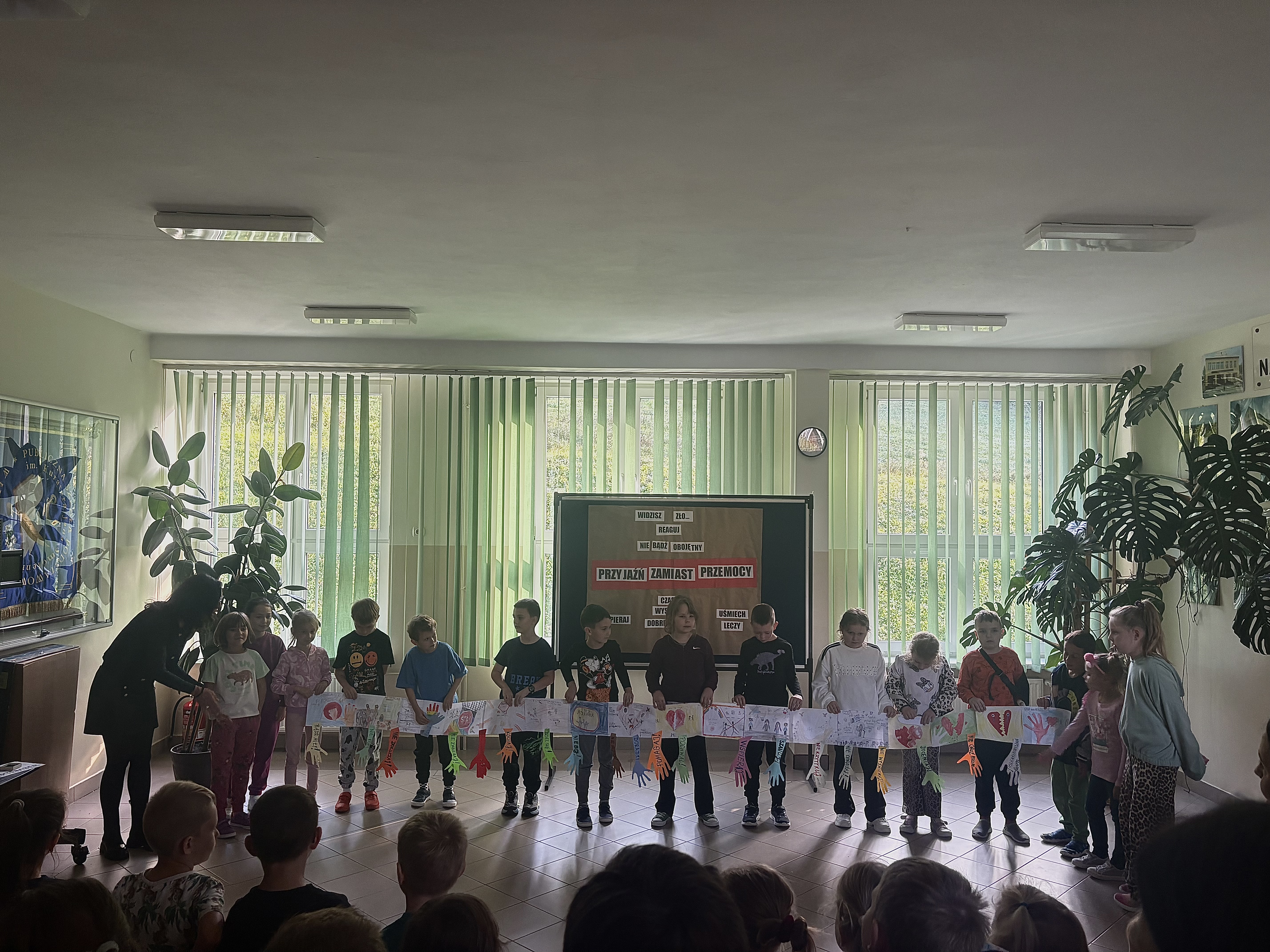 Podobnie jak w ubiegłych latach, nasza szkoła włączyła się w ogólnopolską akcję „Szkoła do hymnu”, polegającą na wspólnym odśpiewaniu „Mazurka Dąbrowskiego”. W piątek, 7 listopada, o symbolicznej godzinie 11:11. Uczniowie i nauczyciele szkoły z dumą i wzruszeniem odśpiewali cztery zwrotki naszego hymnu narodowego, oddając w ten sposób hołd wszystkim, którzy walczyli o wolność i niepodległość Polski. Wydarzenie odbyło się w sali gimnastycznej, w pięknej patriotycznej oprawie – przygotowanej specjalnie na akademię z okazji Narodowego Święta Niepodległości. Uroczysta dekoracja i biało-czerwone barwy podkreślały rangę tej wyjątkowej chwili. Dziękujemy wszystkim, którzy wzięli udział w tym symbolicznym, ale niezwykle ważnym wydarzeniu, łącząc się we wspólnym śpiewie i radości z bycia częścią wolnej Ojczyzny.