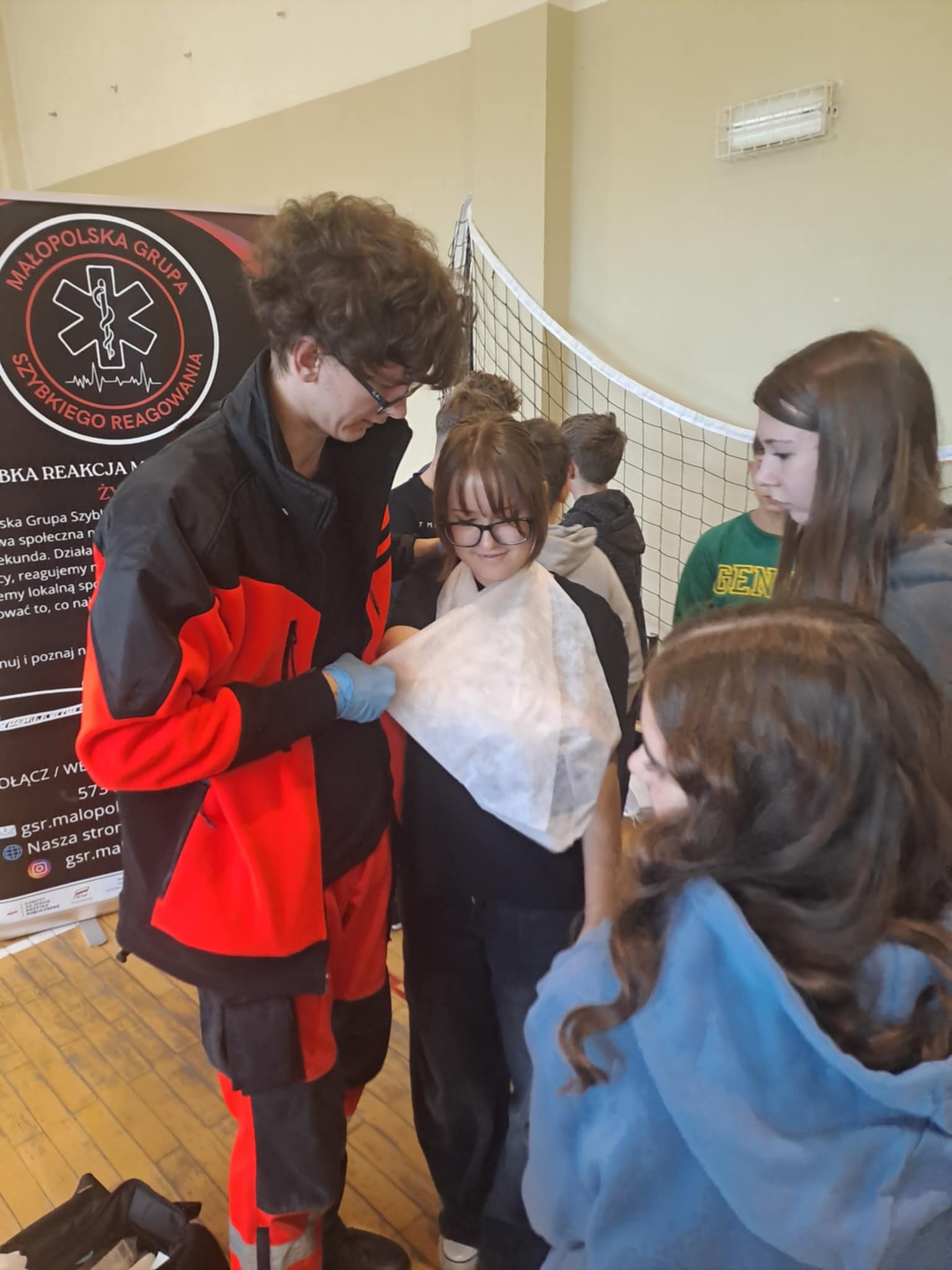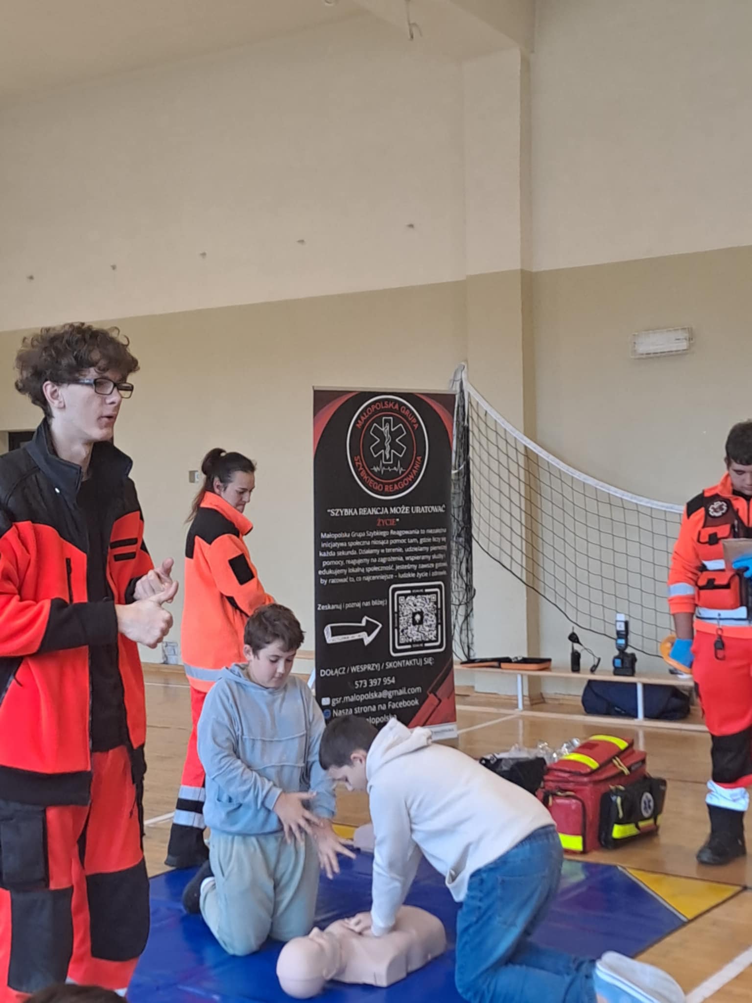 W poniedziałek 27 października mieliśmy okazję gościć w naszej szkole Małopolską Grupę Szybkiego Reagowania. Uczniowie po raz kolejny mieli możliwość przypomnieć sobie działania związane z udzielaniem pierwszej pomocy. Bardzo serdecznie dziękujemy ekipie za sprawne i wartościowe przeprowadzenie zajęć.