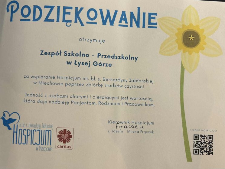 ZBIÓRKA DLA HOSPICJUM W MIECHOWIE ZAKOŃCZONA