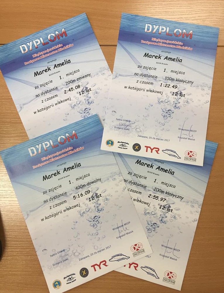 Jestem wdzięczna moim Siostrom oraz Kolegom i Koleżankom z klasy, a także z sekcji pływackiej za trzymanie za mnie kciuków i kibicowanie mi.