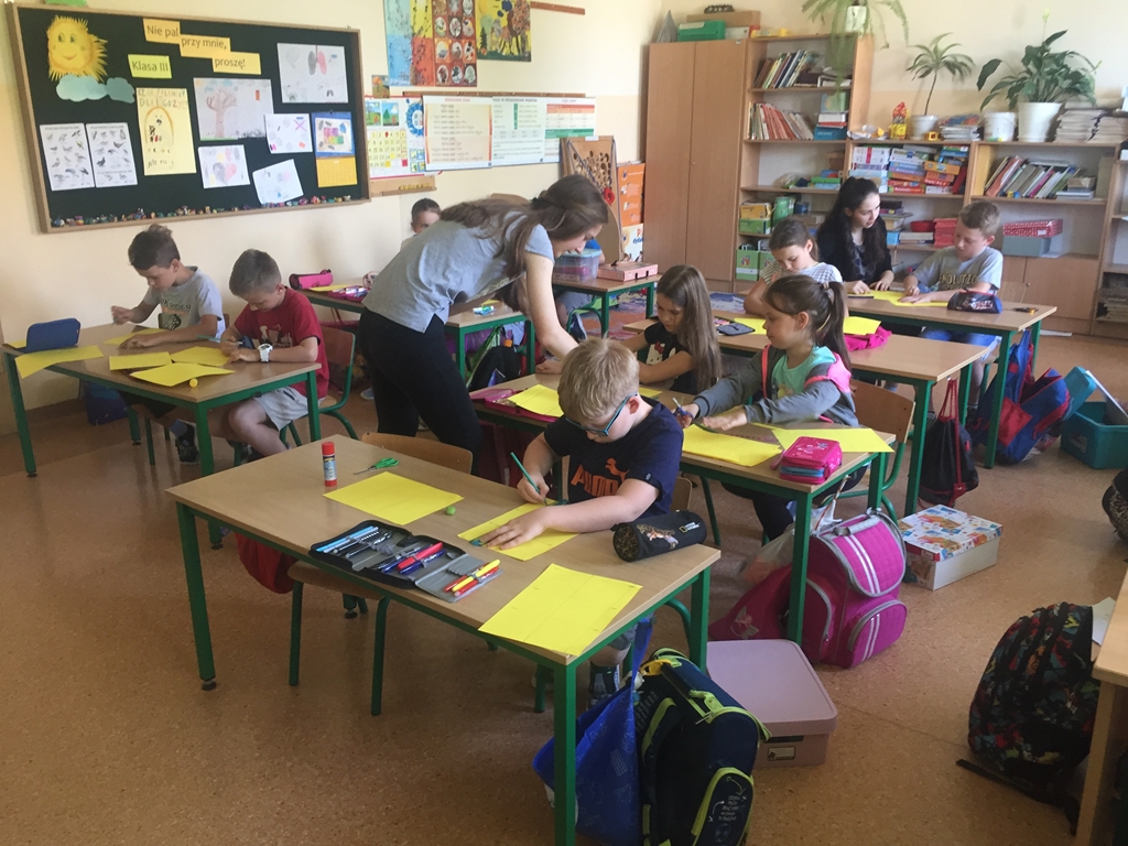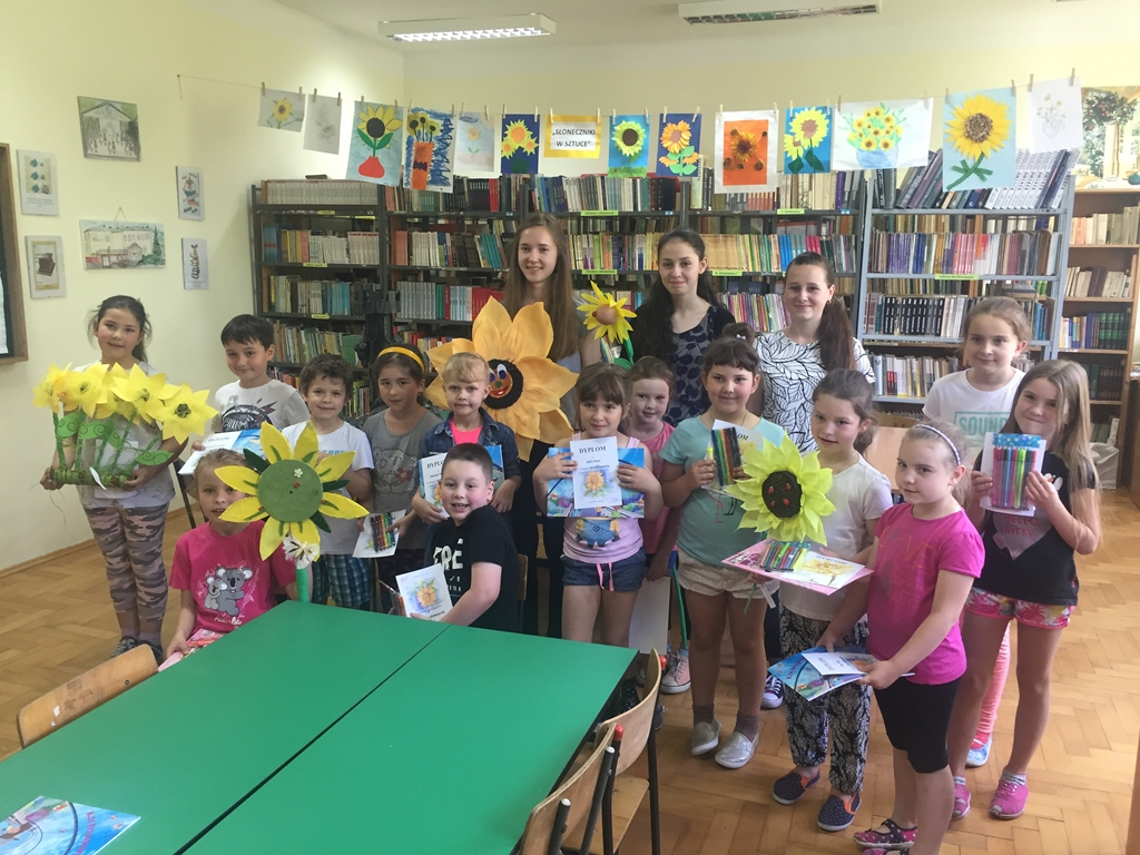o najsłynniejszych artystach malujących słoneczniki oraz o motywie słonecznika w sztuce użytkowej. Przeprowadziły także warsztaty plastyczne w kl. III, których efektem końcowym był, własnoręcznie wykonany z bibuły i papieru przez uczniów, słonecznik. Chyba najbardziej emocjonujący element projektu to konkurs dla kl. 0-III, przeprowadzony w dwóch kategoriach- przestrzennej i płaskiej, zatytułowany Słonecznik. Wszystkim uczestnikom konkursu zostały wręczone dyplomy