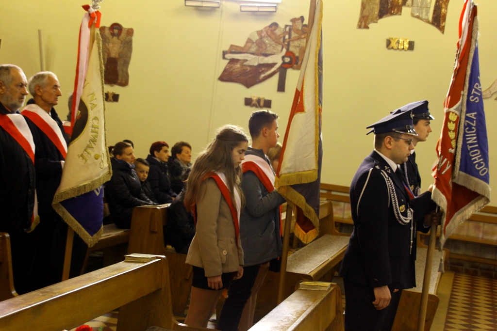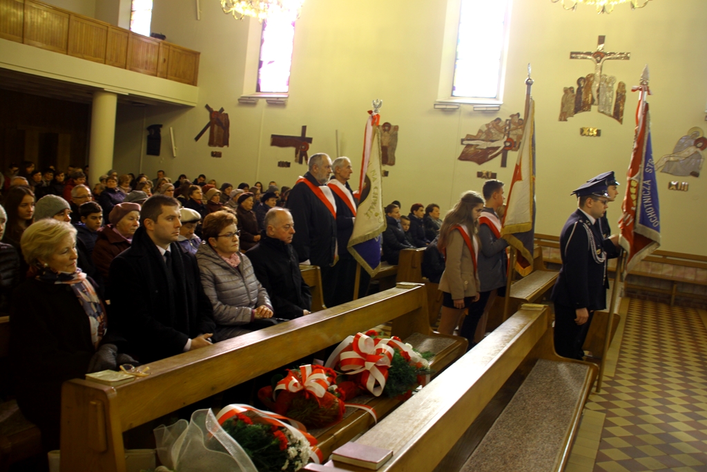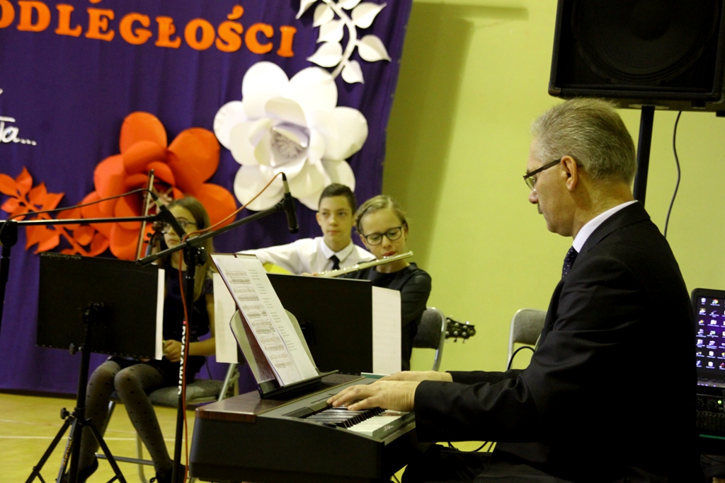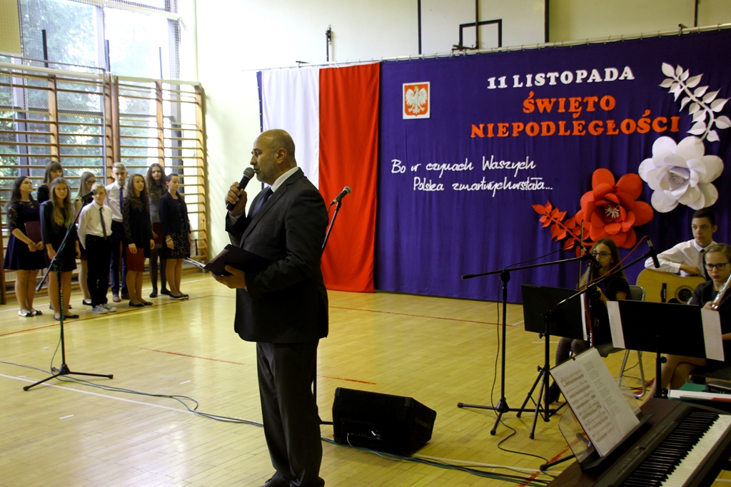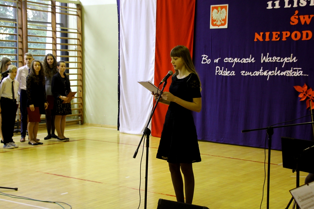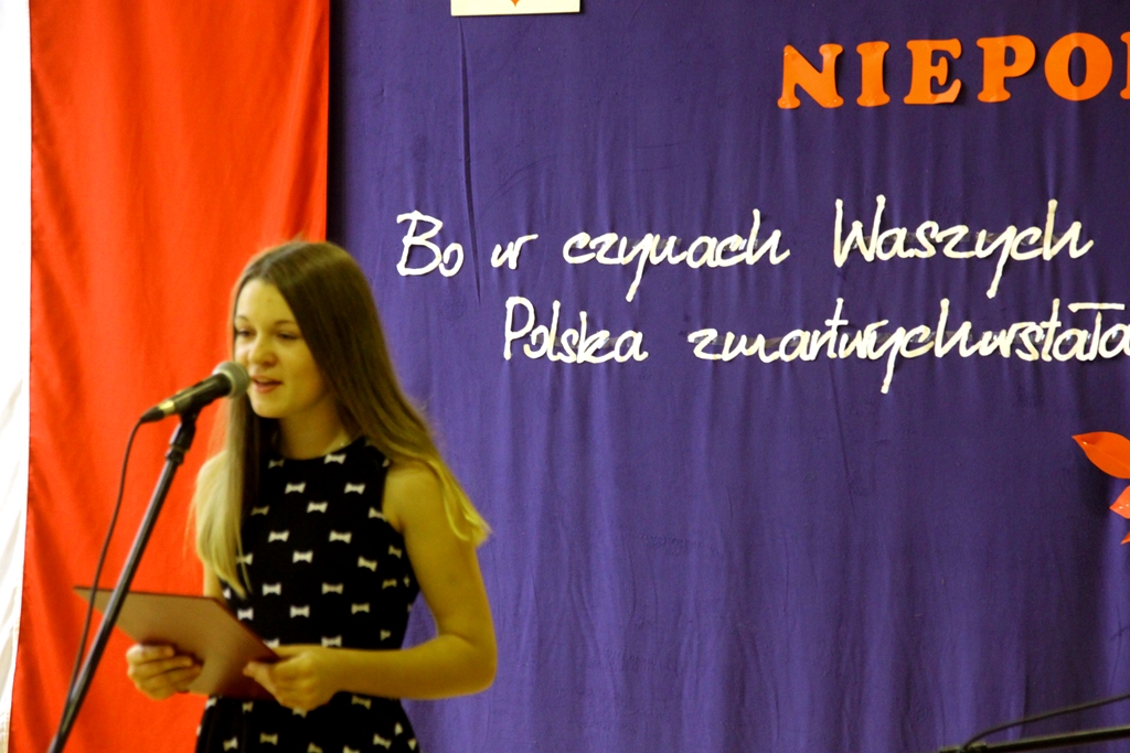 Goście przybyli na uroczystość zostali podjęci grochówką- wojskową, chociaż ugotowaną w naszej szkolnej kuchni, następnie wszystkich zgromadzonych powitał dyrektor Dębińskiego Centrum Kultury, pan Włodzimierz Gurgul. W końcu, po wypełnionym obowiązku wobec Poległych i uczcie dla ciała, przyszedł czas na ucztę dla ducha. I tutaj uczniowie Zespołu Szkolno-Przedszkolnego pod opieką i przewodnictwem dyrektora, pana Artura Potępy, jak zawsze stanęli na wysokości zadania. Montaż słowno-muzyczny, z wzruszającymi recytacjami, patriotycznymi piosenkami pięknie śpiewanymi i granymi „na żywo” oraz „Gwóźdź” programu – Polonez w wykonaniu dzieci z klasy III zasłużyły na gromkie brawa