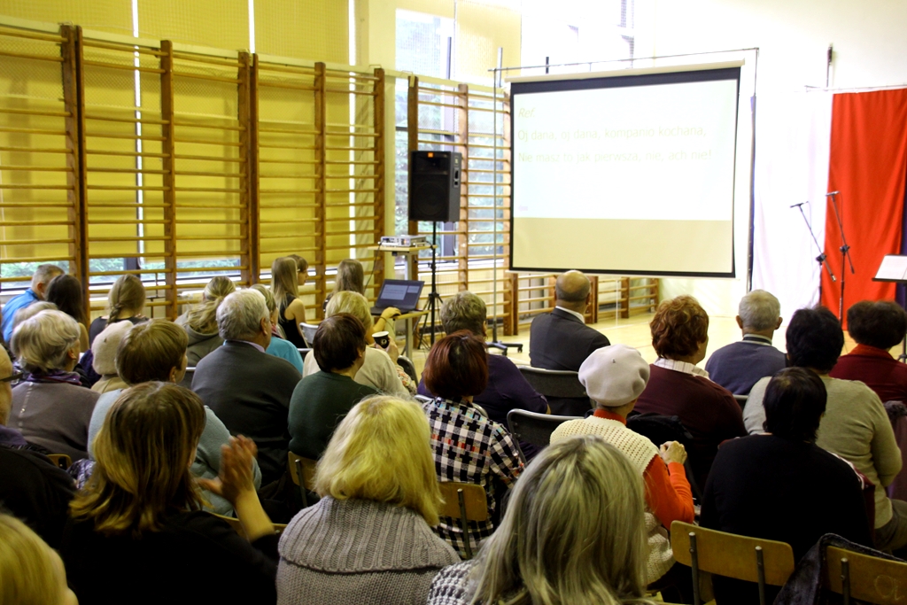 Zebrani mogli także wysłuchać pieśni patriotycznych, w wykonaniu Scholii Dominikańskiej Affectus Populi, przygotowanych przez panią Anetę Kanię . Następnie popłynęły pieśni – również patriotyczne, ale już śpiewane przez wszystkich zebranych, niewątpliwie było to „patriotyczne śpiewanie”, a komu od niego nieco osłabły siły, mógł się wzmocnić w myśl starej maksymy „cukier krzepi”, gdyż na sali nie zabrakło słodkości dla gości.
