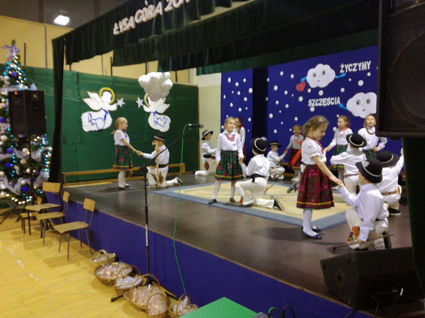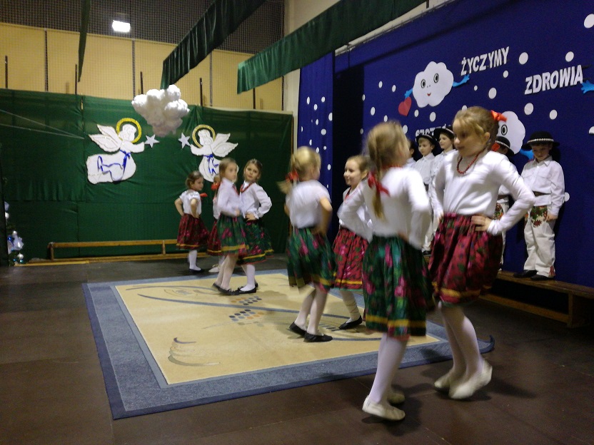 Największą chyba atrakcją dla wszystkich był występ przedszkolaków, dzieci z zerówki i młodszych klas, którzy zaprezentowali się w tańcach góralskich. Jak przystało na nasze dzieci – tańczyły z zapałem i z przytupem, za co zebrały zasłużone brawa. Z entuzjazmem i uśmiechem zostały przyjęte również góralskie przyśpiewki dostosowane do okoliczności. Na koniec wszyscy zostali obdarowani … prawdziwymi oscypkami.
