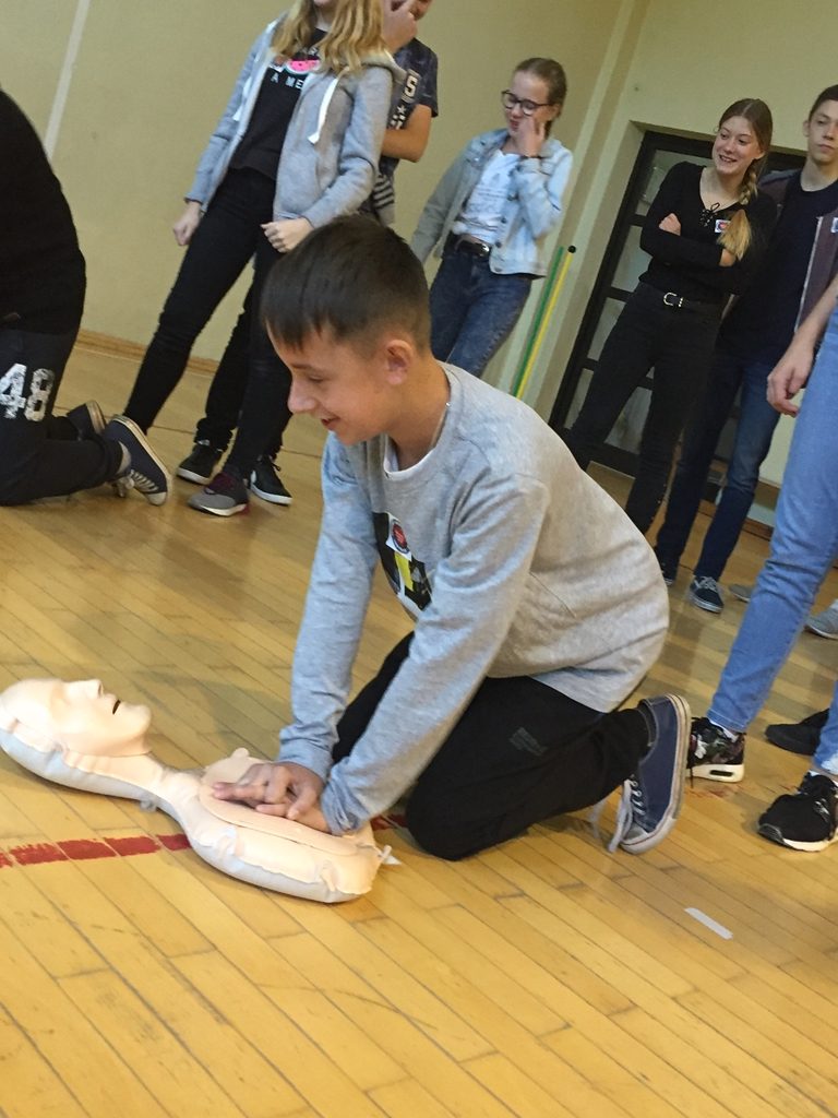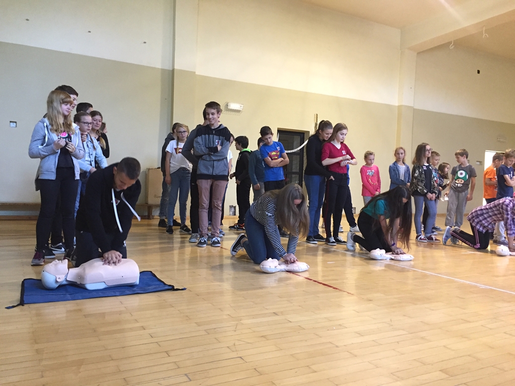 Tego dnia wszyscy chętni uczniowie po raz kolejny przystąpili do bicia rekordu w jednoczesnym prowadzeniu resuscytacji krążeniowo-oddechowej przez jak największą ilość osób z WOŚP.