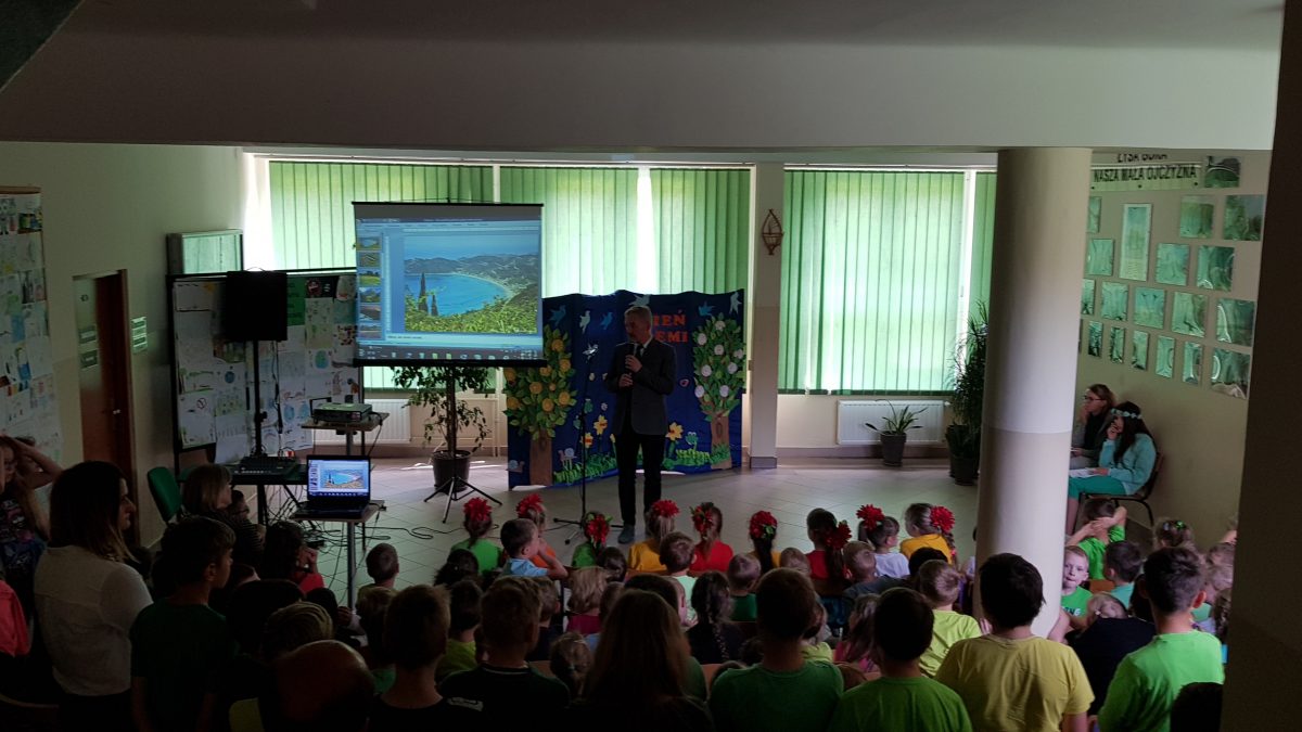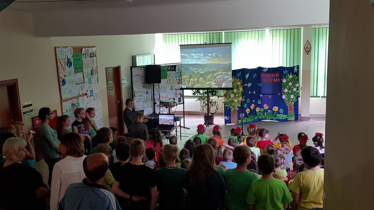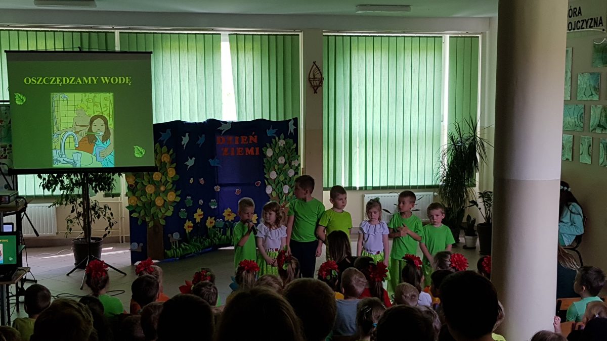 Na czwartej lekcji odbyła się uroczysta akademia. Brali w niej udział uczniowie klasy drugiej oraz przedszkolaki. (…) Dzieci mówiły wiersze i tańczyły. Podczas akademii nasza nauczycielka – pani Danusia włączyła prezentację, na której została ukazana przyroda (krajobrazy, rośliny, zwierzęta  – nasza planeta).