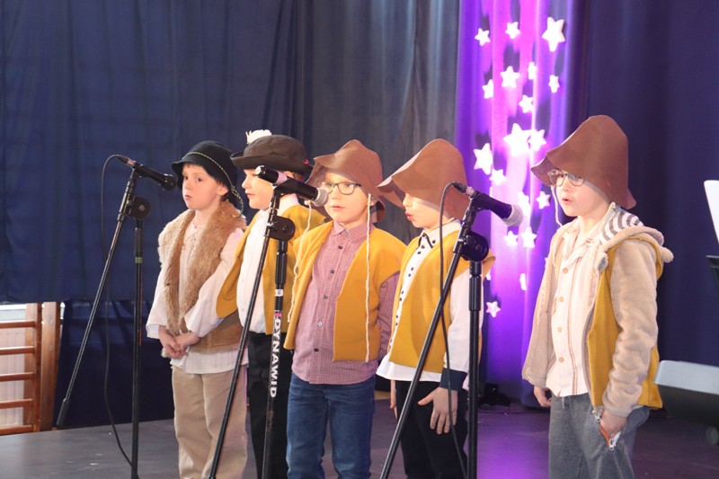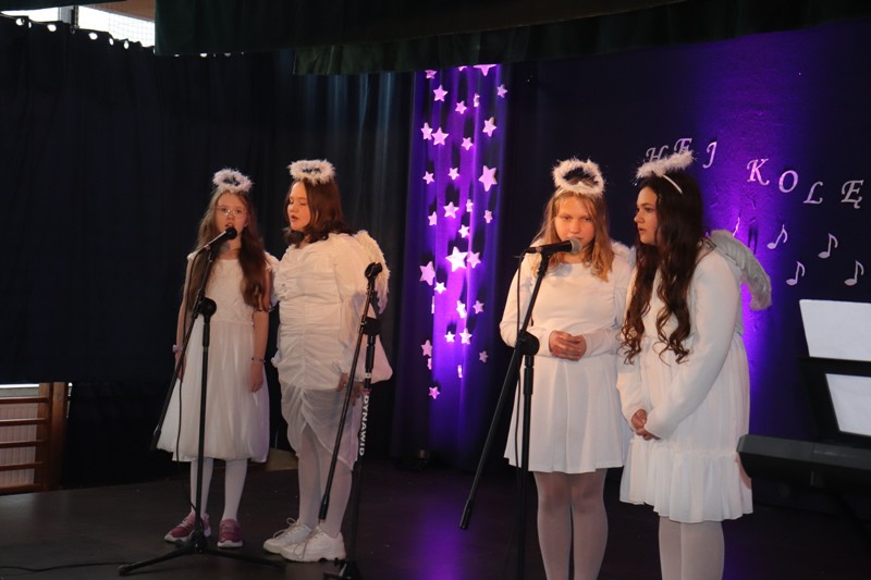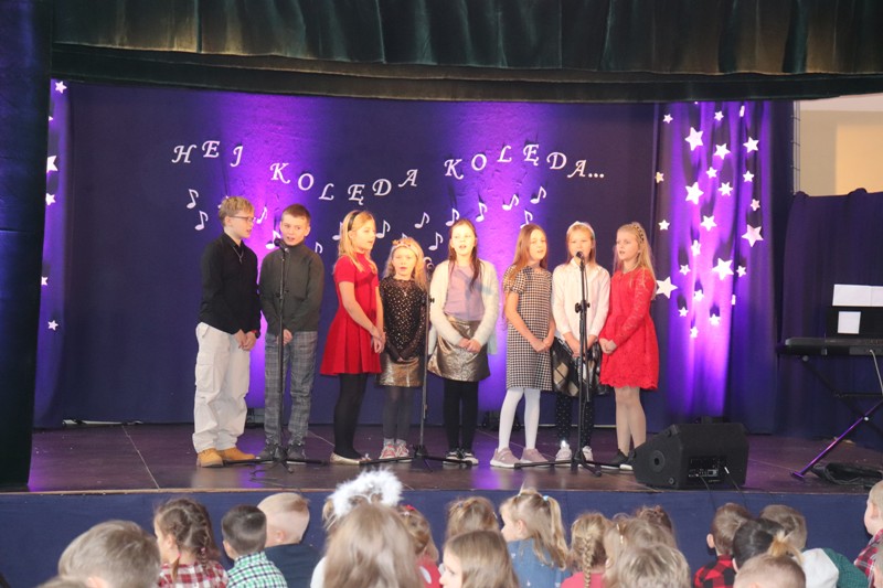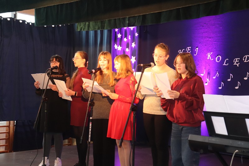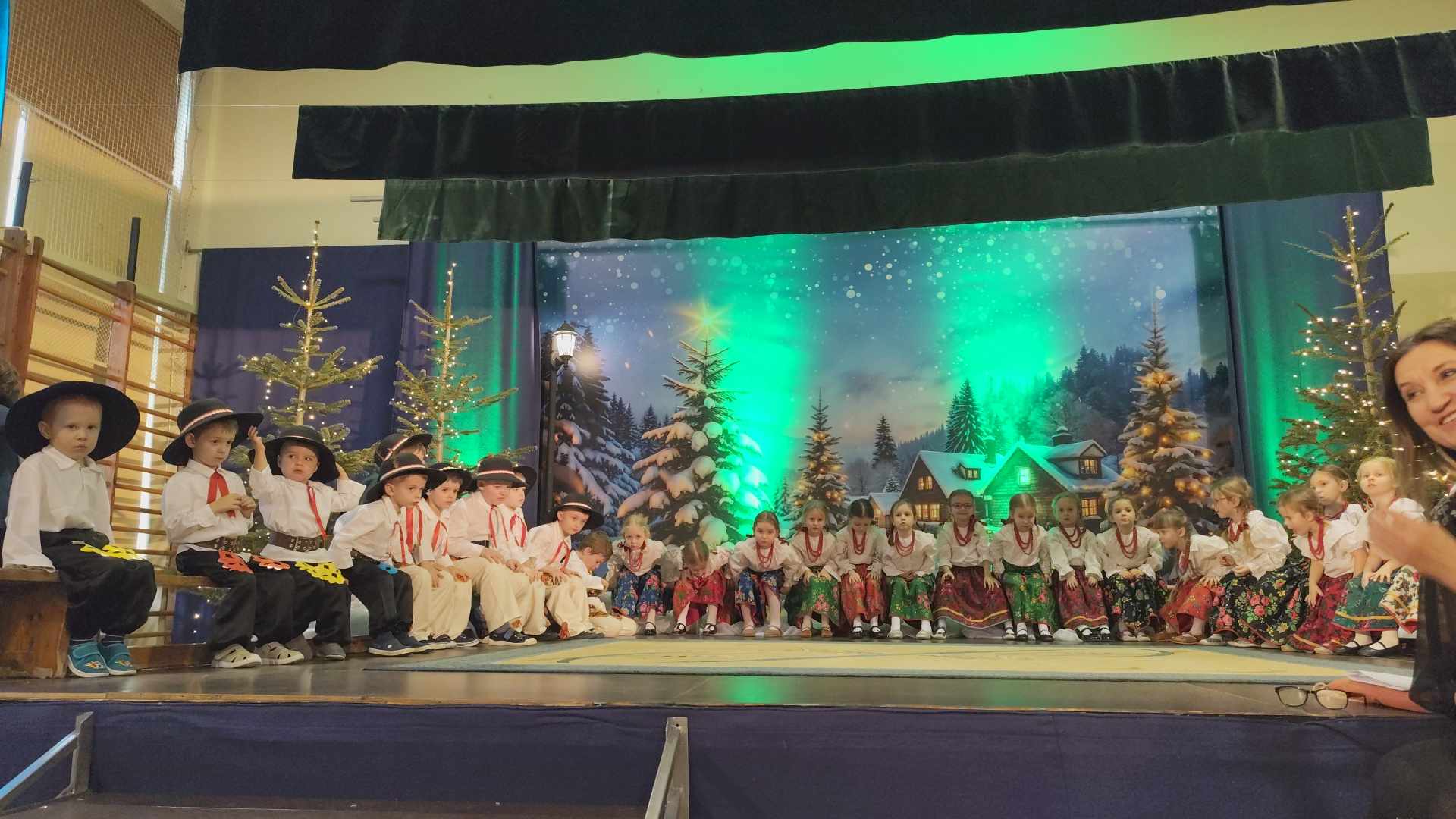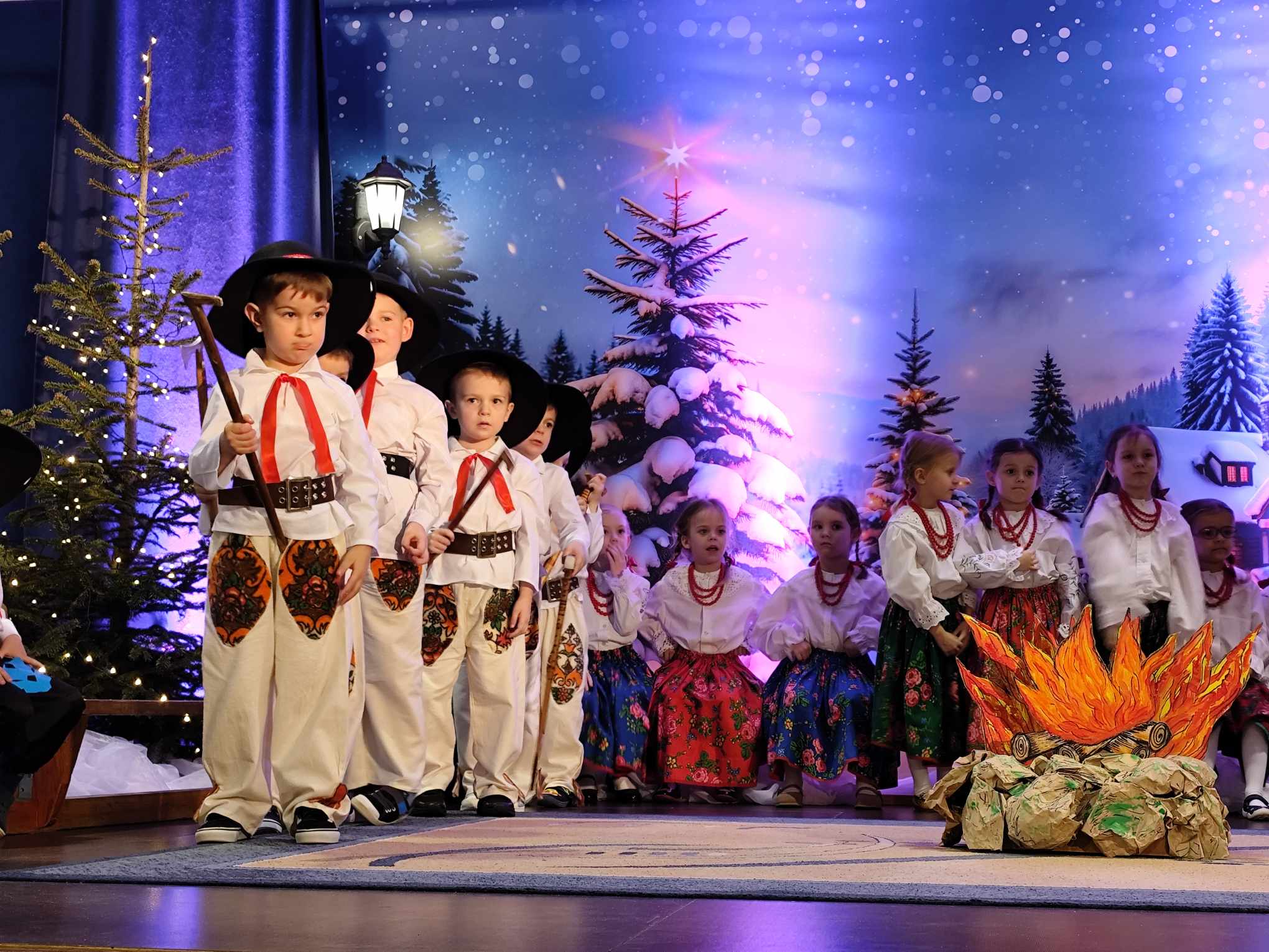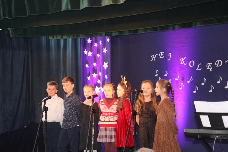 Tradycja Szkolnej Godziny Kolęd zaczęła się w naszej placówce ponad dwadzieścia lat temu. Jak co roku, w piątek 22 grudnia 2024 roku, w ostatnim dniu nauki, w sali gimnastycznej spotkali się uczniowie i nauczyciele naszego Zespołu Szkolno-Przedszkolnego. Na scenie pojawili się przedstawiciele wszystkich grup. Kolędowanie rozpoczęli najmłodsi – przedszkolaki. Choć nie był to konkurs, to wszyscy występujący z wielkim zaangażowaniem prezentowali tradycyjne kolędy i piękne pastorałki.