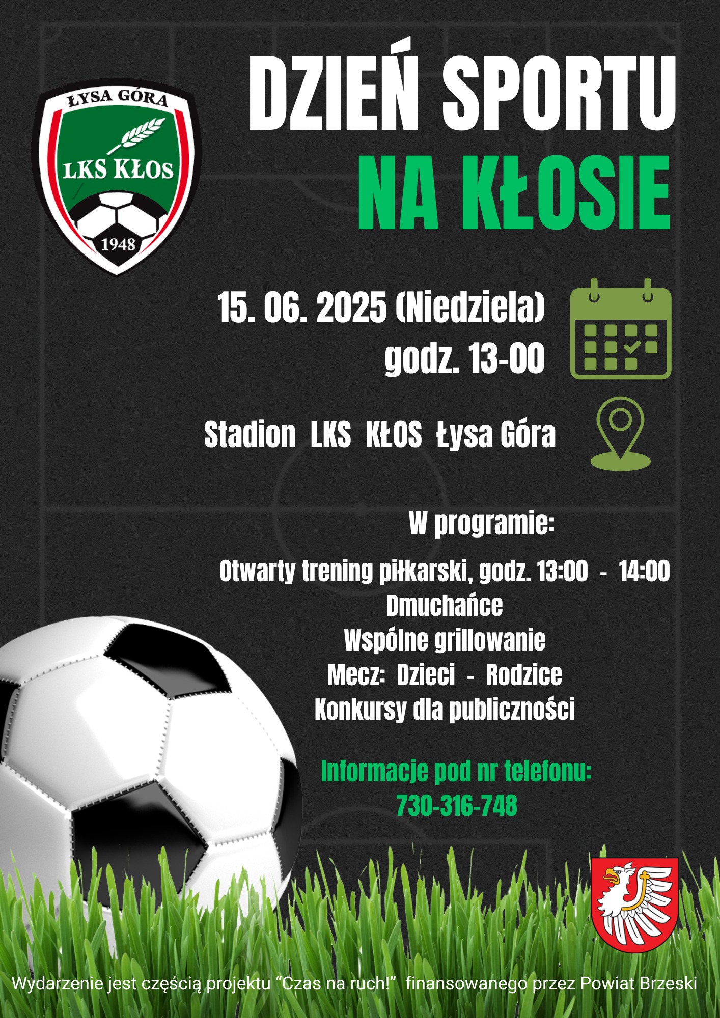 Serdecznie zapraszamy na “Dzień Sportu na Kłosie” wydarzenie, które jest częścią projektu “Czas na ruch!” finansowane przez Powiat Brzeski.