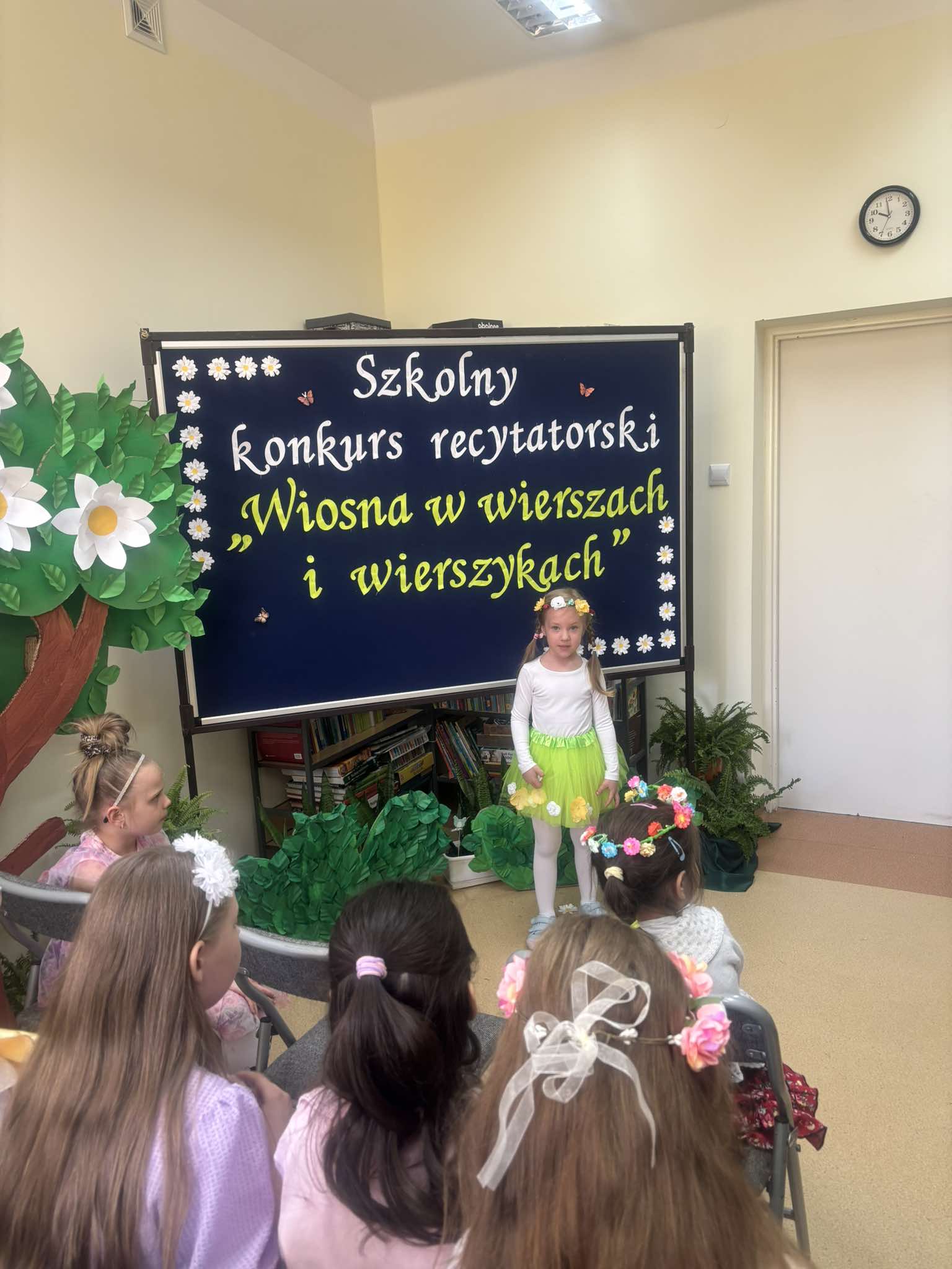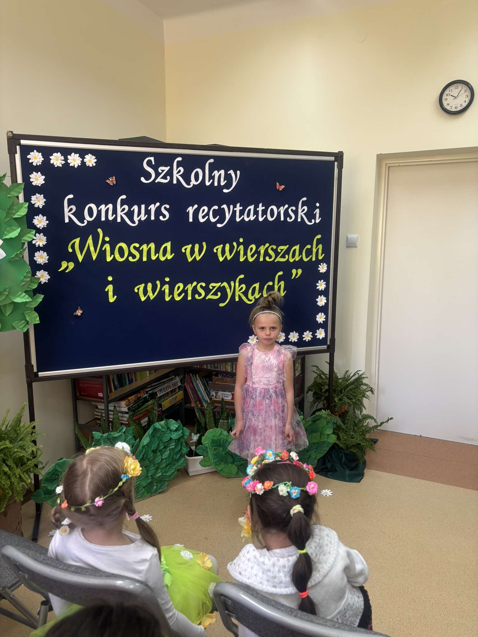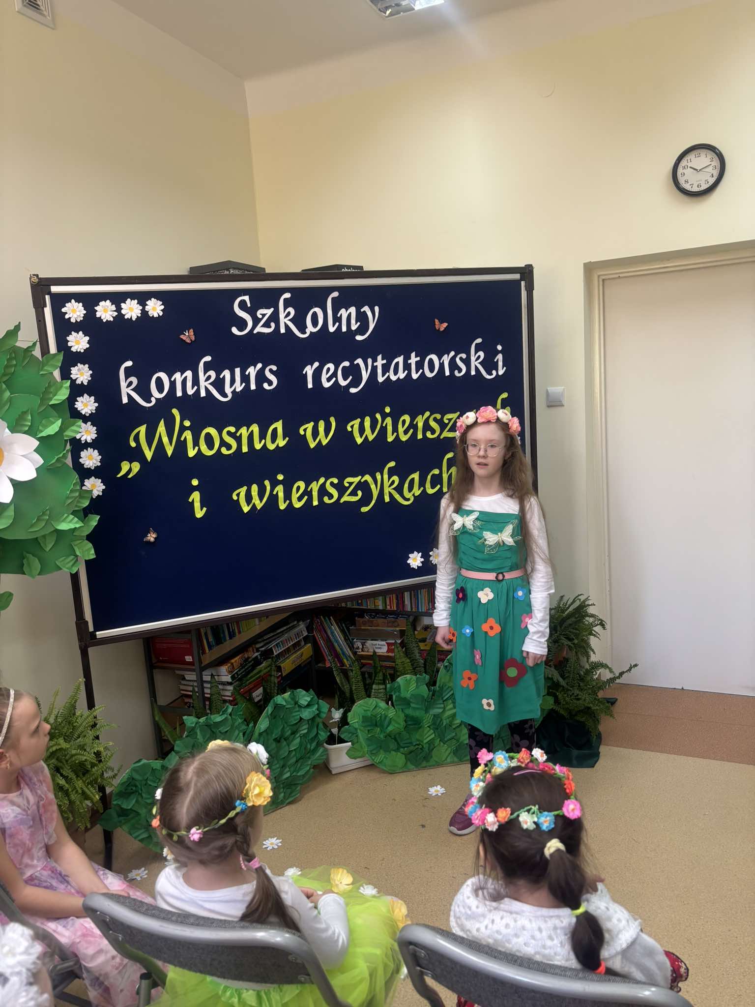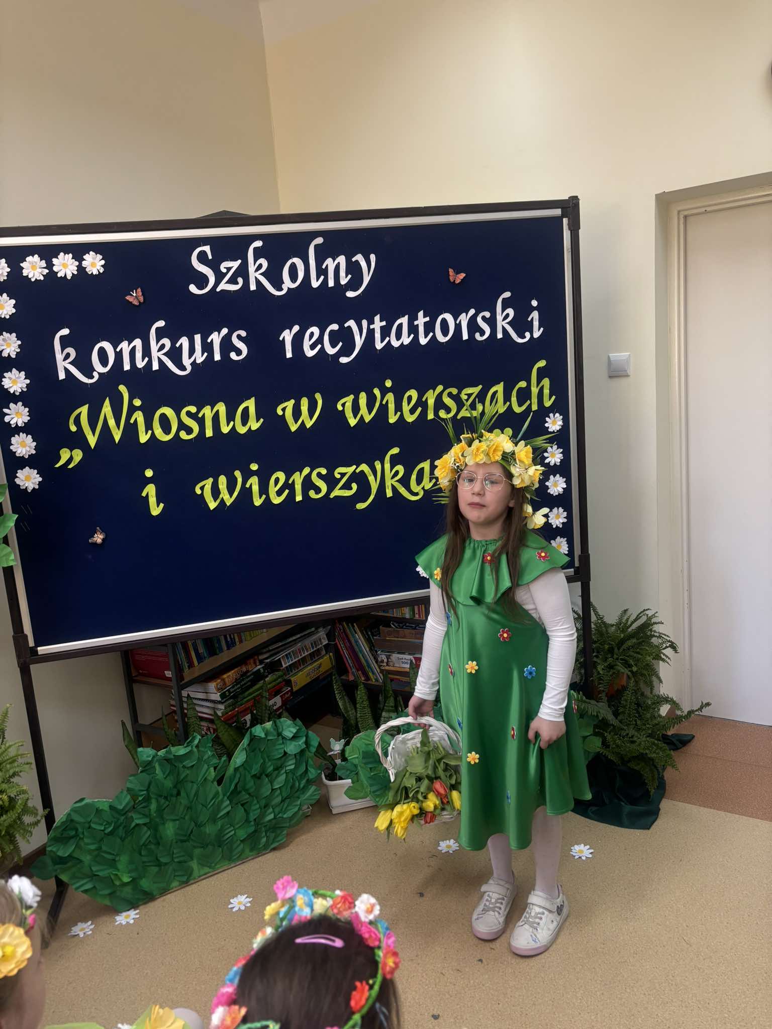 W tegorocznej edycji szkolnego konkursu recytatorskiego pod hasłem: „Wiosna w wierszach i wierszykach” wzięło udział 15 uczestników z klas młodszych i starszych. Pięknych wierszy o tematyce wiosennej wysłuchała komisja w składzie: przewodnicząca – p. Dorota Prokop, nauczyciel polonista –Mirosława Sacha oraz organizator konkursu – bibliotekarz szkolny Sabina Pantera- Migda. W repertuarze pojawili się popularni twórcy poezji dziecięcej, jak: Maria Konopnicka, Dorota Gellener, Julian Tuwim, Maria Terlikowska i inni. Ogólny wyraz artystyczny wzbogaciły wiosenne przebrania i kwiatowe dodatki niektórych uczestników. Po wyrecytowaniu przygotowanych wierszy przez wszystkich uczestników komisja zdecydowała o przyznaniu miejsc i wyróżnień.