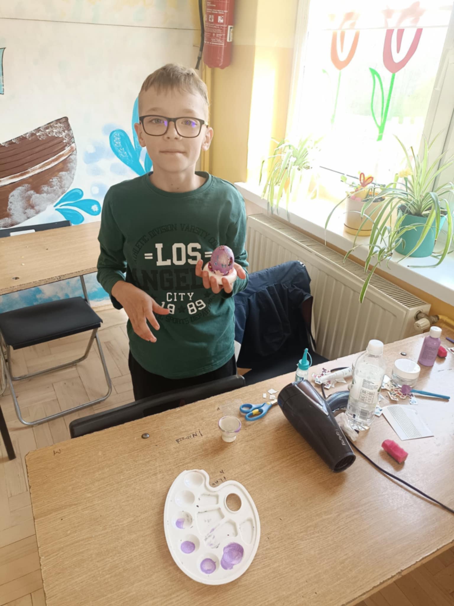 Miło nam poinformować, że w najmłodszej kategorii wiekowej, tworząc pisankę w stylu nowoczesnym, III miejsce zajął uczeń klasy 2- Szymon Matura.