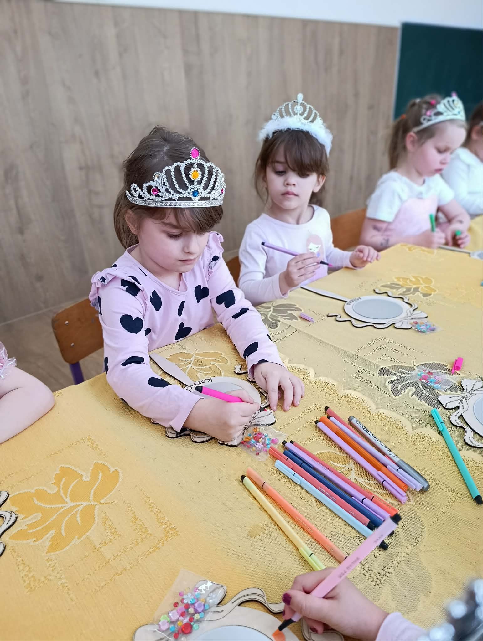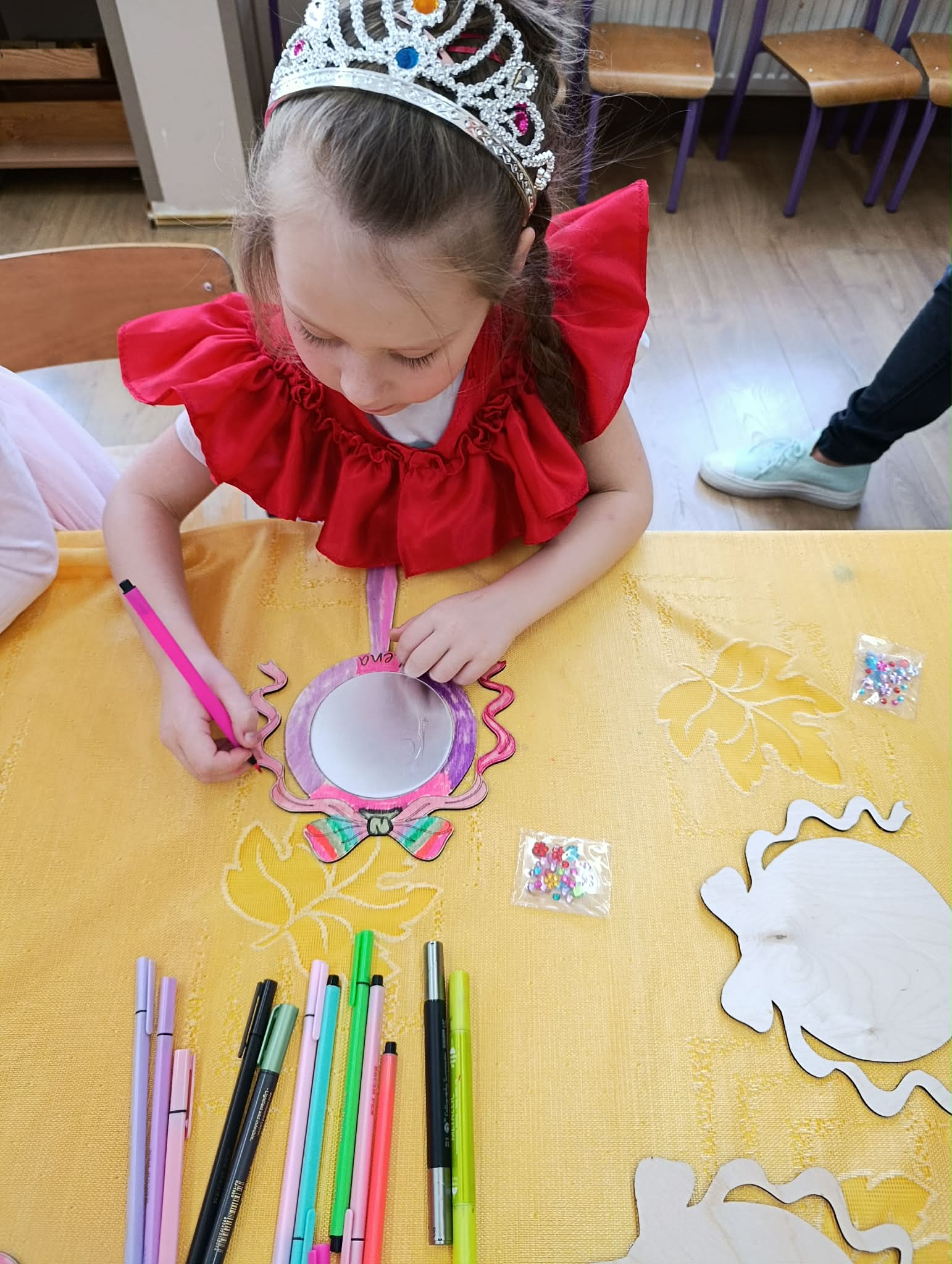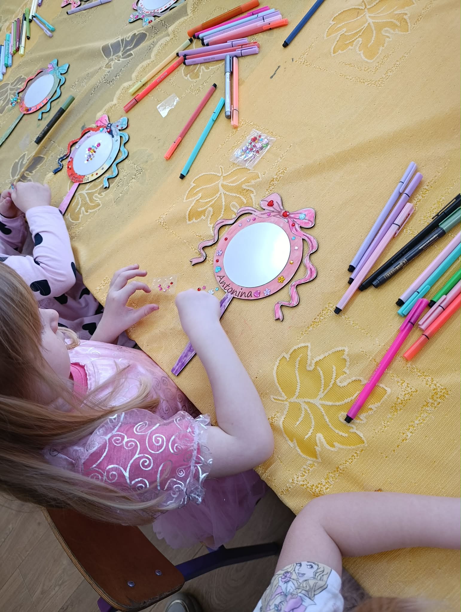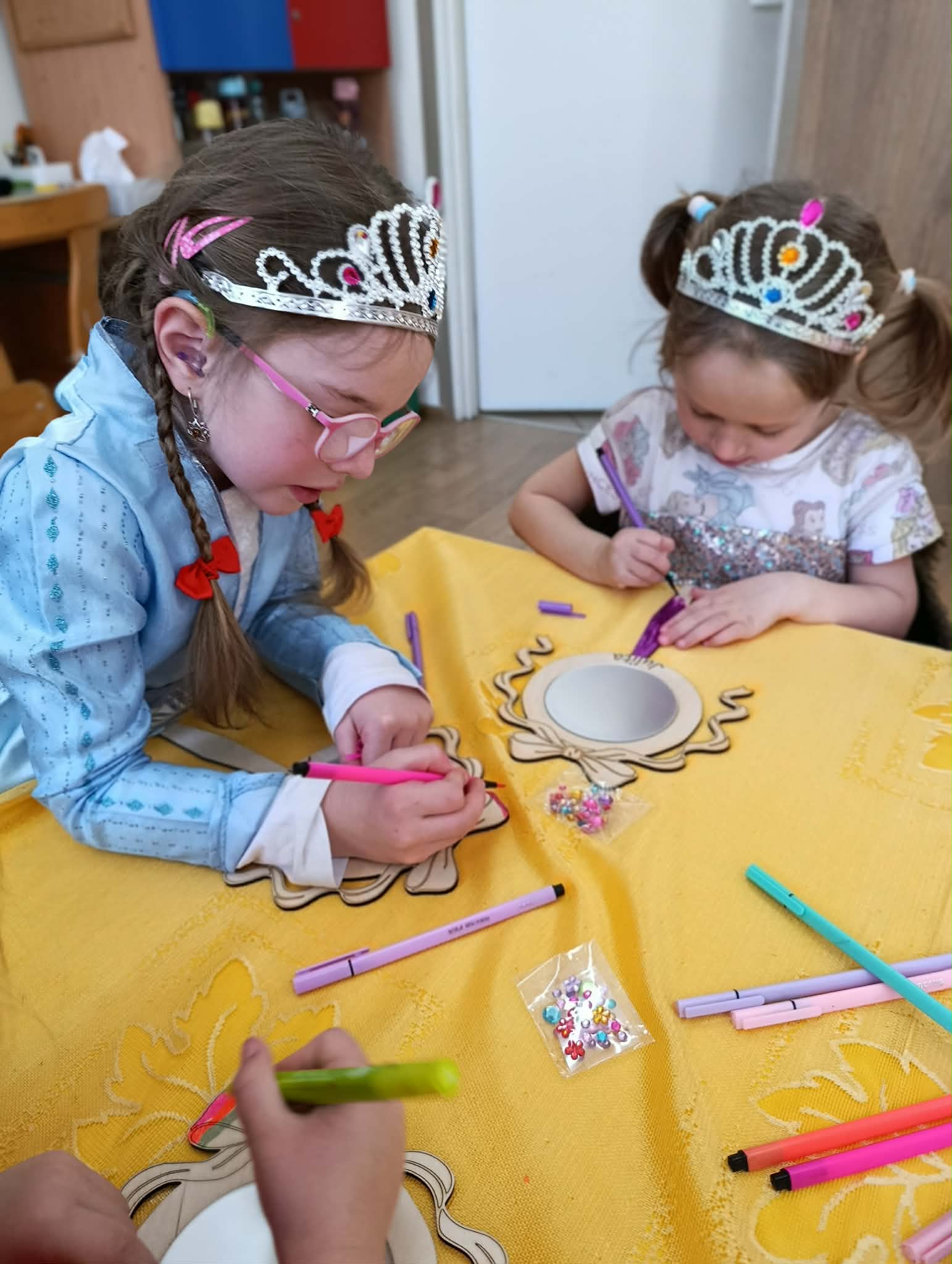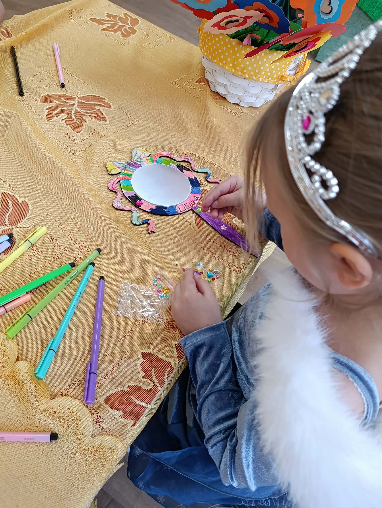 Dziś nasze dziewczynki z okazji Dnia Kobiet brały udział w “księżniczkowych warsztatach”, które poprowadziła mama Huberta- Pani Katarzyna Gacek. Księżniczki przygotowywały dla siebie lusterka, które malowały i ozdabiały, jak to przystało na księżniczki – diamentami. Wykonane lusterka będą im służyły w czasie zabaw tematycznych. Pani Kasi bardzo dziękujemy za przygotowanie i przeprowadzenie warsztatów, a Radzie Rodziców za ufundowanie lusterek i akcesoriów do ich udekorowania. Wszystkim Naszym małym kobietkom życzymy wszystkiego najlepszego z okazji ich święta.