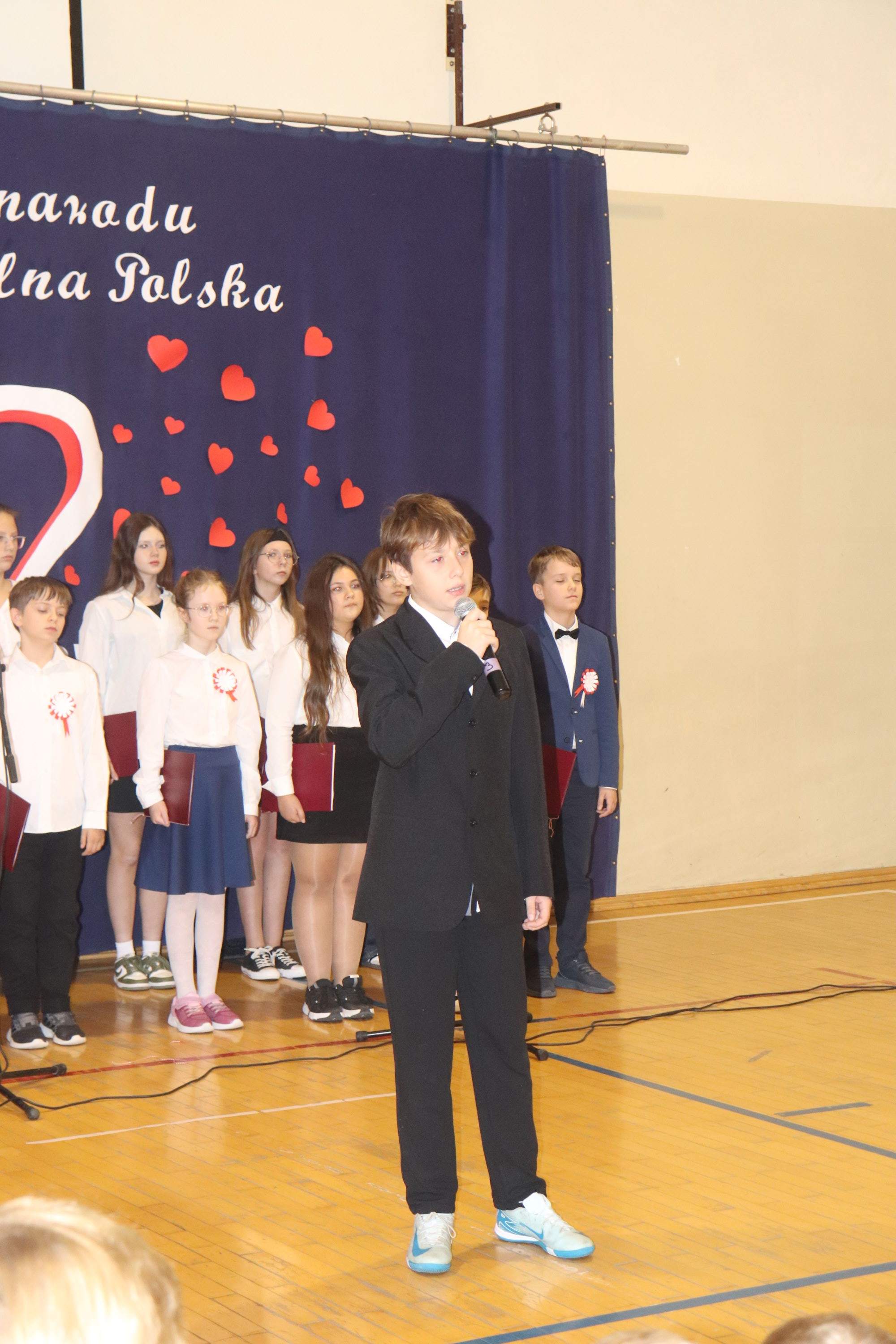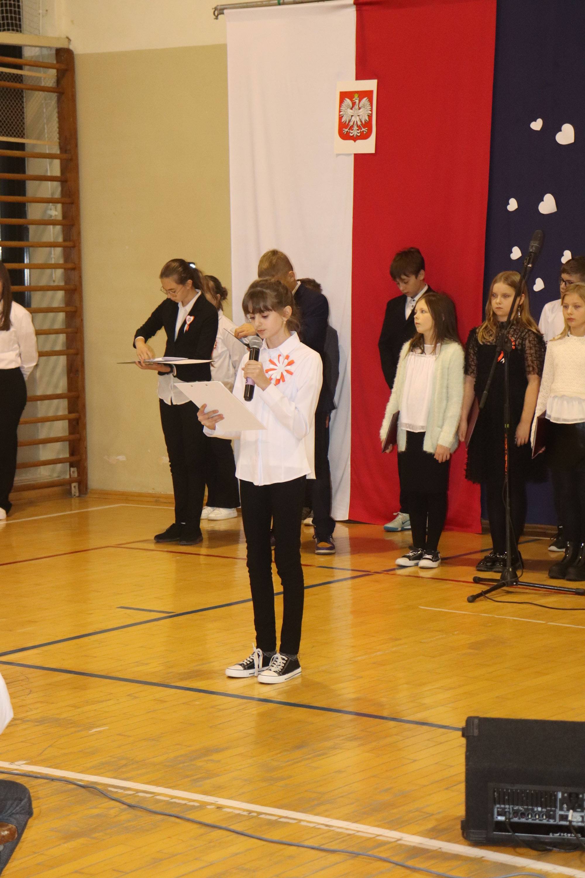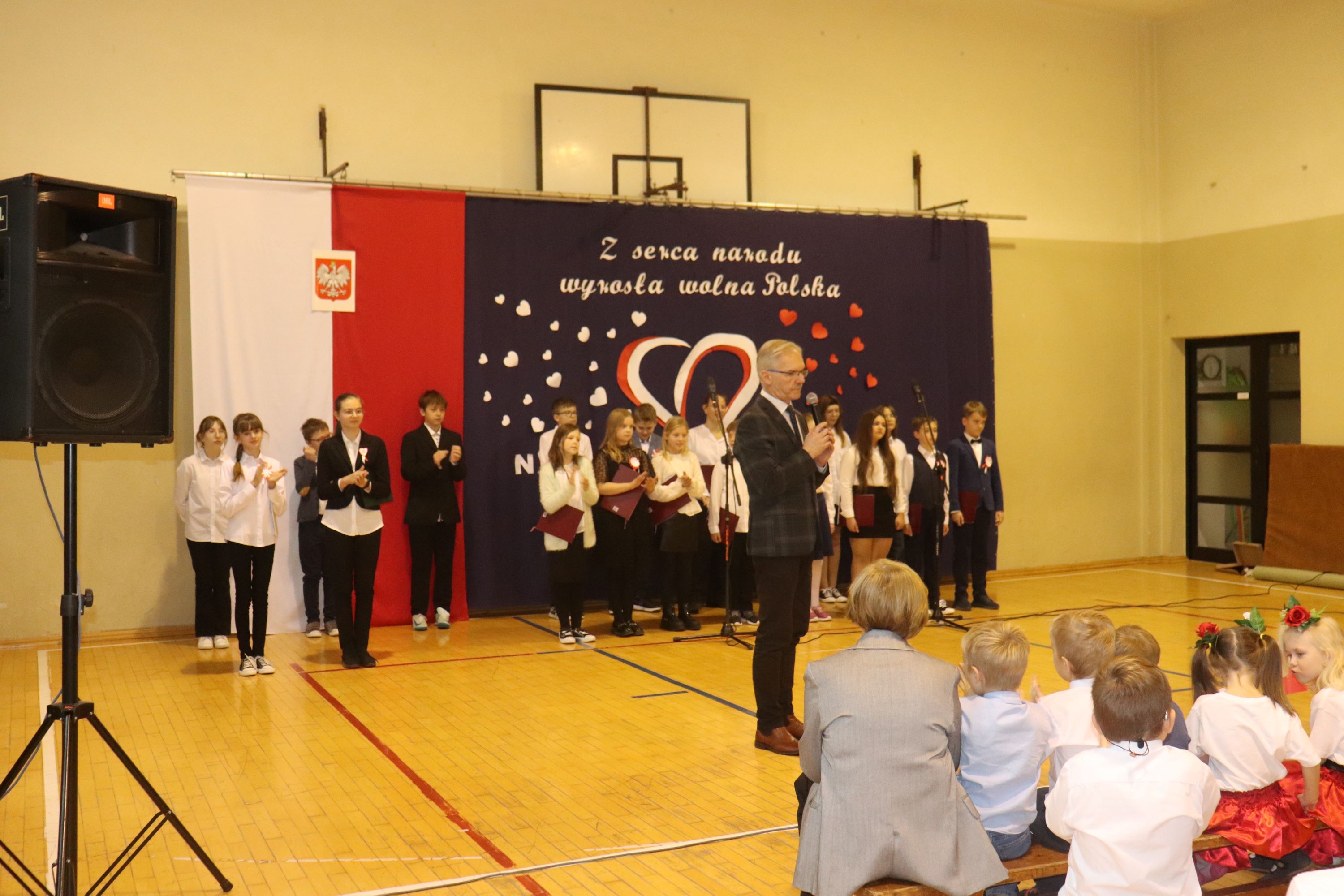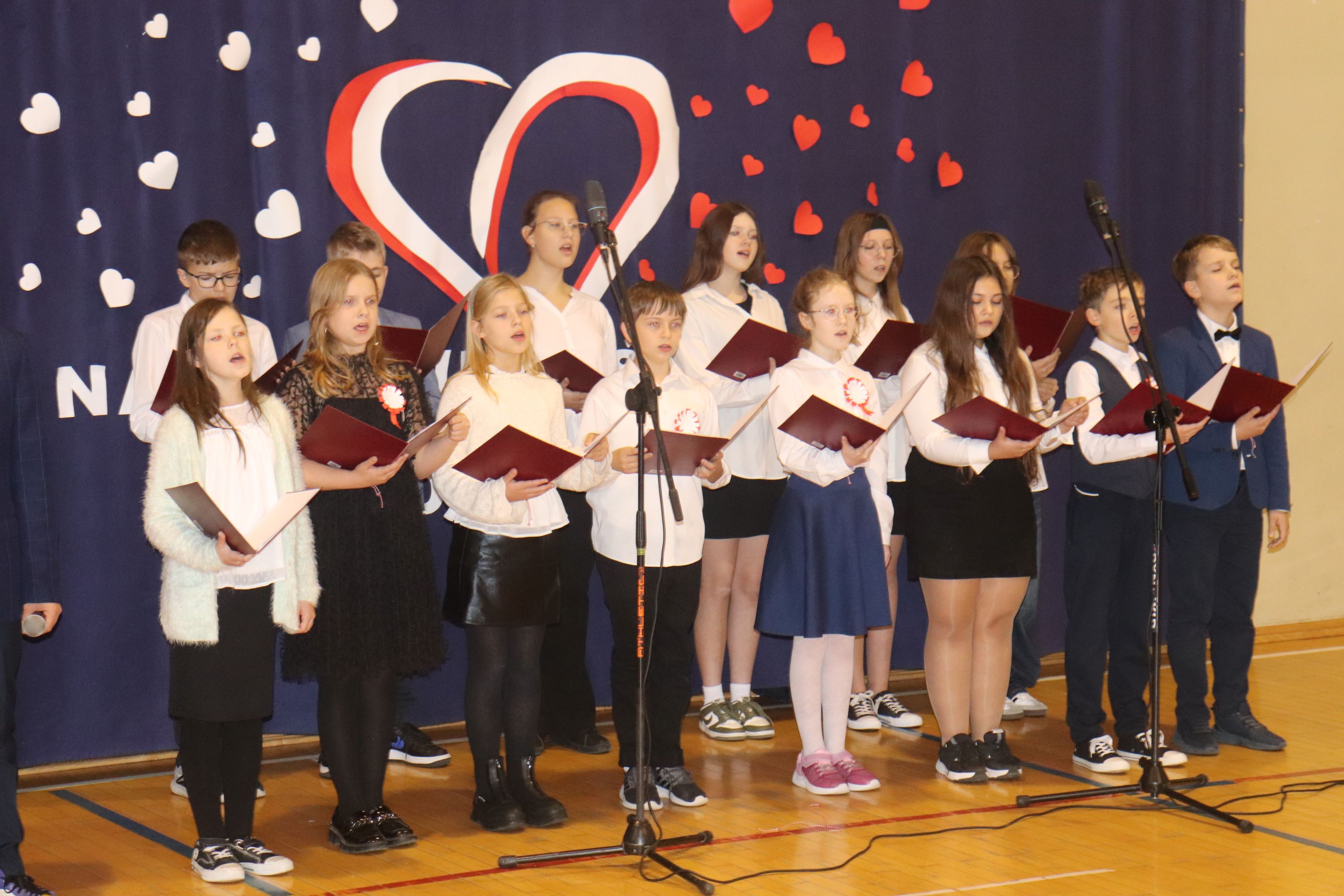 W tym roku wyjątkowo uroczyście obchodziliśmy Święto Niepodległości.. Uczciliśmy ten dzień głęboką refleksją nad Ojczyzną, przeszłością i patriotyzmem. Uczniowie naszego Zespołu Szkolno-Przedszkolnego przygotowali montaż słowno- muzyczny. Uroczystość, wzruszającym tańcem, rozpoczęły dziewczynki z zerówki. Następnie zaprezentowali się starsi uczniowie: recytatorzy i chór szkolny pod kierunkiem pana Dyrektora . Na koniec wspólnie zaśpiewaliśmy hymn, włączając się do ogólnopolskiej akcji: SZKOŁA DO HYMNU.