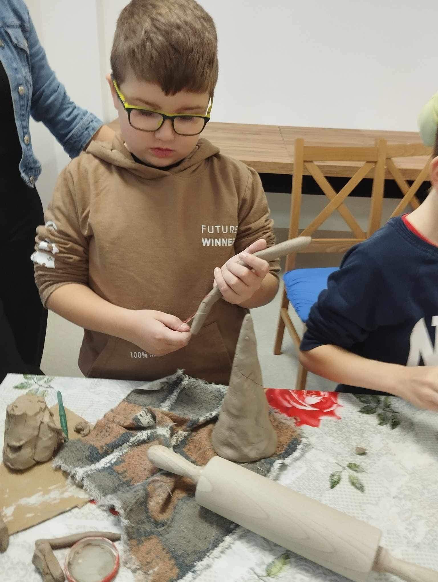 Kolejny już raz uczniowie naszej szkoły z klasy 2 i 3 mieli możliwość wzięcia udziału w niecodziennej lekcji plastyki w postaci warsztatów artystycznych. Warsztaty te odbyły się w ramach projektu: „Siła tradycji” realizowanego przez OSP przy finansowym wsparciu Powiatu Brzeskiego. Dzięki współpracy pani bibliotekarki szkolnej z koordynatorem projektu – Panem Piotrem Maturą uczniowie mieli okazję wykonać ozdoby świąteczne z gliny pod kierunkiem Pani Anny Wróbel i podopiecznych Powiatowego Zakładu Aktywności Zawodowej w Łysej Górze. Uczniowie wykonali piękne choinki, które po wypaleniu i szkliwieniu będą wspaniałą, własnoręcznie wykonaną ozdobą dekorującą świąteczne stoły.