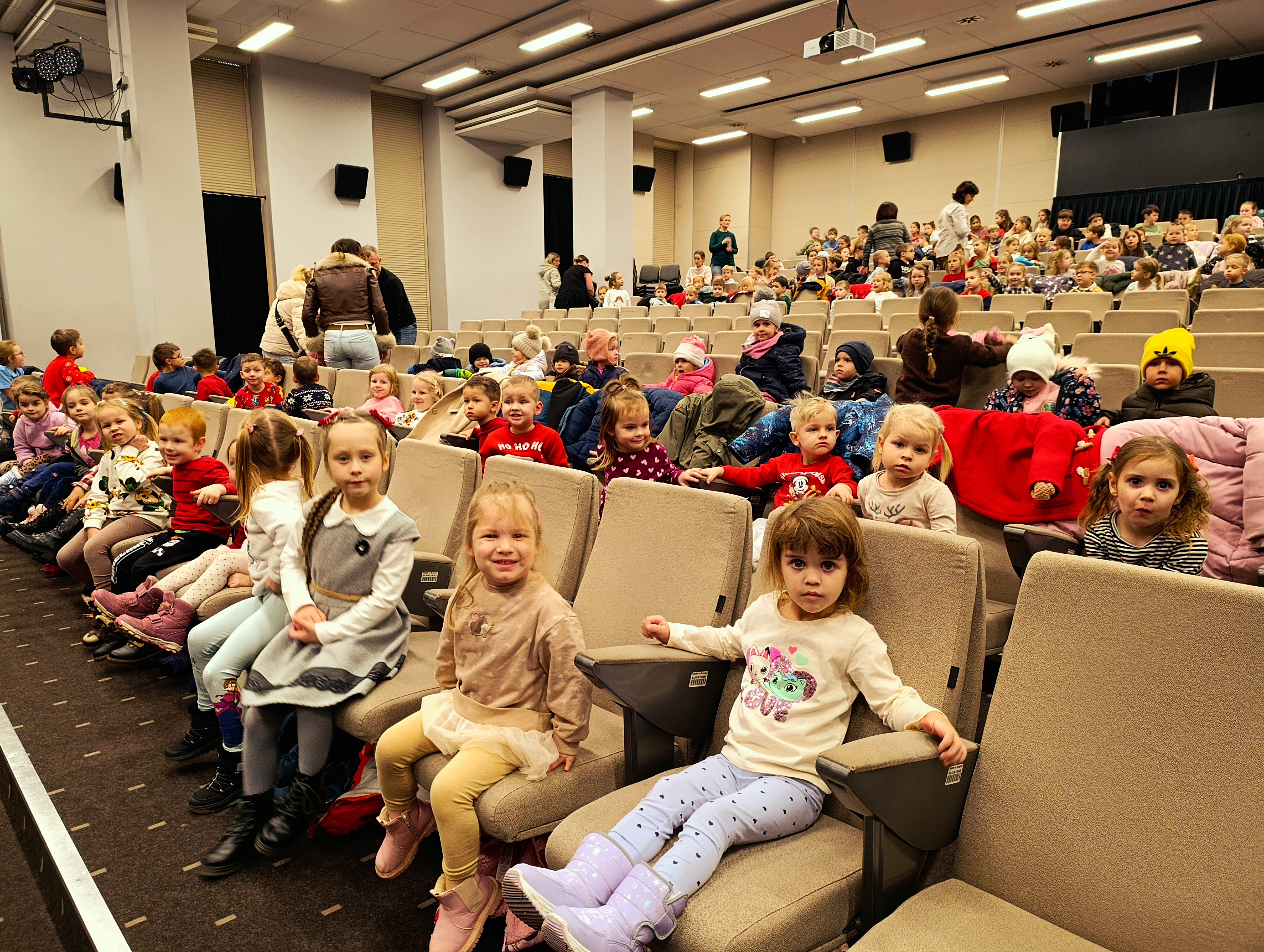 3 grudnia nasze przedszkolaki wybrały się na ciekawy spektakl cyrkowy pt. „Magic”. Podczas spektaklu zaprezentowano nam pokaz magii, żonglerki oraz zabawny występ klauna, który rozbawiał całą widownię. Oglądający brali także aktywny udział w poszukiwaniach zaginionego nosa klauna, co dostarczyło wszystkim dzieciom mnóstwo radości. Ogromne wrażenie zrobił na dzieciach spektakularny pokaz laserowy, który przedszkolaki oglądały z wypiekami na twarzy. W teatrze spotkaliśmy także Św. Mikołaja, który poczęstował wszystkie dzieci cukierkami i oznajmił, że w przedszkolu zostawił dla nich worek z prezentami. Dzieci pełne wrażeń wróciły do przedszkola, dzieląc się swoimi przeżyciami.