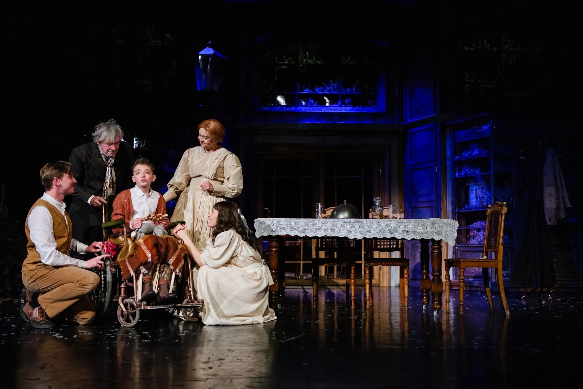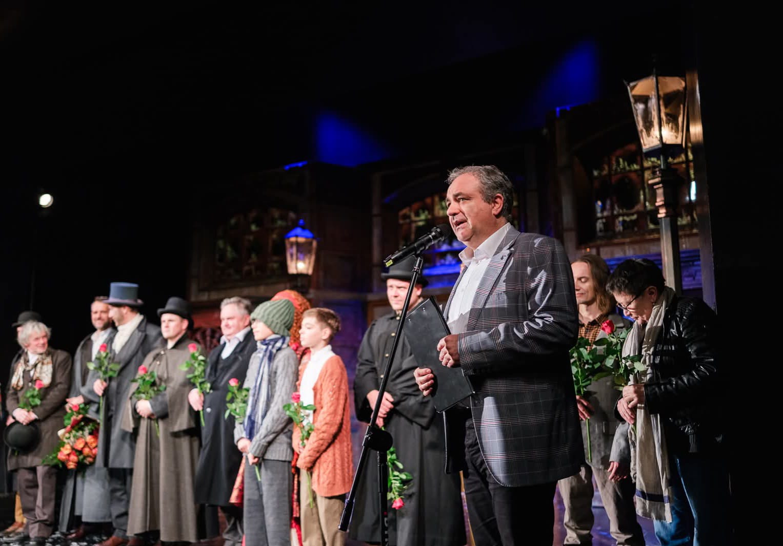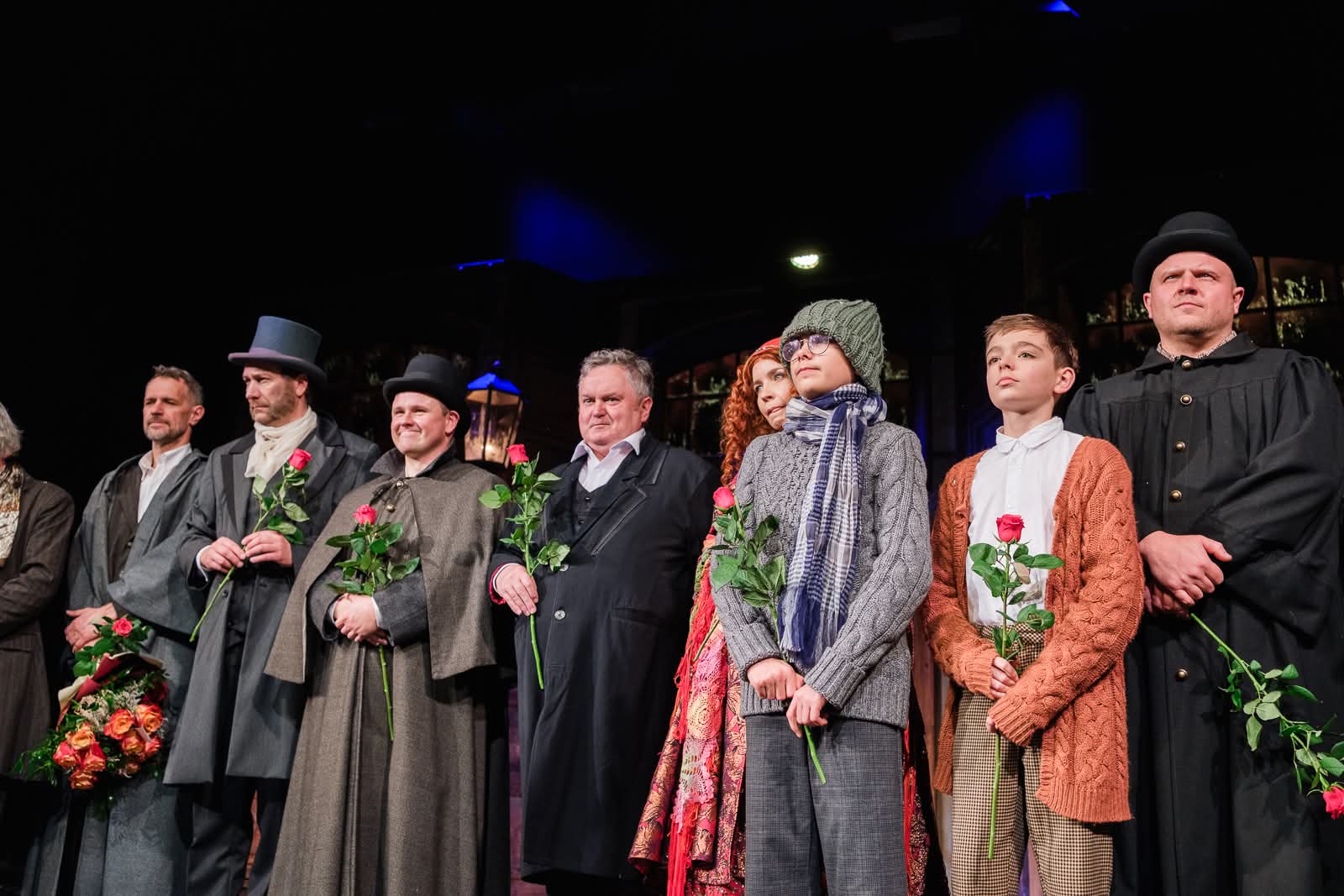 W minioną niedzielę, 30 listopada 2025 r., na deskach tarnowskiego teatru im. L. Solskiego w Tarnowie odbył się premierowy pokaz spektaklu „Opowieść wigilijna” w reż. Czesława Sieńki. Uniwersalna historia autorstwa Charlesa Dickensa poruszyła widzów zarówno swym moralizatorskim przesłaniem, kunsztem aktorów, jak i niezwykłym rozmachem inscenizacyjnym. Przygotowane z największą pieczołowitością kostiumy, dekoracje, tańce i śpiew, składają się na całość, która z niezwykłą siłą przykuwa uwagę widza. Pośród znanych zarówno z tarnowskiej, jak i krajowej sceny teatralnej aktorów, wystąpił uczeń naszej szkoły Karol Matura, który wcielił się w rolę Tima Crachtita. Droga do udziału w tej niezwykłej premierze wiodła poprzez casting zorganizowany przez teatr w październiku br. Przygoda Karola z teatralną sceną będzie trwała nadal, gdyż przed nim jeszcze seria pokazów dla szkól oraz dla ogółu publiczności w grudniu oraz styczniu i lutym 2026 r.