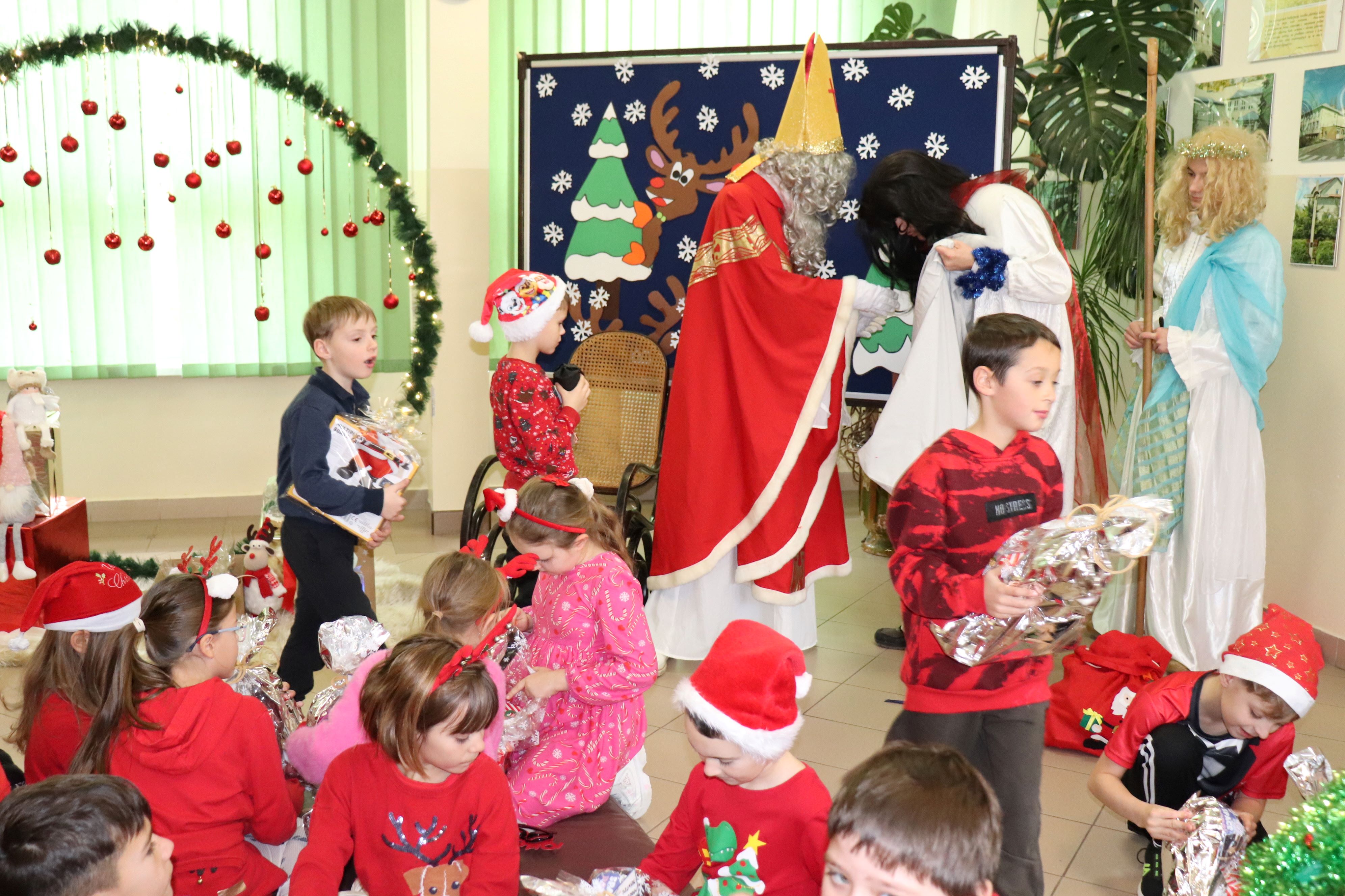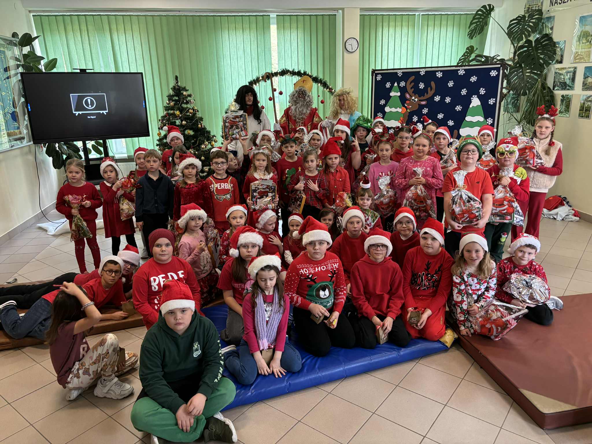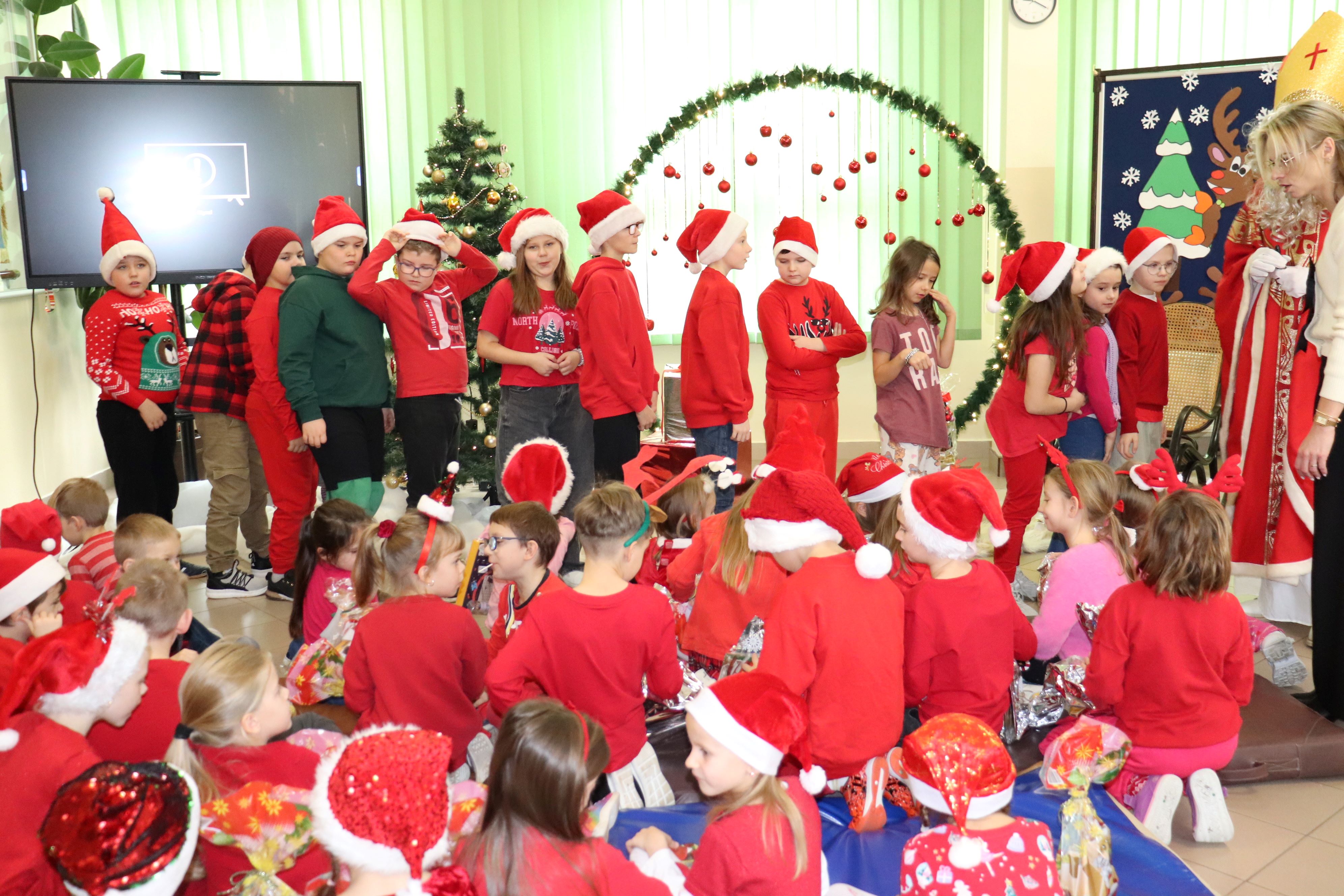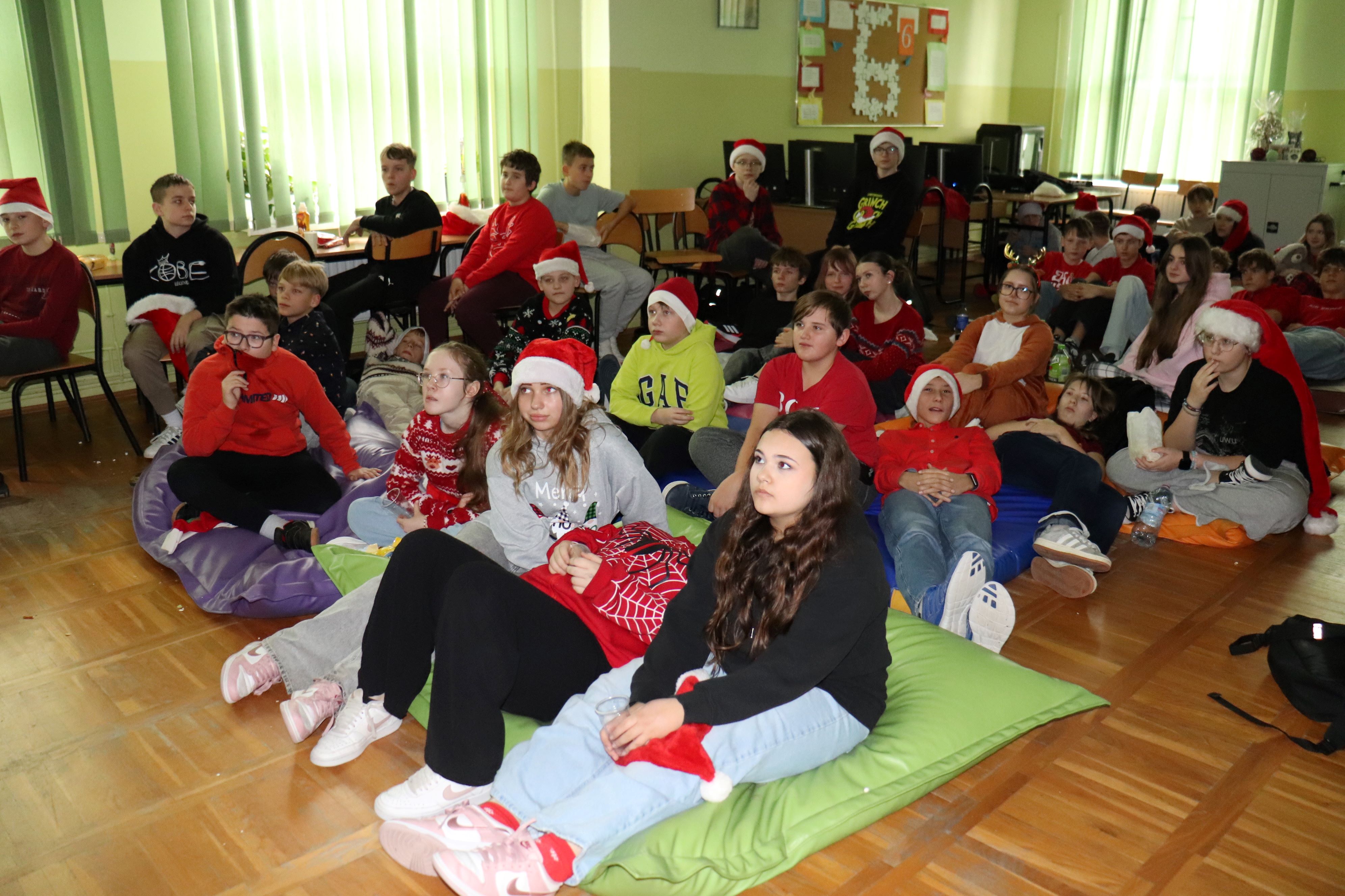 W piątek, 5 grudnia, z okazji mikołajek w naszej szkole panowała radosna, świąteczna atmosfera. Najpierw młodszych uczniów odwiedził Święty Mikołaj, a starszym pozostawił upominki. Następnie uczniowie klas 1–5 oraz 6–8 obejrzeli wspólnie film Grinch – świąt nie będzie, który wprowadził wszystkich w magiczny klimat nadchodzących Świąt Bożego Narodzenia. Dzięki temu mogli poczuć wyjątkowy nastrój tego dnia. Rada Rodziców przygotowała dla wszystkich miłą niespodziankę, fundując popcorn, który umilił seans i wywołał wiele uśmiechów. Był to dzień pełen świątecznej radości, integracji i wspólnego spędzania czasu. Serdecznie dziękujemy Radzie Rodziców za wsparcie oraz wszystkim osobom zaangażowanym w organizację wydarzenia.