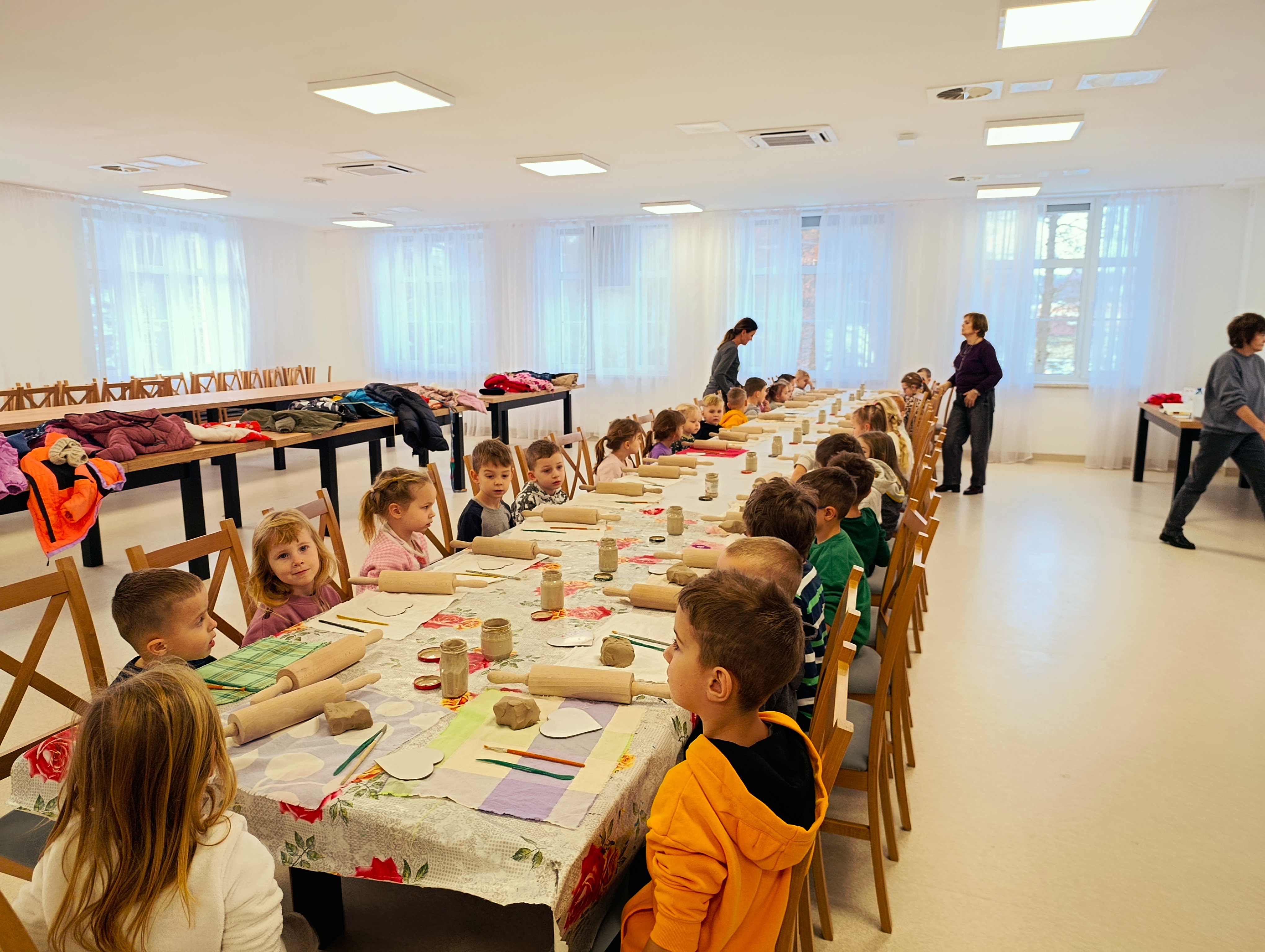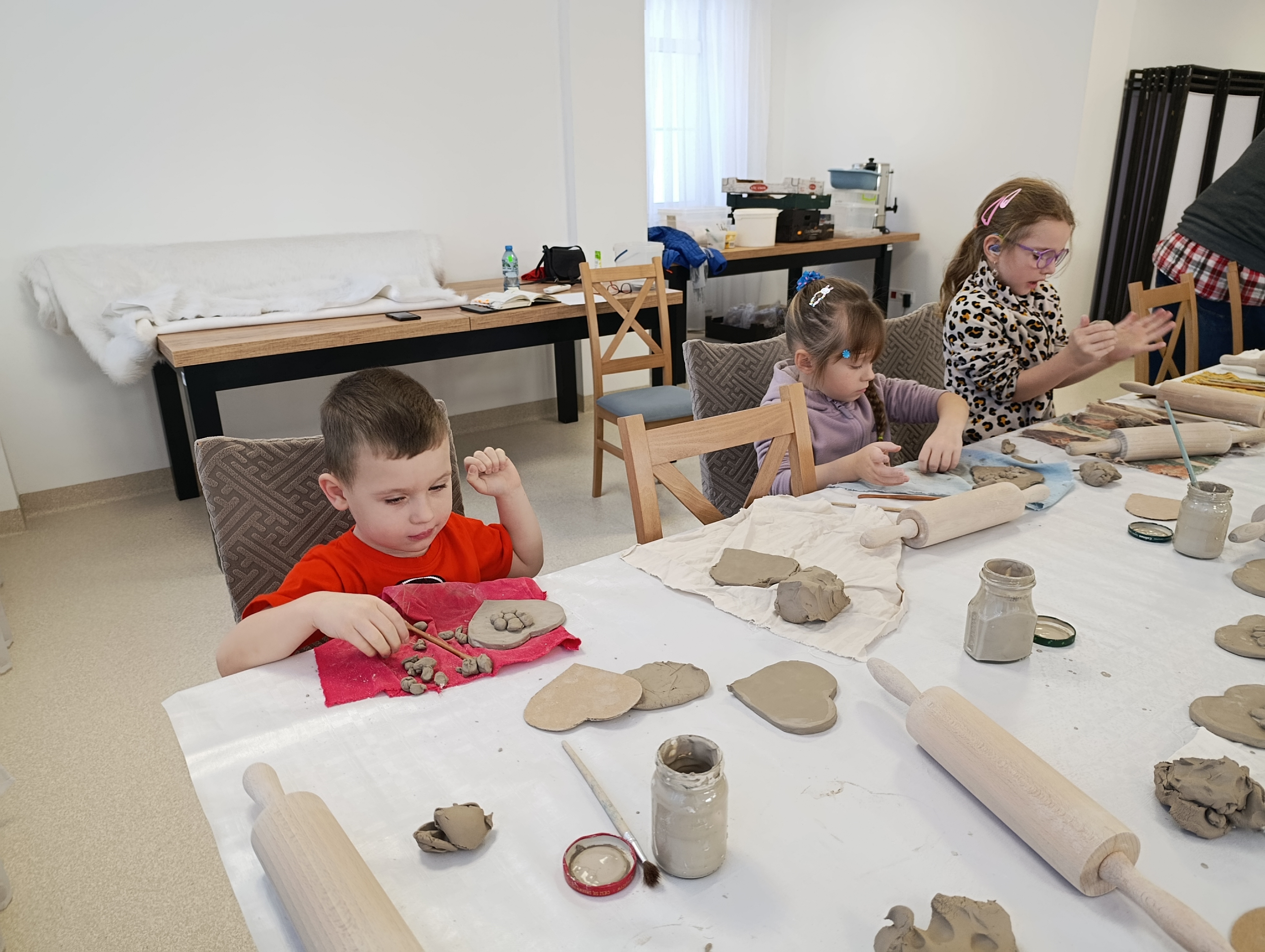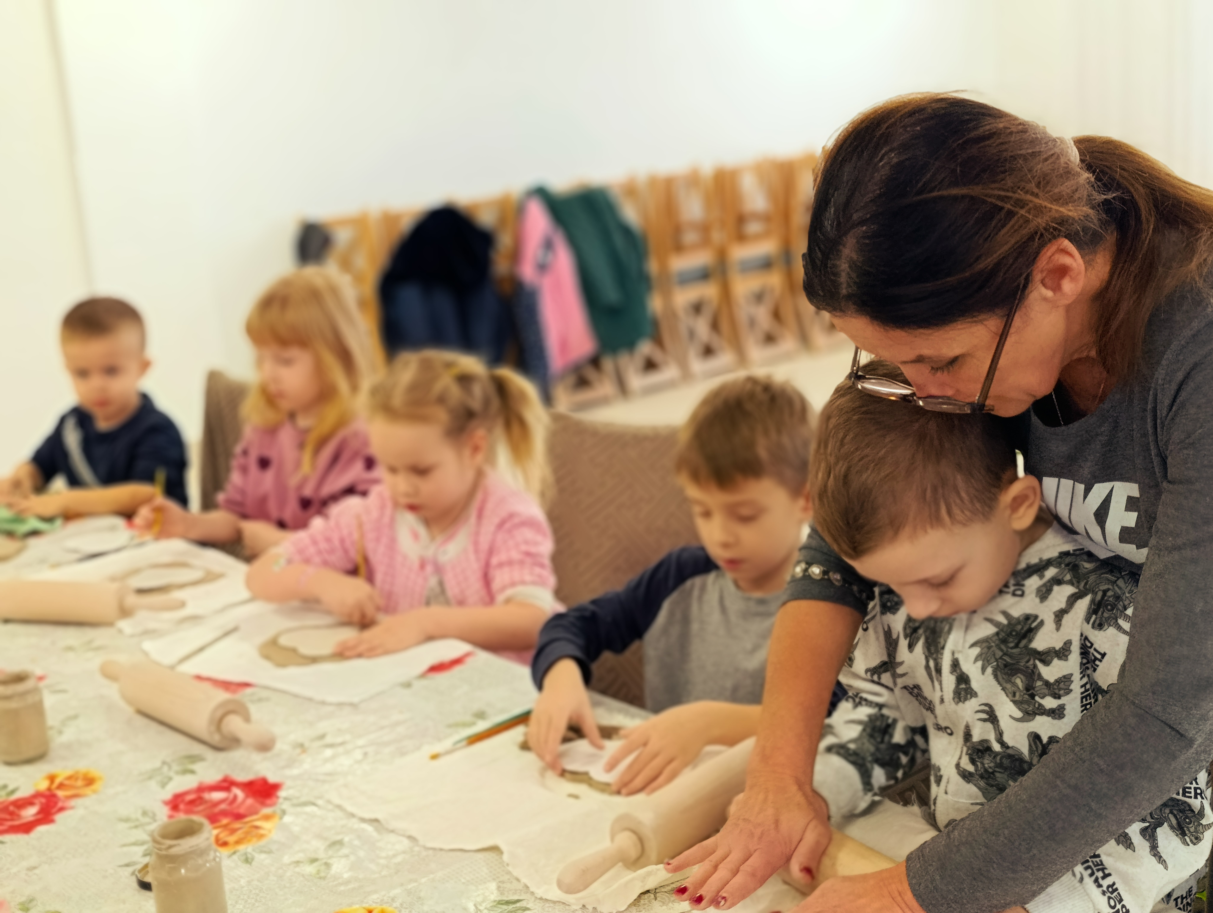 1 grudnia 2025 r. dzieci z naszego przedszkola uczestniczyły w kreatywnych warsztatach ceramicznych w Powiatowym Zakładzie Aktywizacji Zawodowej. Przedszkolaki tworzyły piękne, gliniane serca. Pod czujnym okiem instruktorów dzieci ugniatały, formowały i ozdabiały swoje prace, rozwijając przy tym wyobraźnię, sprawność manualną oraz poczucie sprawczości. Wszystkie dzieci z dużym zaangażowaniem i skupieniem pracowały nad swoimi pracami, które po wypaleniu staną się wyjątkową pamiątką z tego twórczego dnia. Bardzo dziękujemy instruktorom i pracownikom Powiatowego Zakładu Aktywności Zawodowej za przygotowanie i przeprowadzenie warsztatów.
