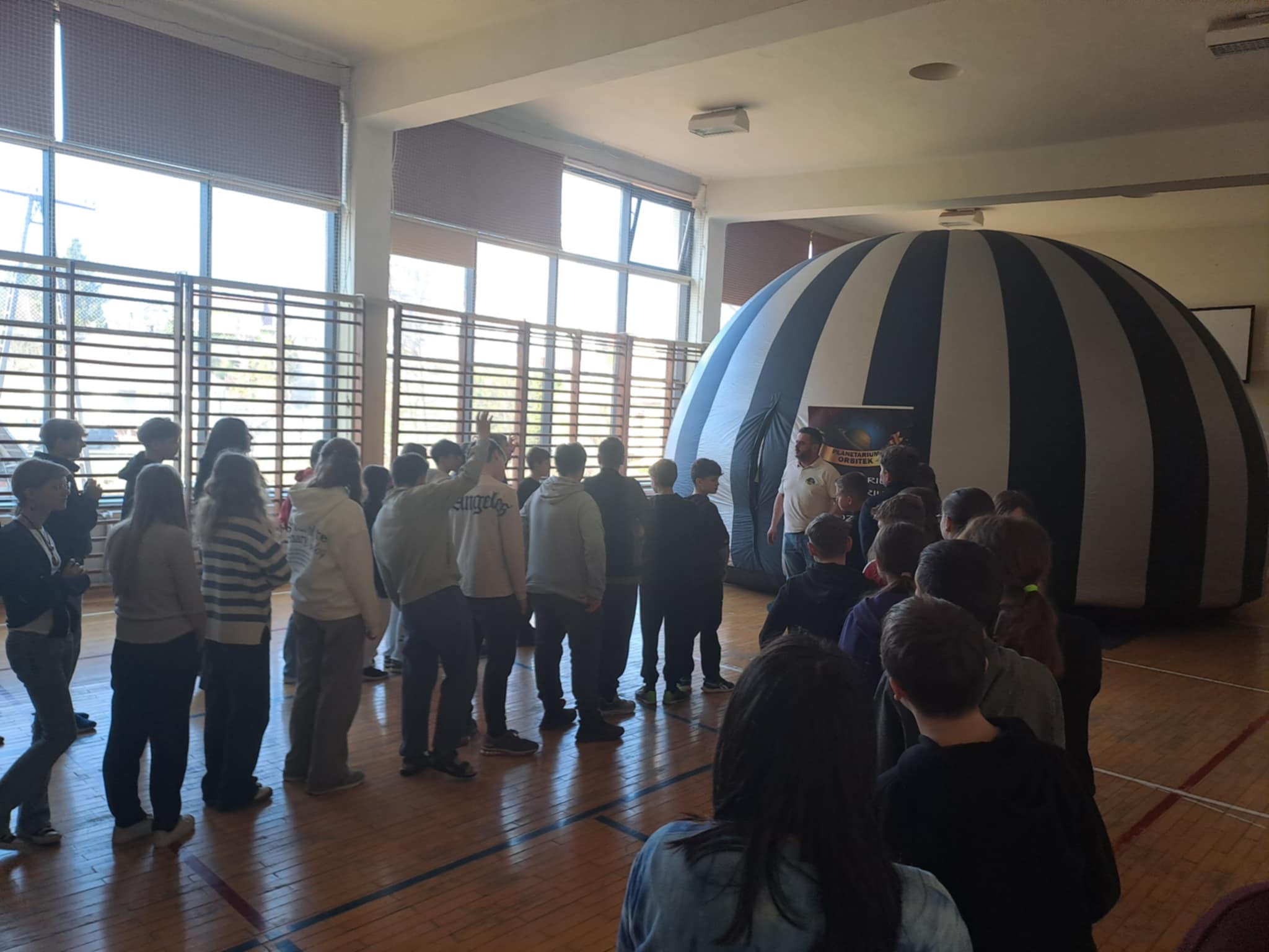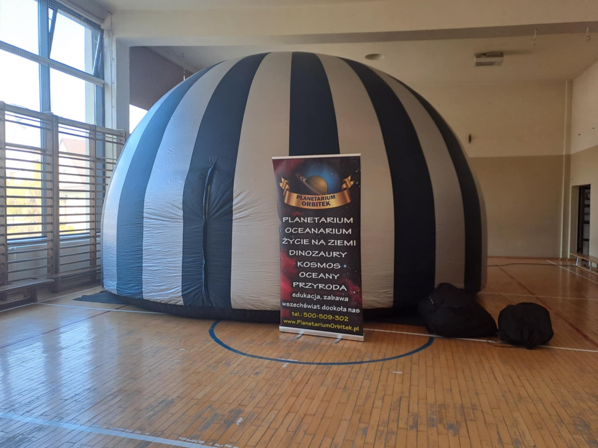 Był już pokaz chemiczno-fizyczny i był pokaz historyczny, a tym razem uczniowie naszej szkoły wybrali się w Kosmos. 26 marca odwiedziło nas Mobilne planetarium Orbitek. Jest to innowacyjne narzędzie edukacyjne, które w fascynujący sposób wprowadza uczniów w świat astronomii i kosmosu. Dzięki zaawansowanej technologii projekcji wyświetlania obrazu dookoła głowy, uczniowie mają możliwość odkrywania tajemnic kosmicznych bez wychodzenia z budynku szkoły.