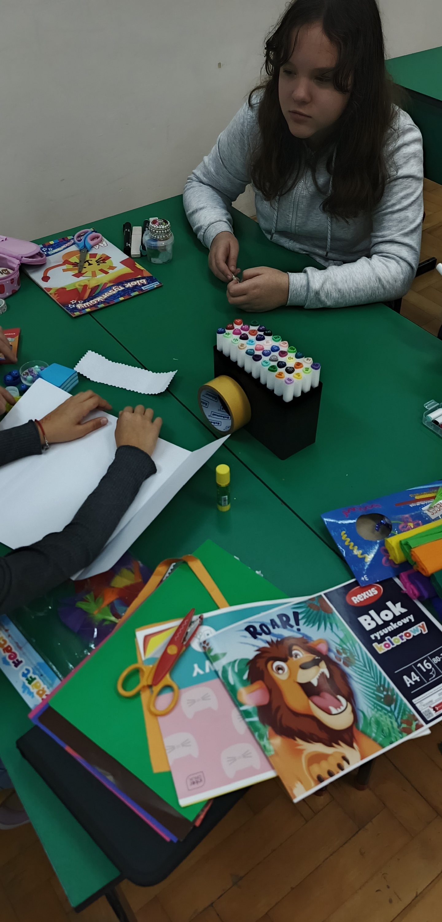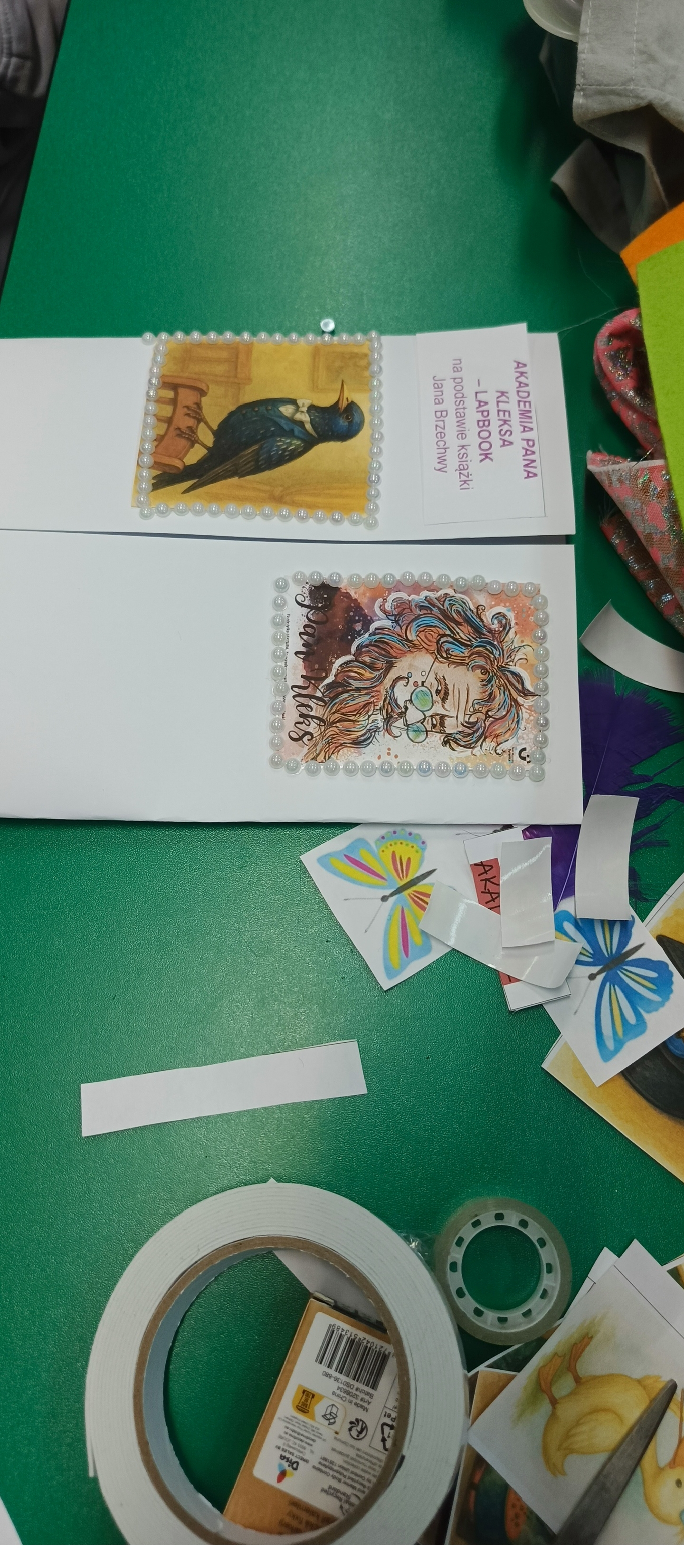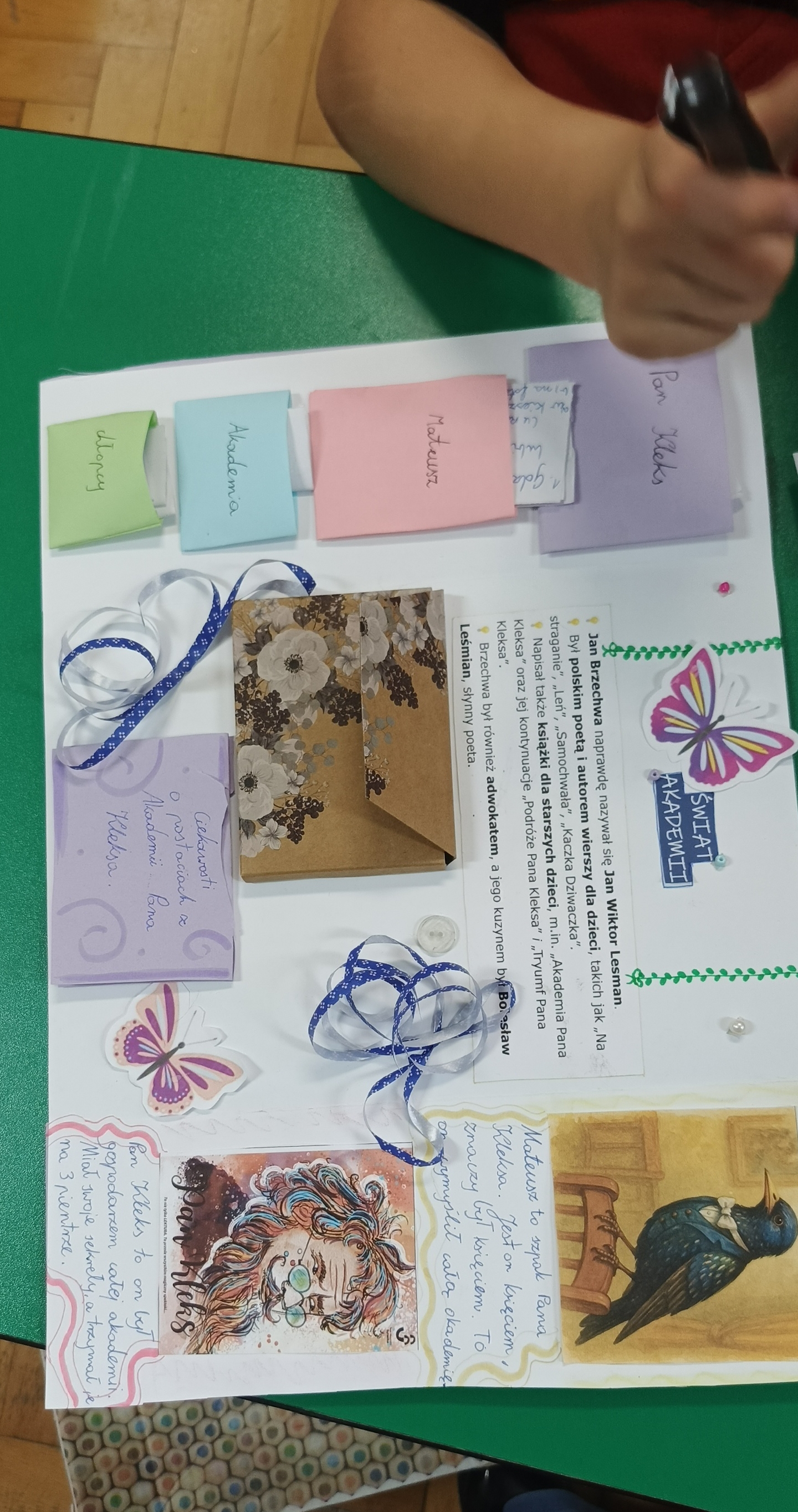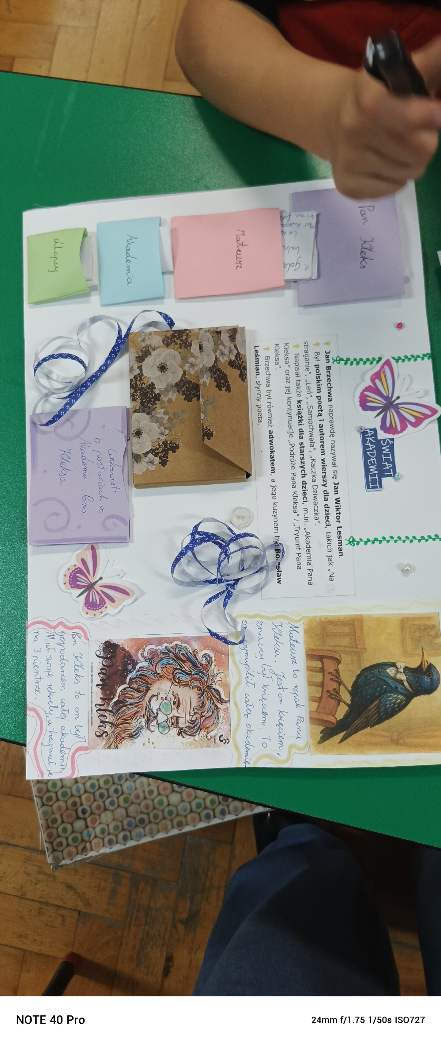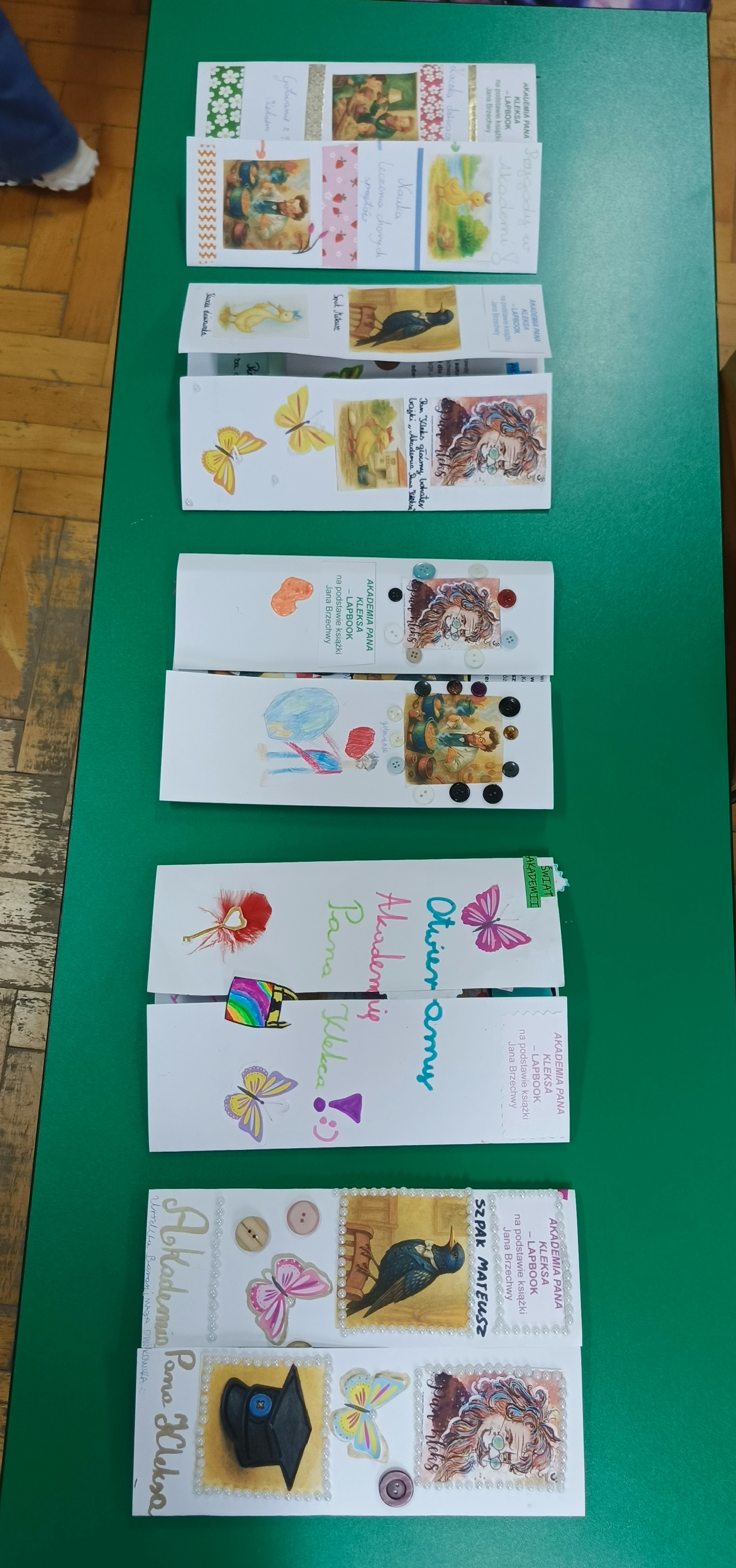 Uczniowie klasy 4 na podsumowanie pracy z lekturą „Akademia pana Kleksa” przygotowali w parach i grupach lapbooki inspirowane światem Ambrożego Kleksa. W swoich pracach uczniowie umieścili najważniejsze informacje o bohaterach, wydarzeniach i niezwykłych przygodach Adasia Niezgódki. Nie zabrakło kolorowych ilustracji, ciekawostek, cytatów i kreatywnych elementów ruchomych. Dzięki tej formie podsumowania lektury dzieci mogły w twórczy sposób utrwalić wiedzę, rozwijać wyobraźnię i pokazać, że nauka może być prawdziwą przygodą — niczym zajęcia w Akademii pana Kleksa!