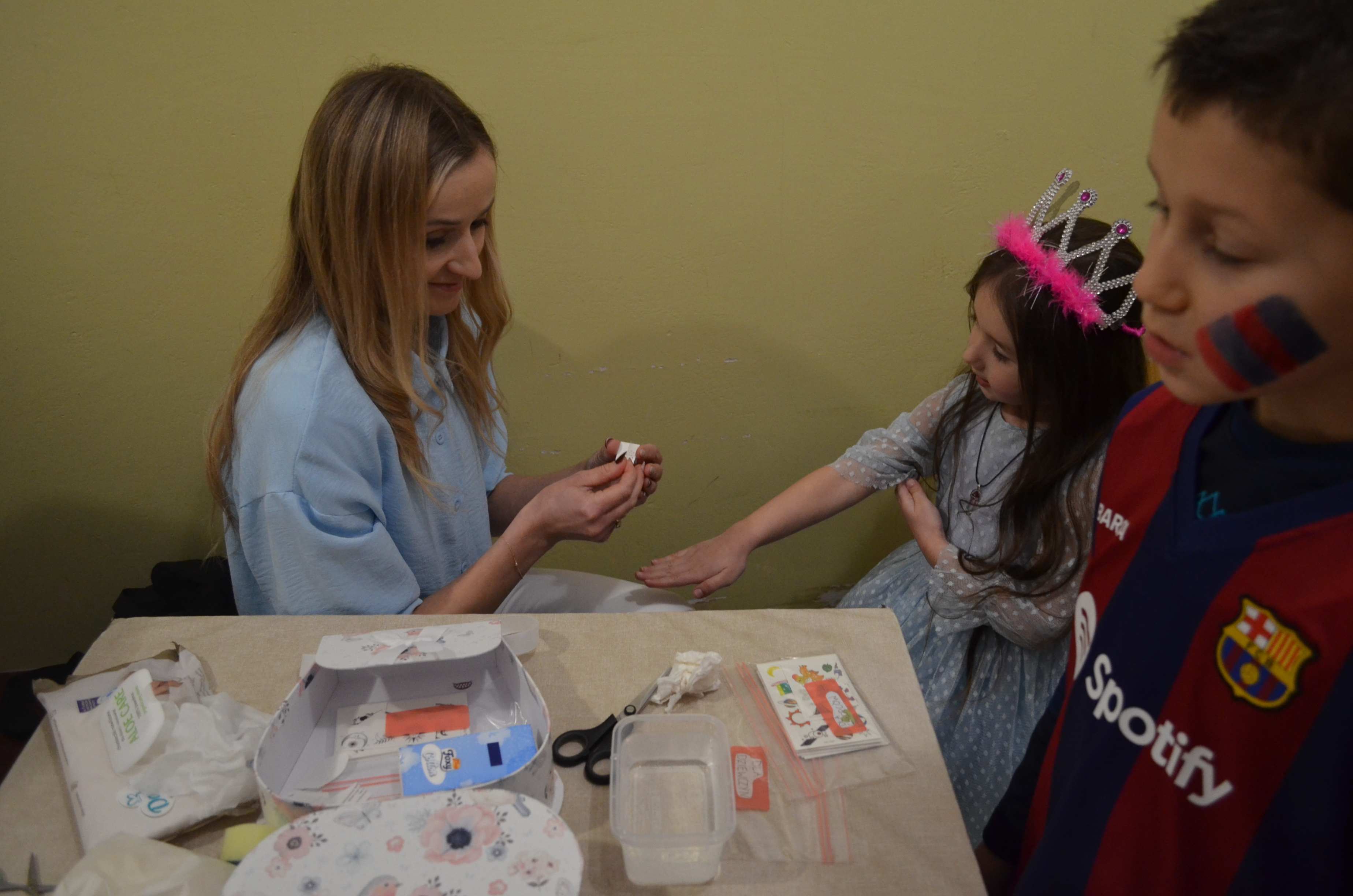 W międzyczasie, uczniowie mogli spróbować domowych wypieków dostarczonych przez rodziców, waty cukrowej oraz popcornu – sprawną dystrybucją zajęły się panie: Monika Opioła, Karolina Myszka, Jadwiga Gołąb, Kornelia Mentel oraz panowie Jarosław Marek & Szymon Drużkowski. Słodkie przekąski, które cieszyły się ogromnym powodzeniem i dodawały energii do dalszej zabawy!