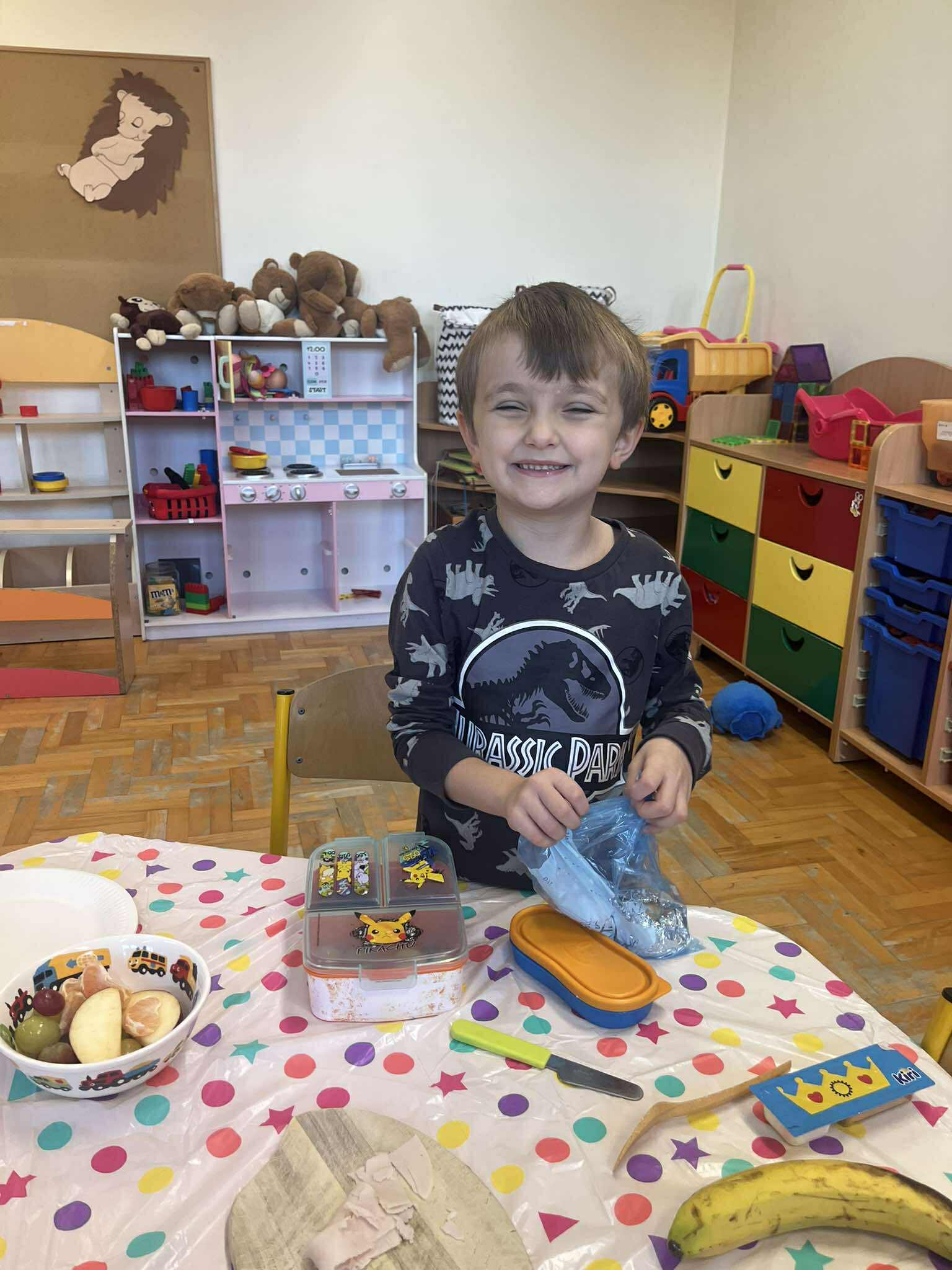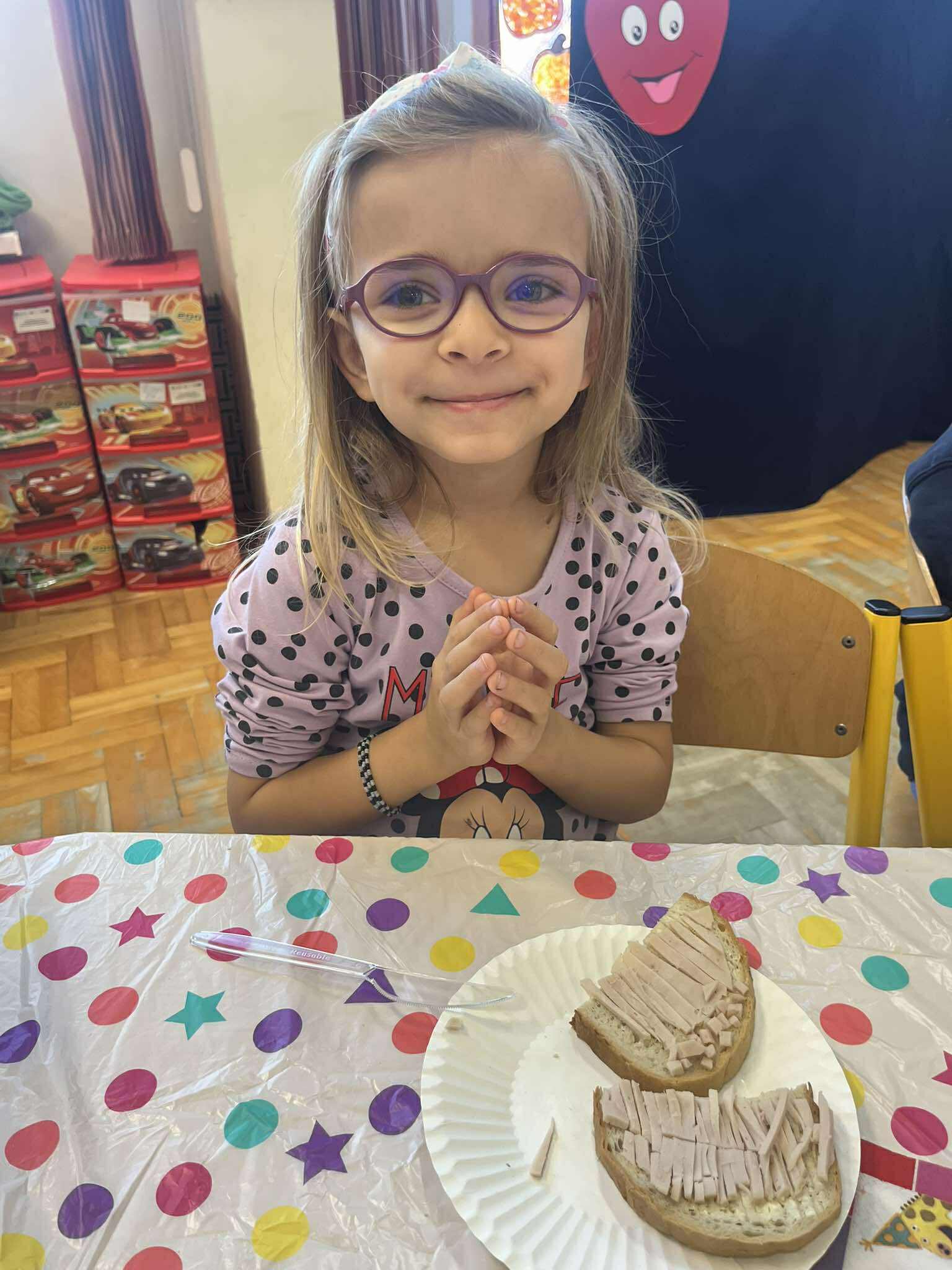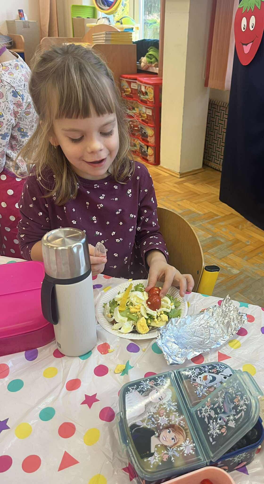 Podczas wspólnego śniadania dzieci uczyły się nie tylko zasad higieny i estetycznego podawania posiłku, ale także kulturalnego zachowania przy stole. Śniadanie było również okazją do dzielenia się przygotowanymi potrawami i wspaniałą zabawą, o czym świadczyła radosna i serdeczna atmosfera, która panowała we wszystkich klasach.