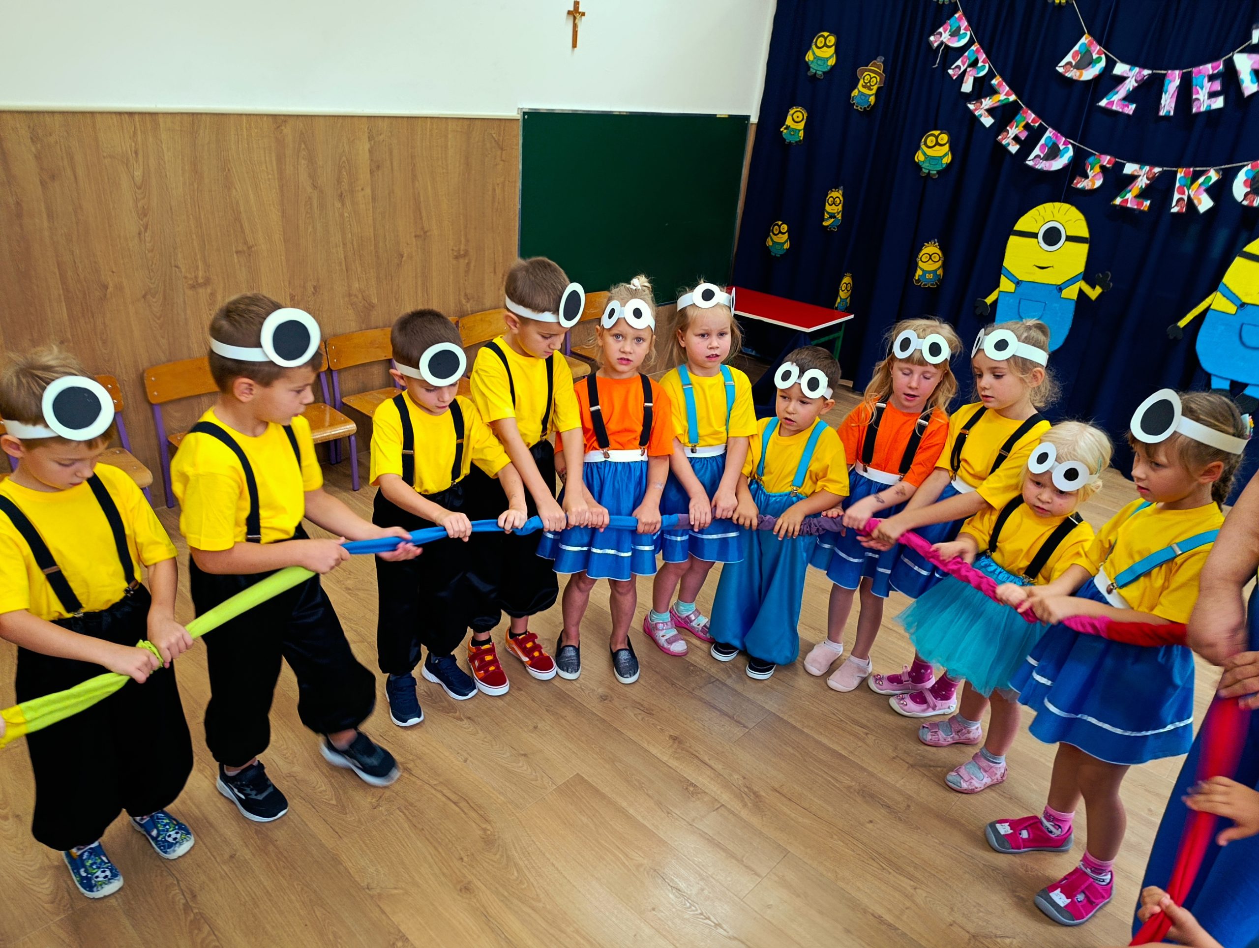 genezę tego święta i wysłuchaliśmy opowiadania o kropce, która zmieniała świat małej dziewczynki Vashti oraz uświadomiła nam, że każdy ma swoją wartość oraz jakieś ukryte zdolności i talenty. Dzieci tego dnia przystroiły się w kolorowe kropki oraz chętnie uczestniczyły w zabawach i zadaniach, oczywiście z kropką w roli głównej. Wspólnie odkryliśmy, że kropki towarzyszą nam dookoła w naszym codziennym życiu, nawet na naszym ciele i u zwierząt. Wymyślaliśmy co może powstać z kropki, tworzyliśmy ciekawe prace plastyczne.