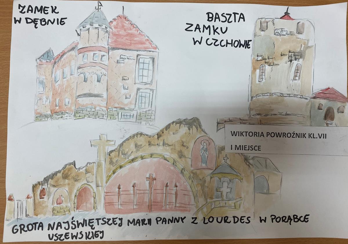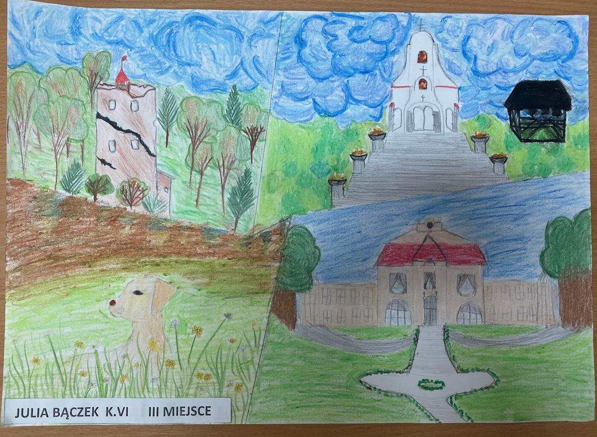 z kl. VII, II miejsce Emilia Roman z kl. V, III miejsc Julia Bączek z kl. VI. Wyróżnienie otrzymała Aleksandra Piechnik z kl. VI.