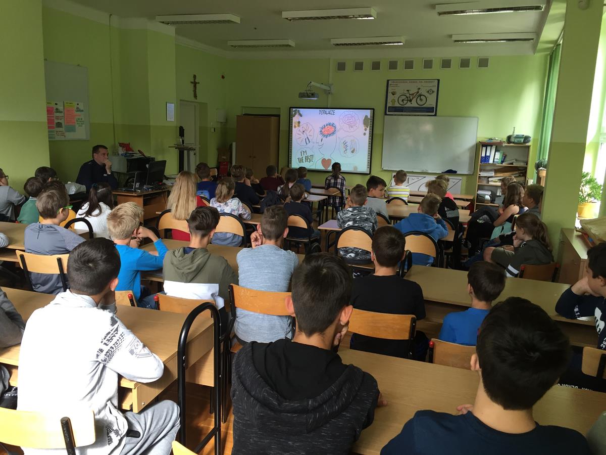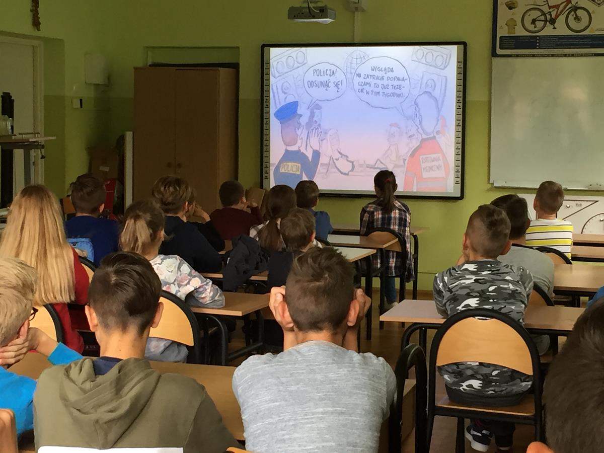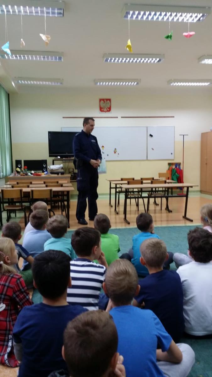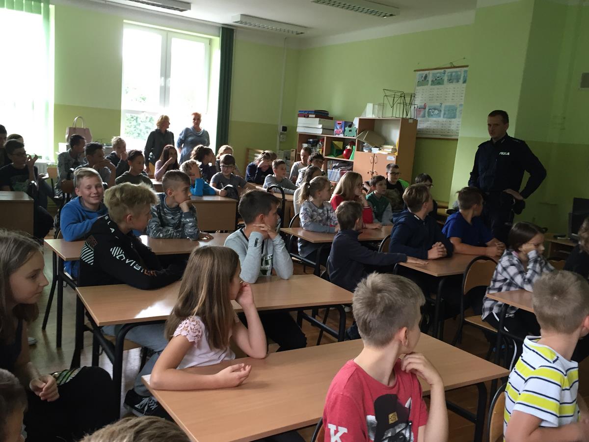 W myśl jednego z podstawowych kierunków realizacji polityki oświatowej państwa, jakim w roku szkolnym 2019/2020 jest m.in. “Profilaktyka uzależnień w szkołach i placówkach oświatowych”, zaprosiliśmy do naszej podstawówki policjanta.