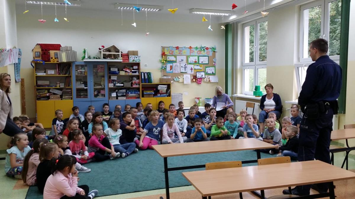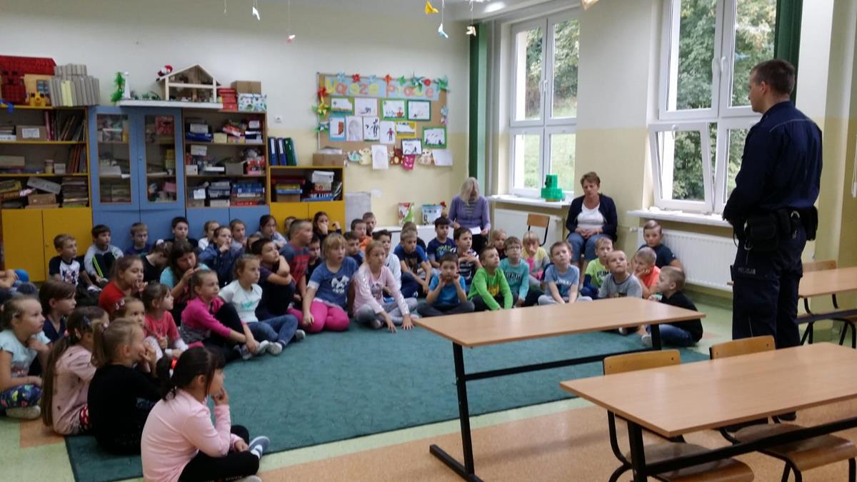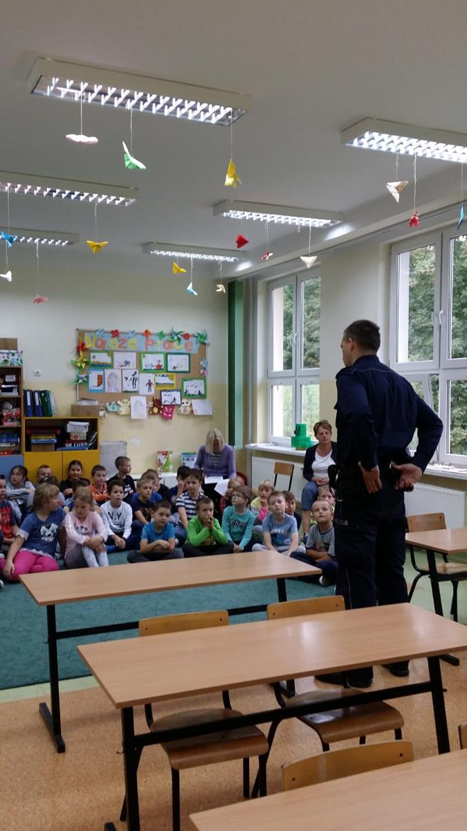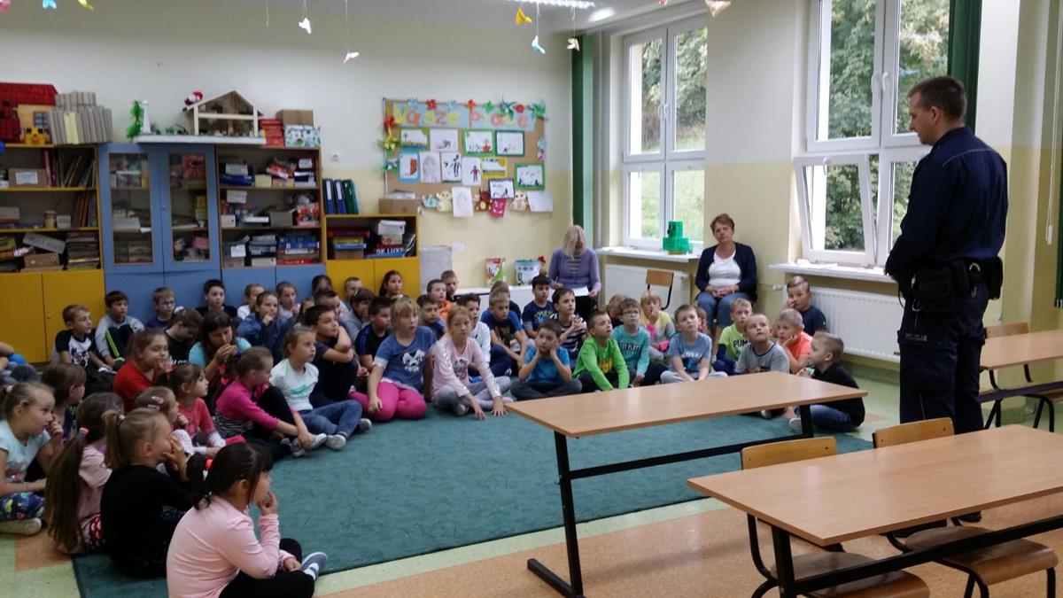 18 września odwiedził nas asp. Marek Świder – dzielnicowy Łysej Góry, który w klasach I-IV przeprowadził prelekcję na temat bezpieczeństwa w ruchu drogowym. Wspomniał jednak również