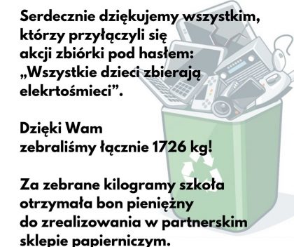 PODSUMOWANIE AKCJI “WSZYSTKIE DZIECI ZBIERAJĄ ELEKTROŚMIECI”