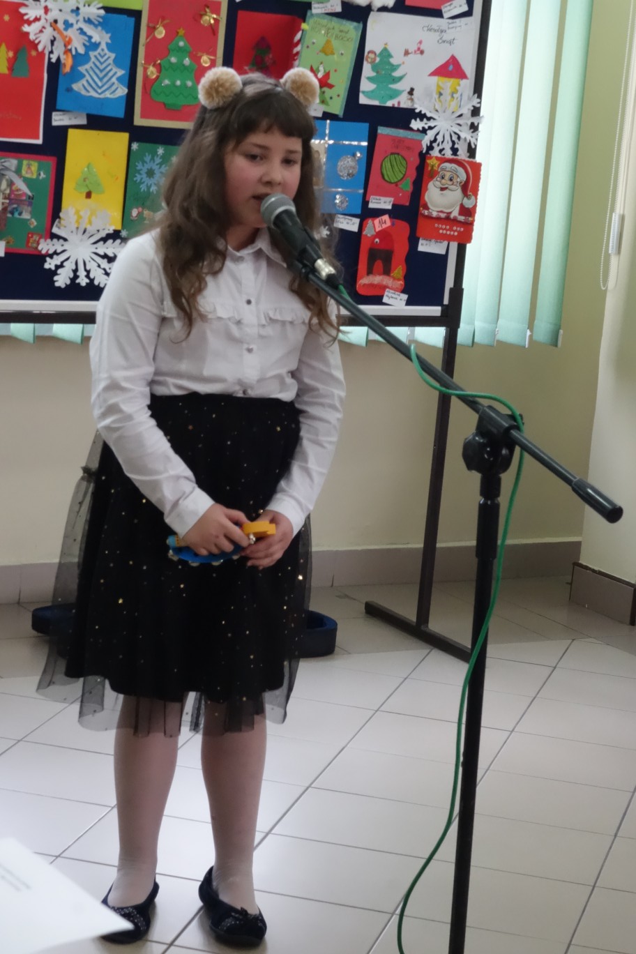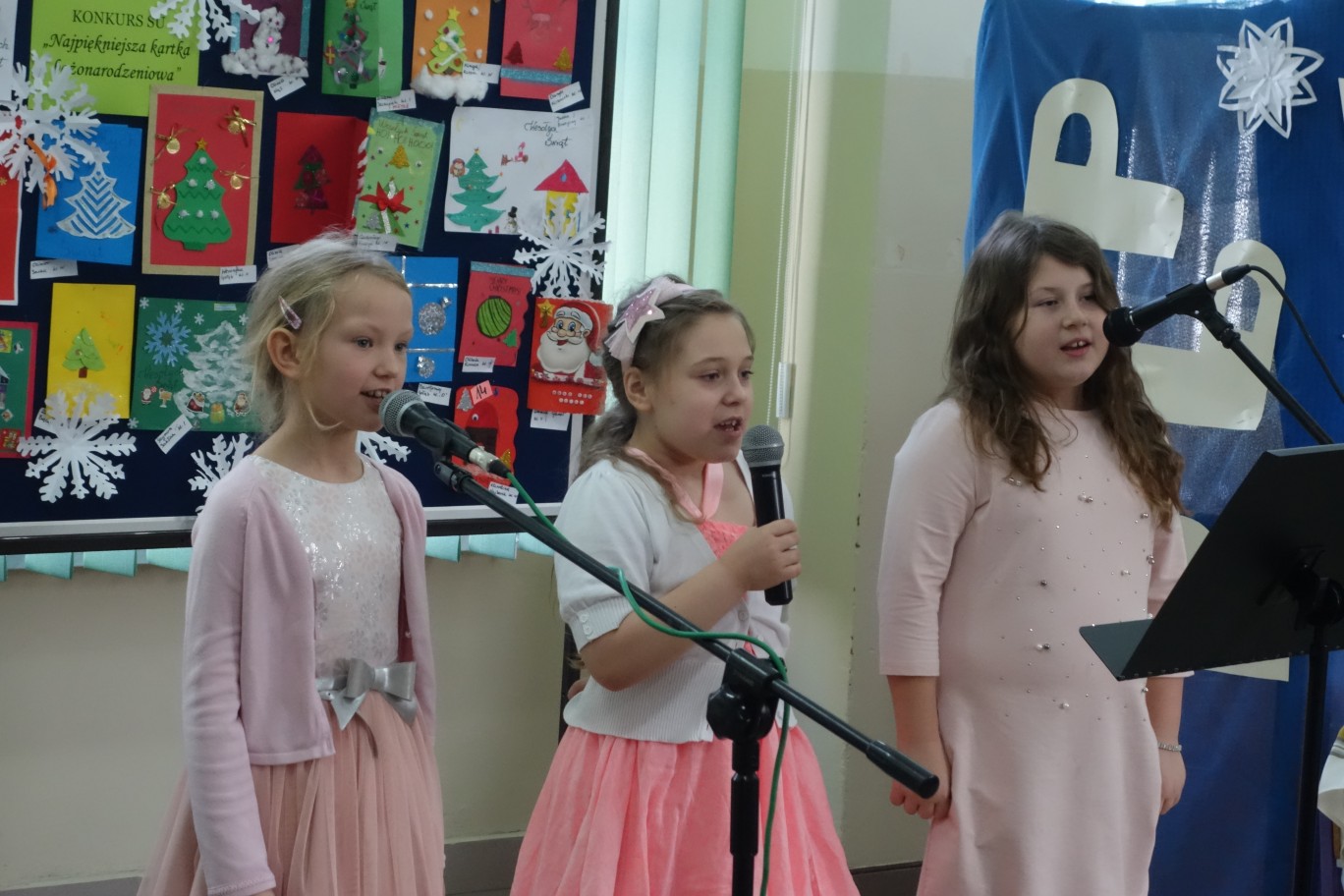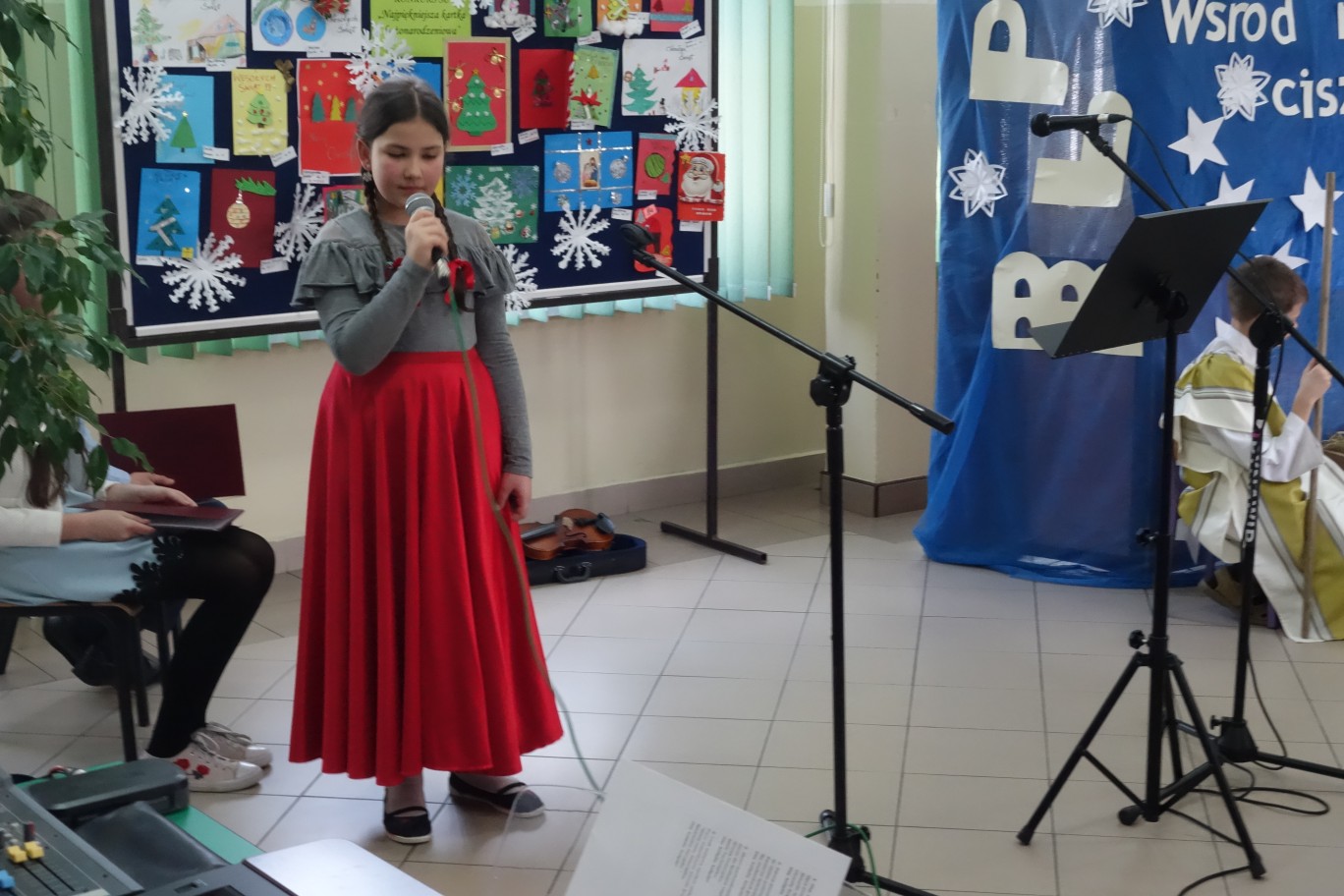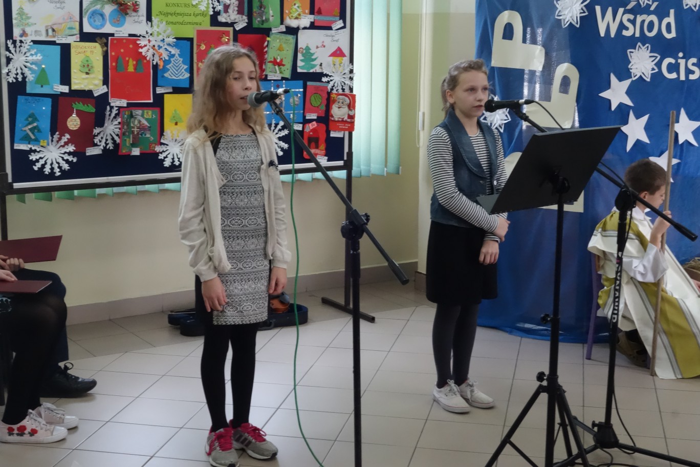 i ze swobodą poprowadziły konferansjerki, uczennice klasy VIII, Anna Gurgul i Wiktoria Smoleń. Występy były różnorodne, zarówno pod względem wieku wykonawców(Konkurs każdego roku odbywa się w 4 grupach wiekowych) jak i repertuaru. Nie zabrakło utworów lirycznych, wzruszających, tradycyjnych kolęd, ale także melodii skocznych, które same składały ręce publiczności do oklasków
