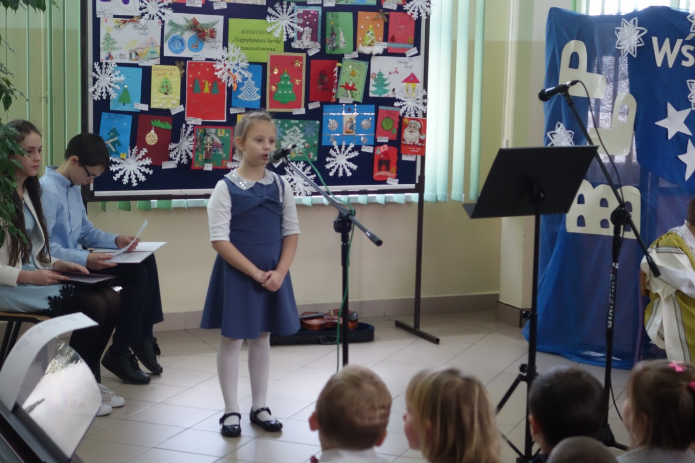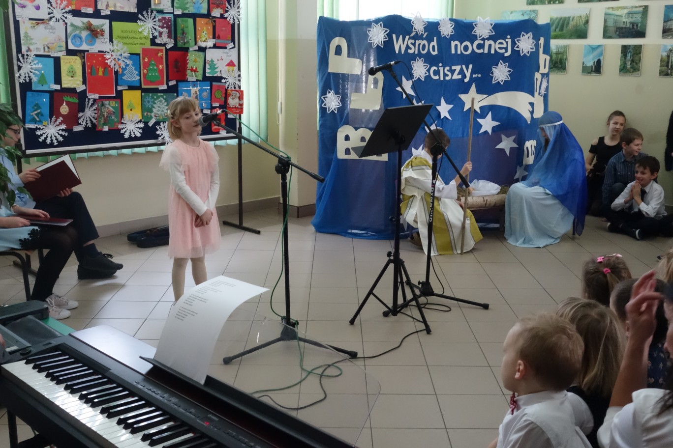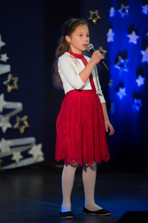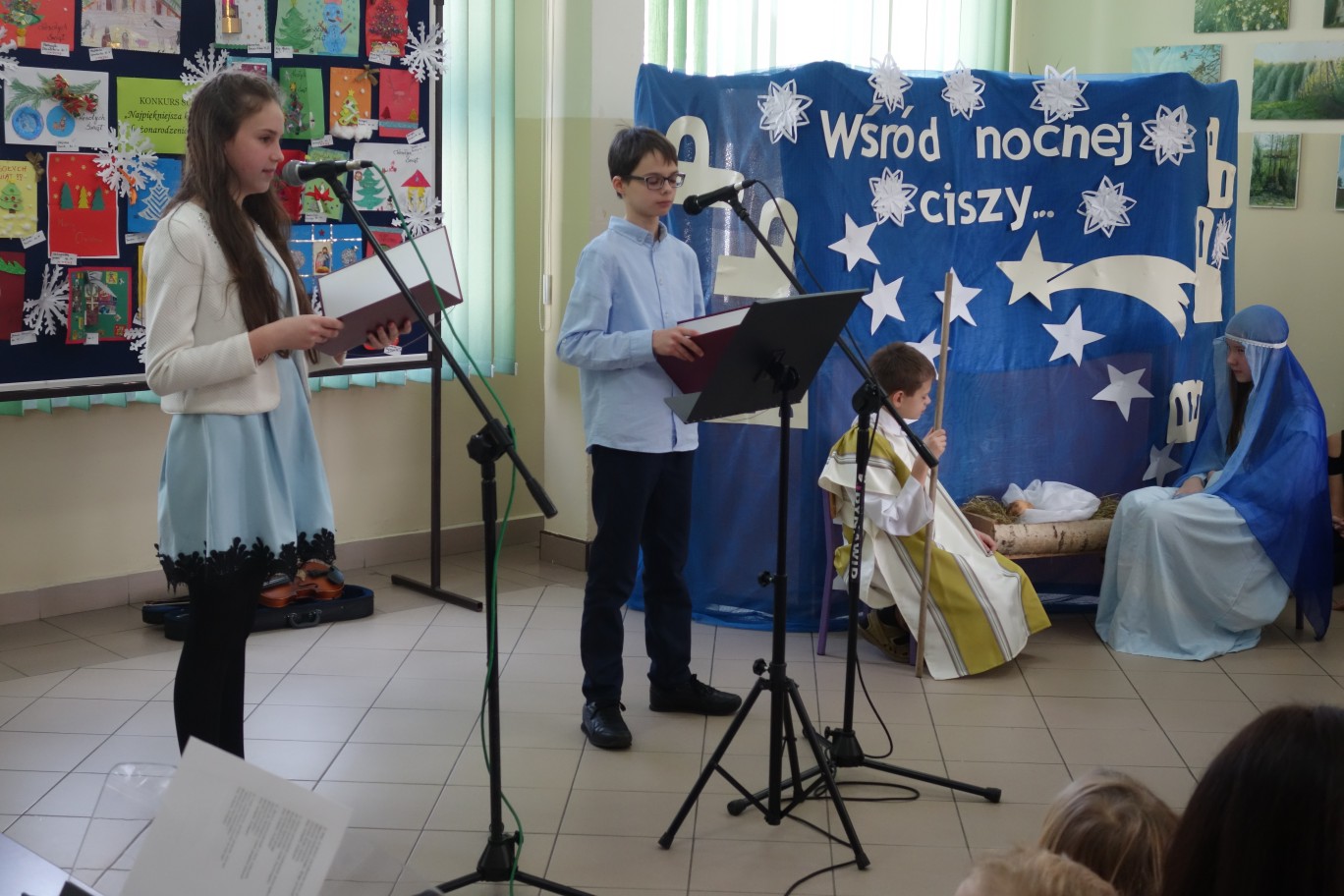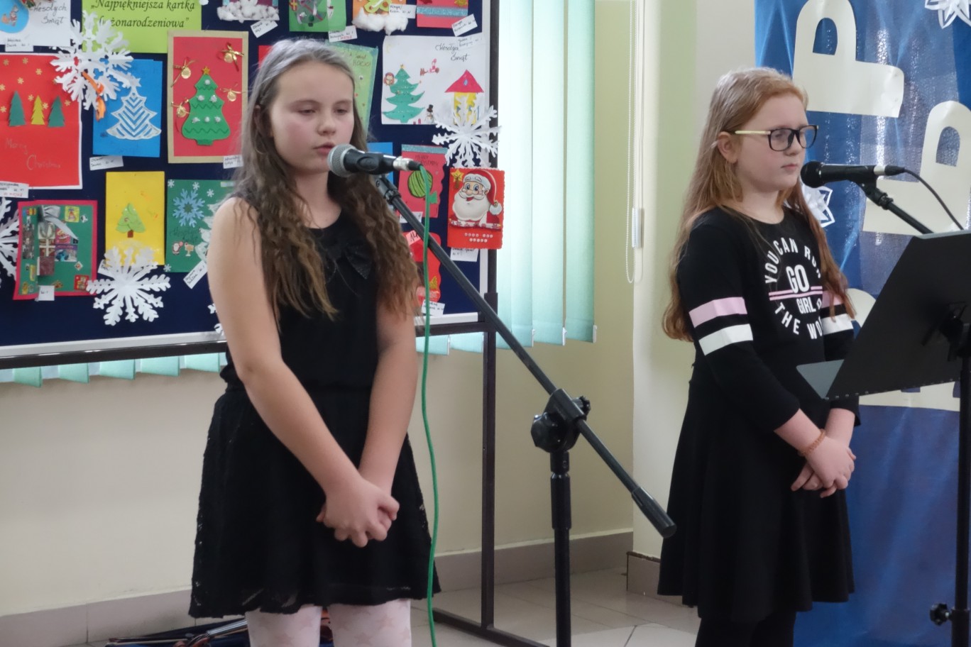 i ze swobodą poprowadziły konferansjerki, uczennice klasy VIII, Anna Gurgul i Wiktoria Smoleń. Występy były różnorodne, zarówno pod względem wieku wykonawców(Konkurs każdego roku odbywa się w 4 grupach wiekowych) jak i repertuaru. Nie zabrakło utworów lirycznych, wzruszających, tradycyjnych kolęd, ale także melodii skocznych, które same składały ręce publiczności do oklasków