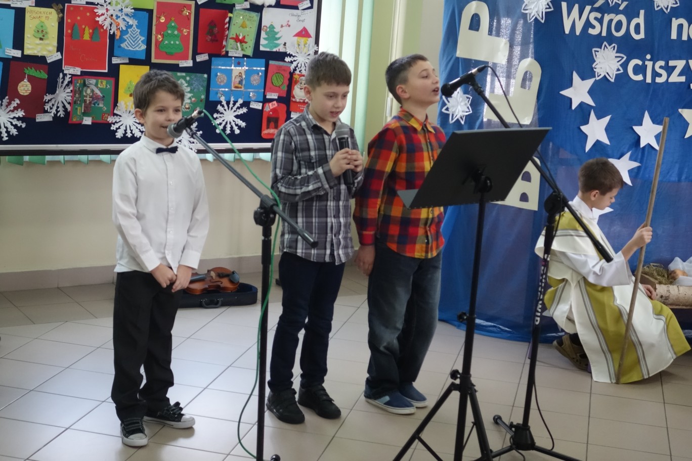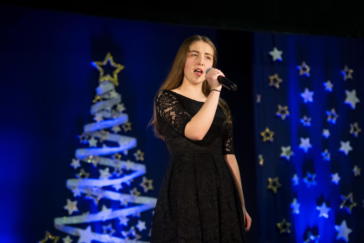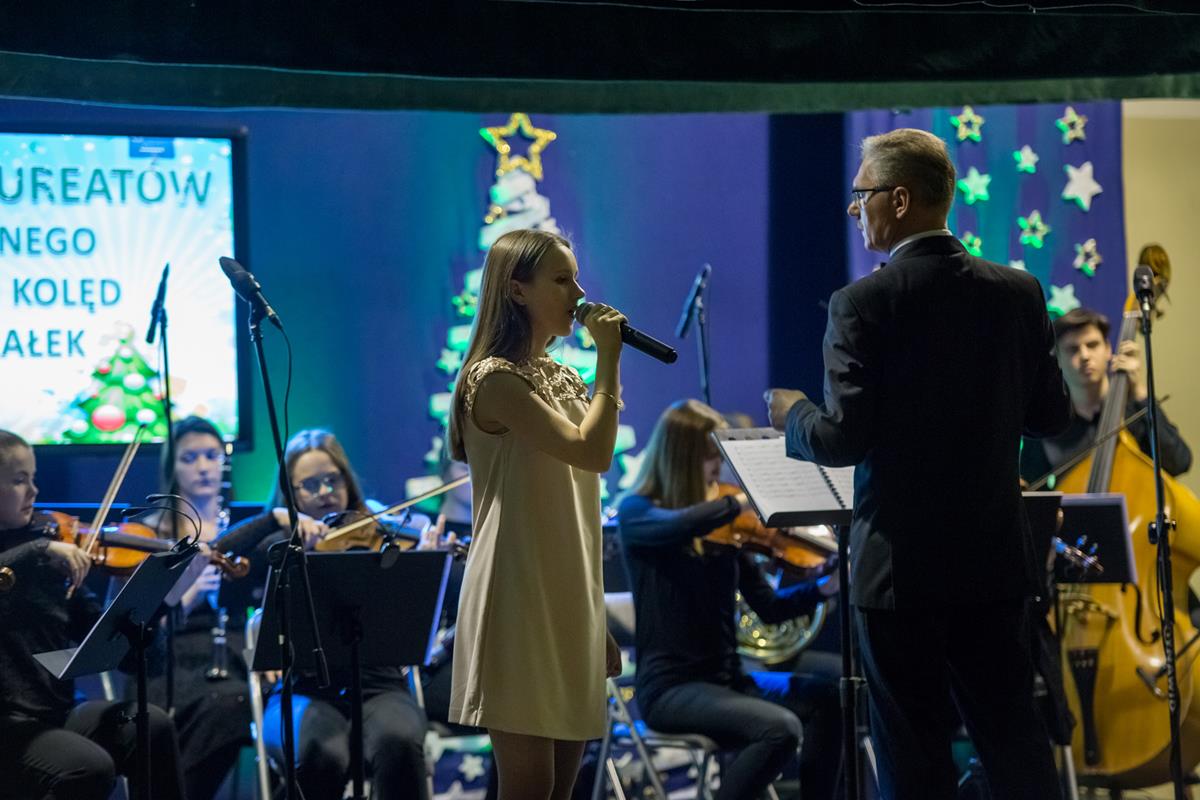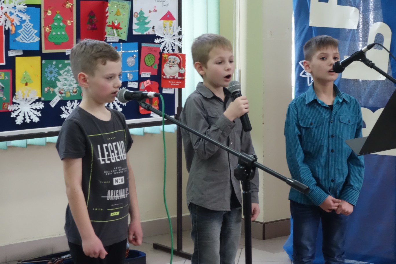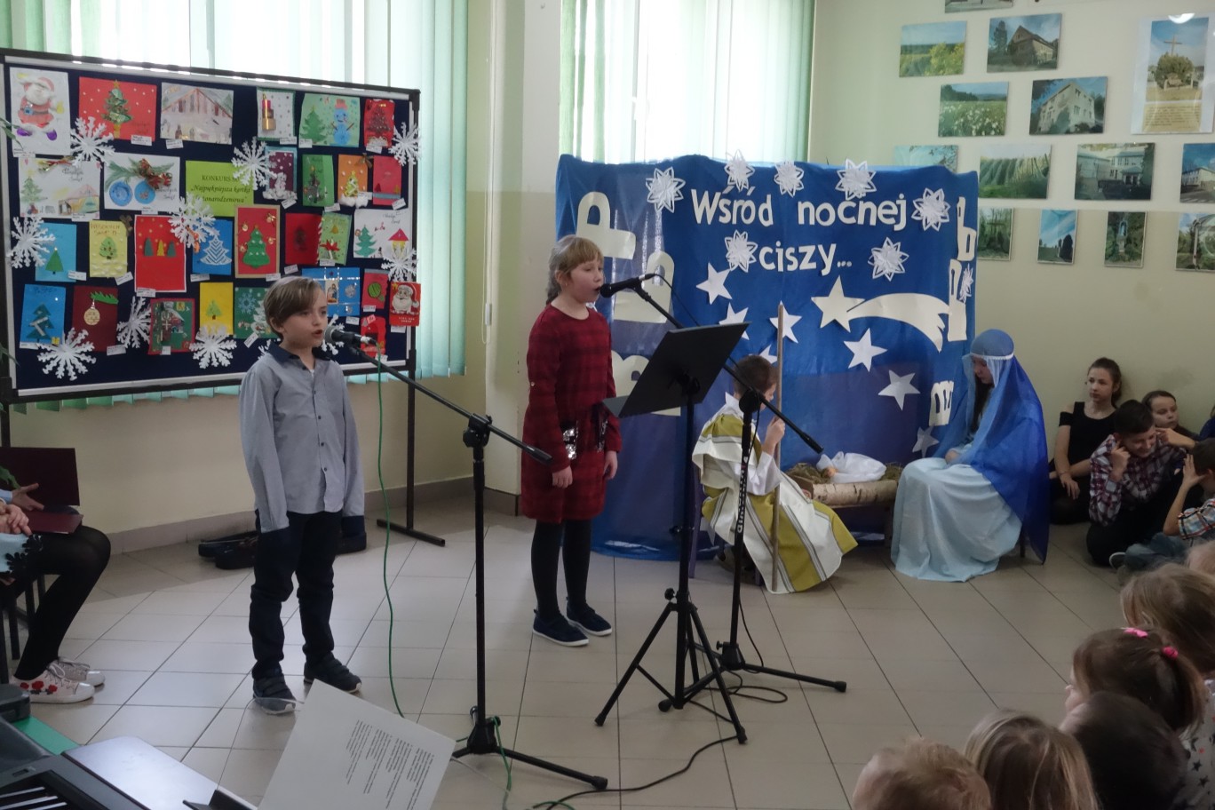 i ze swobodą poprowadziły konferansjerki, uczennice klasy VIII, Anna Gurgul i Wiktoria Smoleń. Występy były różnorodne, zarówno pod względem wieku wykonawców(Konkurs każdego roku odbywa się w 4 grupach wiekowych) jak i repertuaru. Nie zabrakło utworów lirycznych, wzruszających, tradycyjnych kolęd, ale także melodii skocznych, które same składały ręce publiczności do oklasków