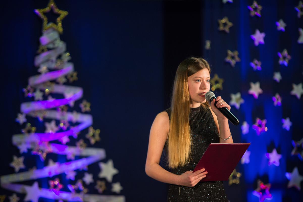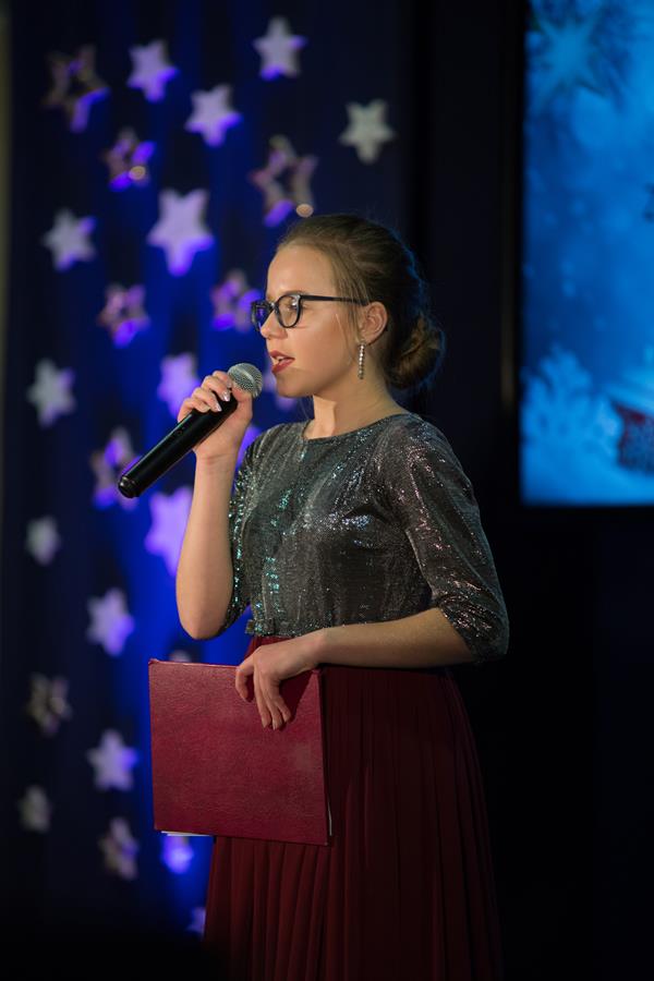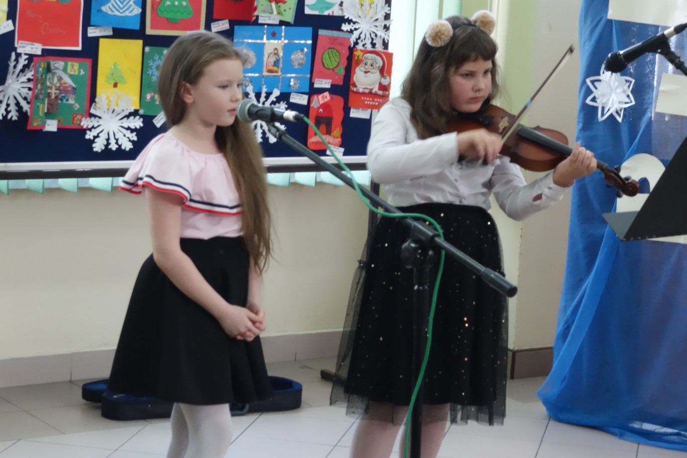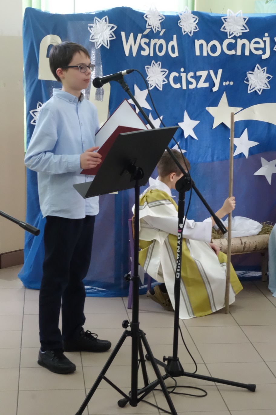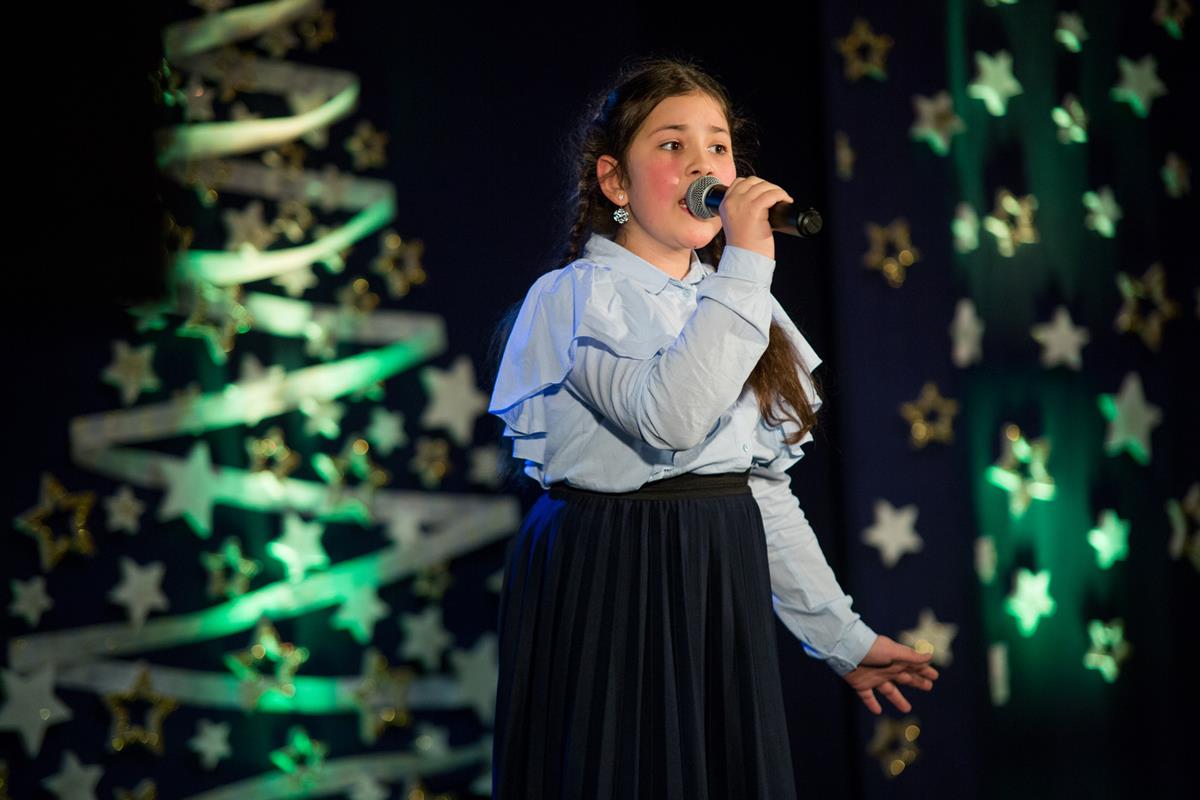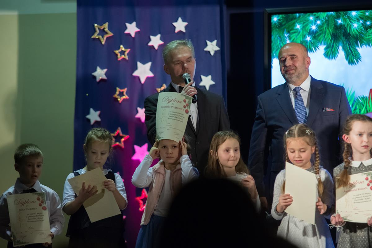 i ze swobodą poprowadziły konferansjerki, uczennice klasy VIII, Anna Gurgul i Wiktoria Smoleń. Występy były różnorodne, zarówno pod względem wieku wykonawców(Konkurs każdego roku odbywa się w 4 grupach wiekowych) jak i repertuaru. Nie zabrakło utworów lirycznych, wzruszających, tradycyjnych kolęd, ale także melodii skocznych, które same składały ręce publiczności do oklasków