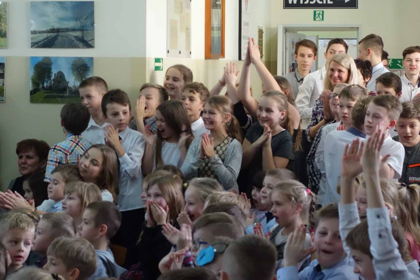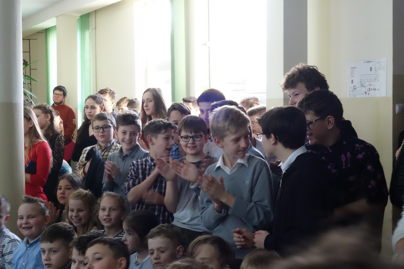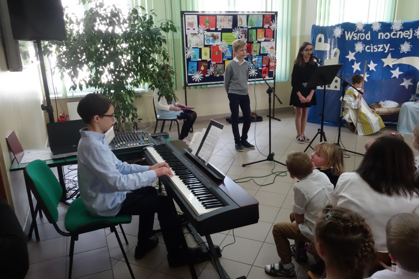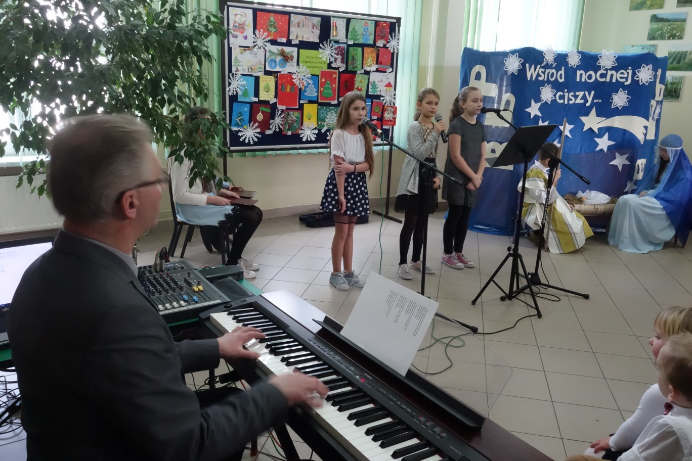 Zgodnie ze szkolną tradycją w ostatnim dniu przed przerwą świąteczną uczniowie, nauczyciele oraz pracownicy naszej szkoły zebrali się, by wysłuchać kolęd i pastorałek w wykonaniu przedstawicieli niemal wszystkich klas. Co więcej, ku zaskoczeniu
