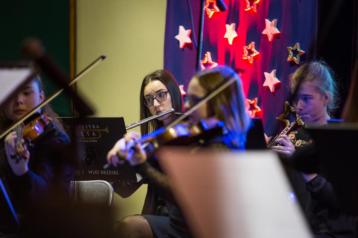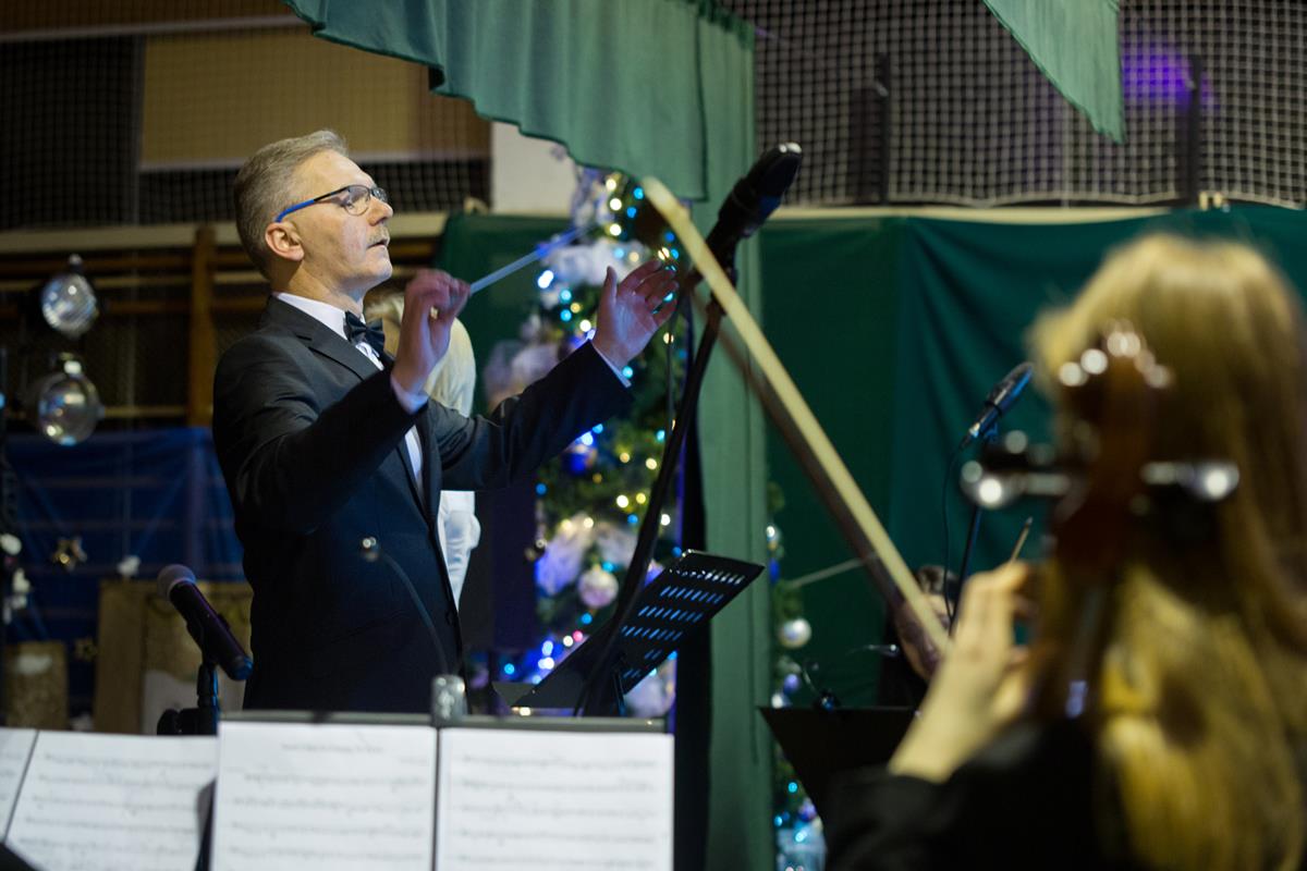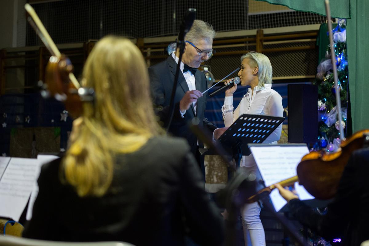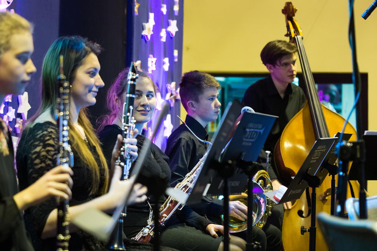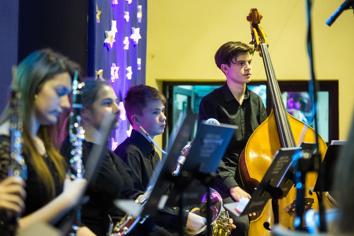Jak każdego roku nie zabrakło niespodzianek i atrakcji. Tym razem rozpoczęliśmy dość nietypowo, bo od występu gwiazdy- orkiestry kameralnej, w skład której weszli nauczyciele i uczniowie szkoły muzycznej II stopnia w Tarnowie. I tu kolejna niespodzianka, za pulpitem dyrygenckim stanął pan Artur Potępa, na co dzień dyrektor i nauczyciel muzyki w naszej szkole, a na specjalne okazje „człowiek orkiestra”.