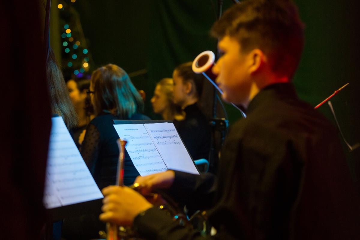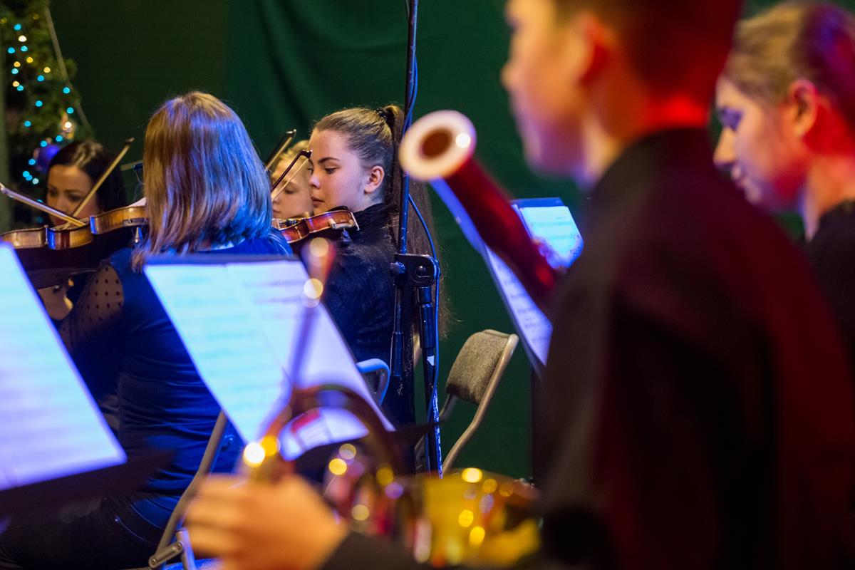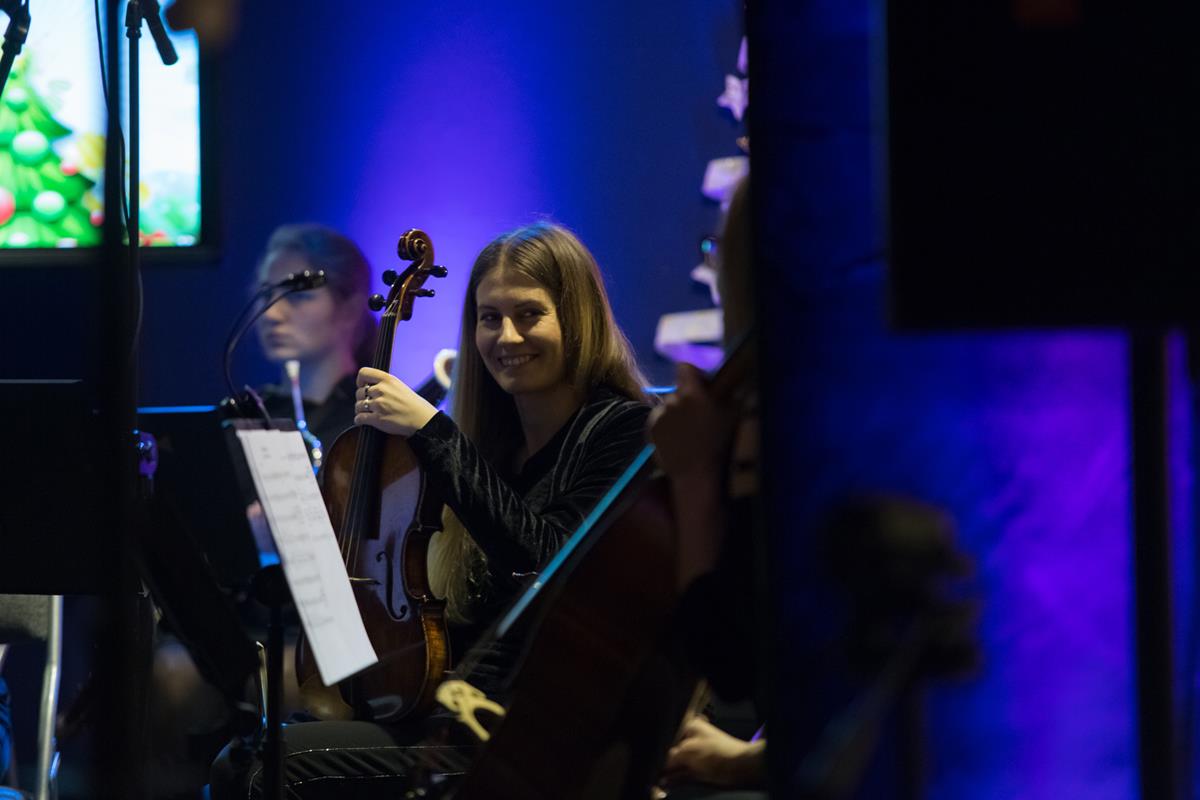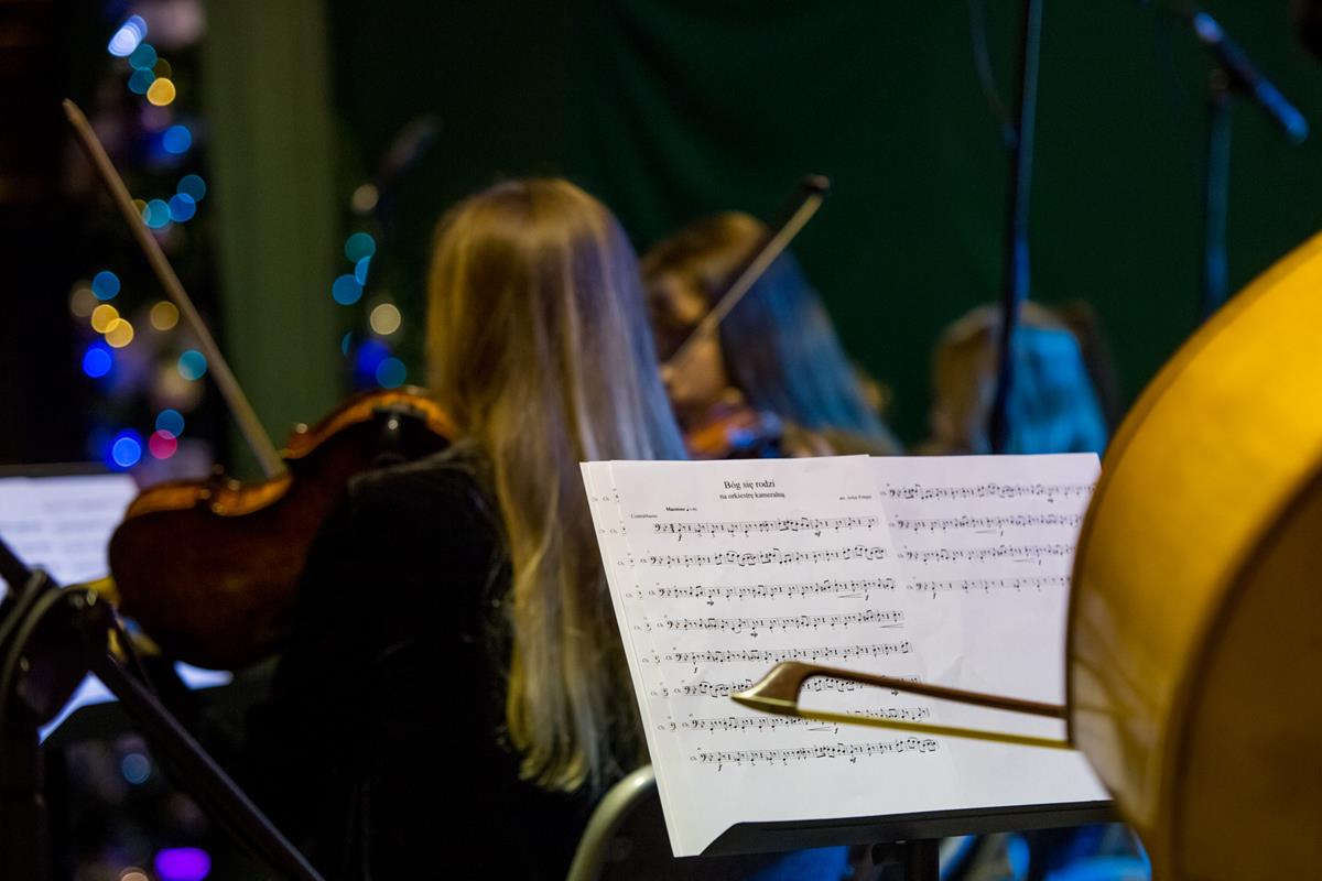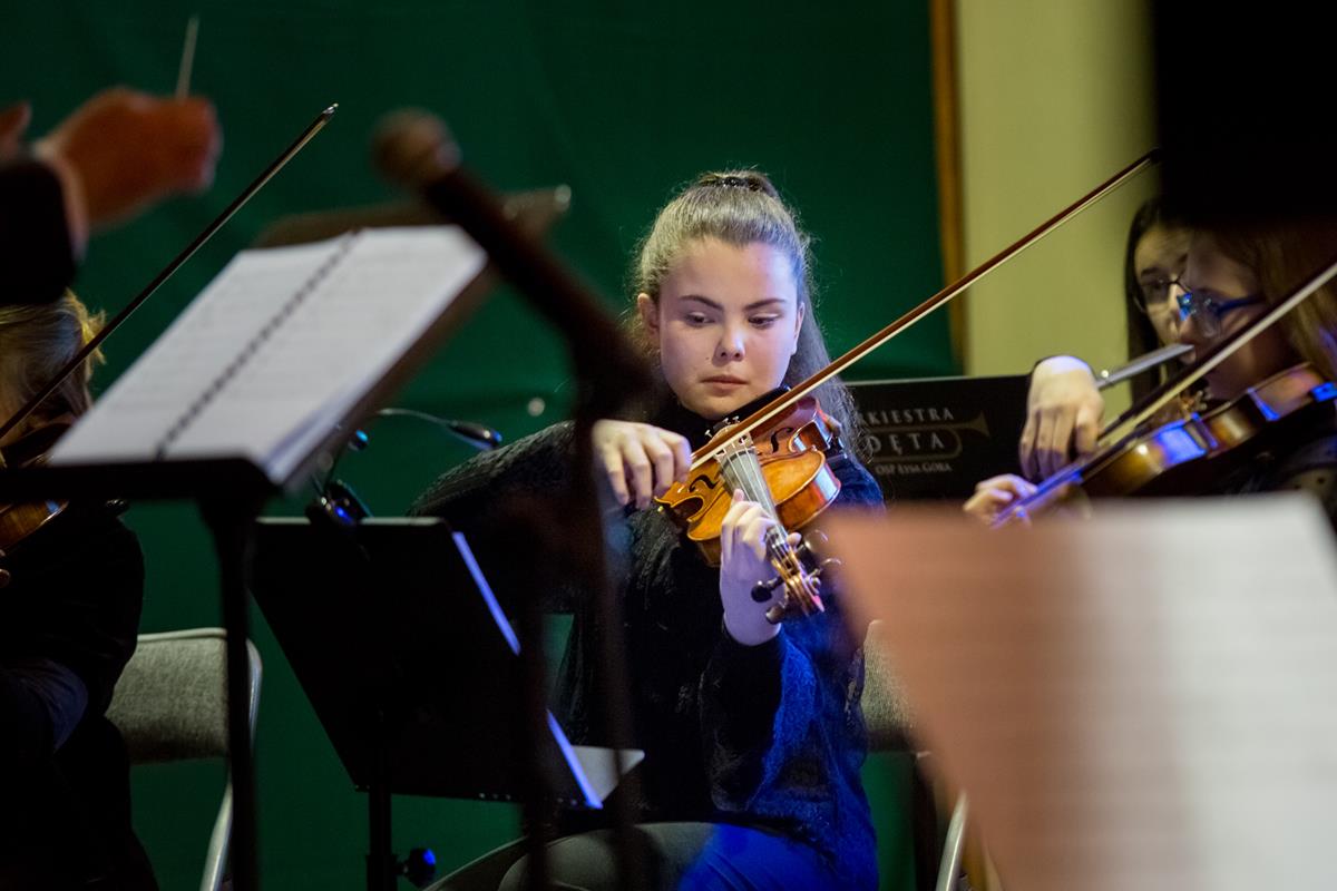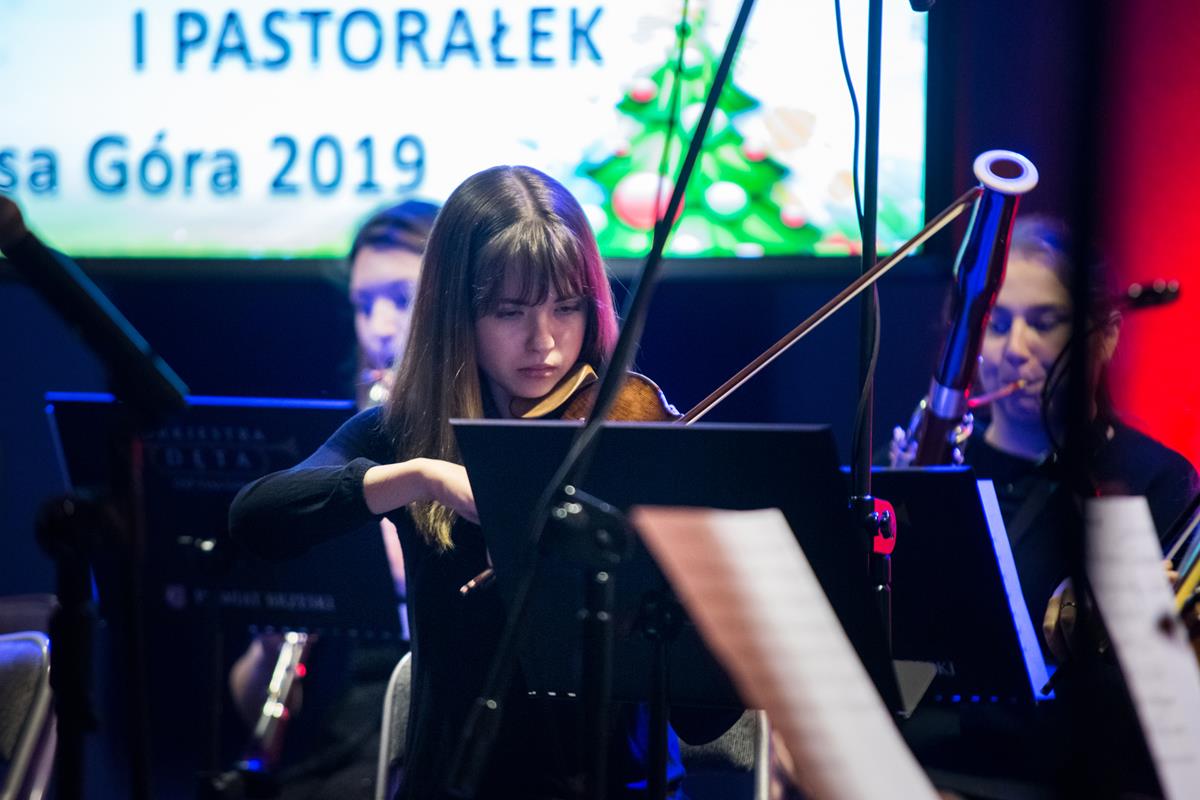 Jak każdego roku nie zabrakło niespodzianek i atrakcji. Tym razem rozpoczęliśmy dość nietypowo, bo od występu gwiazdy- orkiestry kameralnej, w skład której weszli nauczyciele i uczniowie szkoły muzycznej II stopnia w Tarnowie. I tu kolejna niespodzianka, za pulpitem dyrygenckim stanął pan Artur Potępa, na co dzień dyrektor i nauczyciel muzyki w naszej szkole, a na specjalne okazje „człowiek orkiestra”.