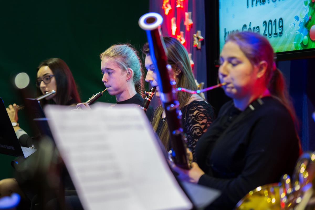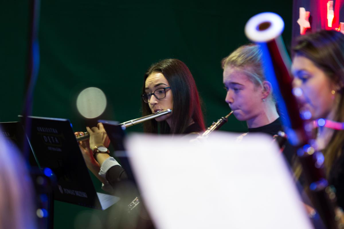 Goście wykonali kolędy i utwory świąteczne w aranżacji p. Potępy. Muzykom towarzyszyły wokalistki- pani Sylwia Pasek, instruktor wokalny w Dębińskim Centrum Kultury oraz Kinga Gurgul, uczennica klasy ósmej ZSP w Dębnie, znana szerszej publiczności