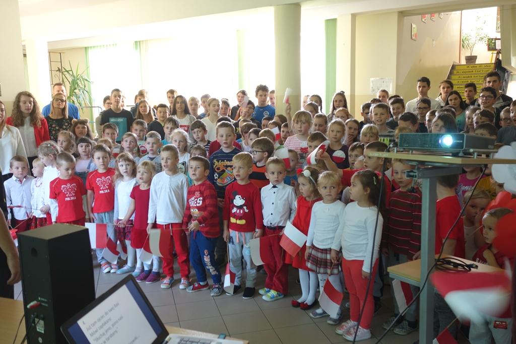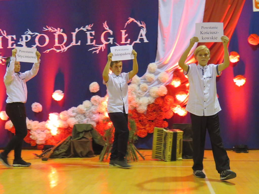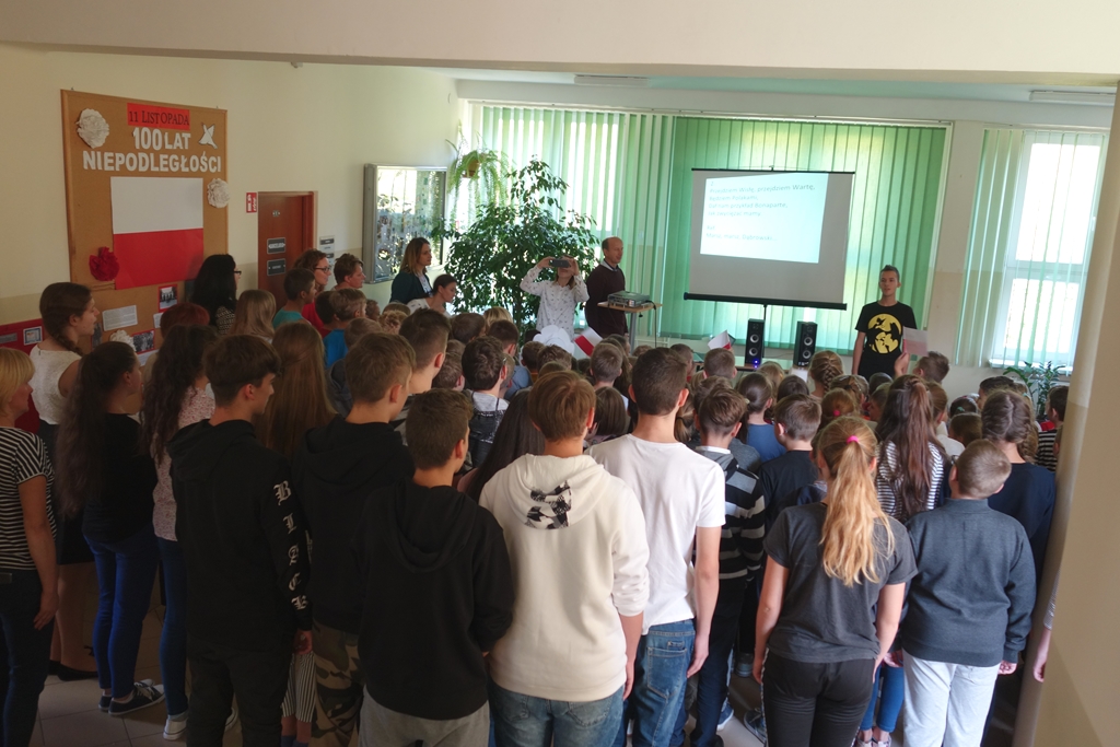 Jubileusz setnej rocznicy odzyskania przez Polskę niepodległości świętowaliśmy w naszej szkole w piątek, 9 listopada. Żeby jeszcze bardziej podkreślić wyjątkowość i niepowtarzalność okazji, pan dyrektor placówki Artur Potępa zdecydował, że przygotujemy uroczystość, którą będą mogli obejrzeć nie tylko uczniowie
