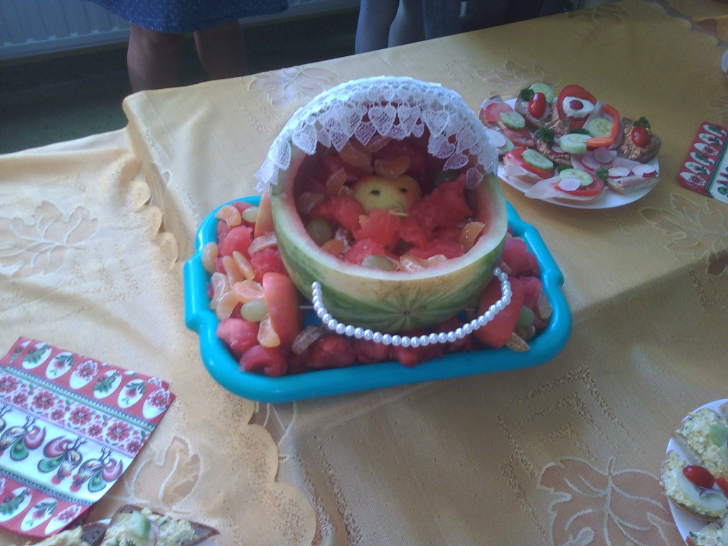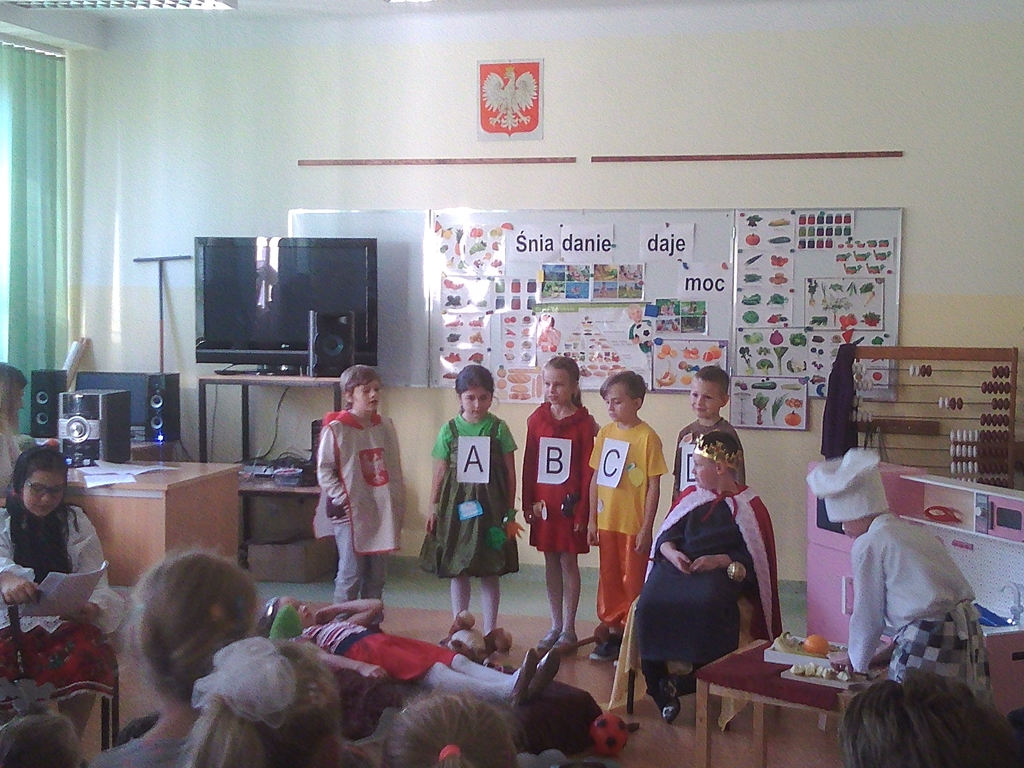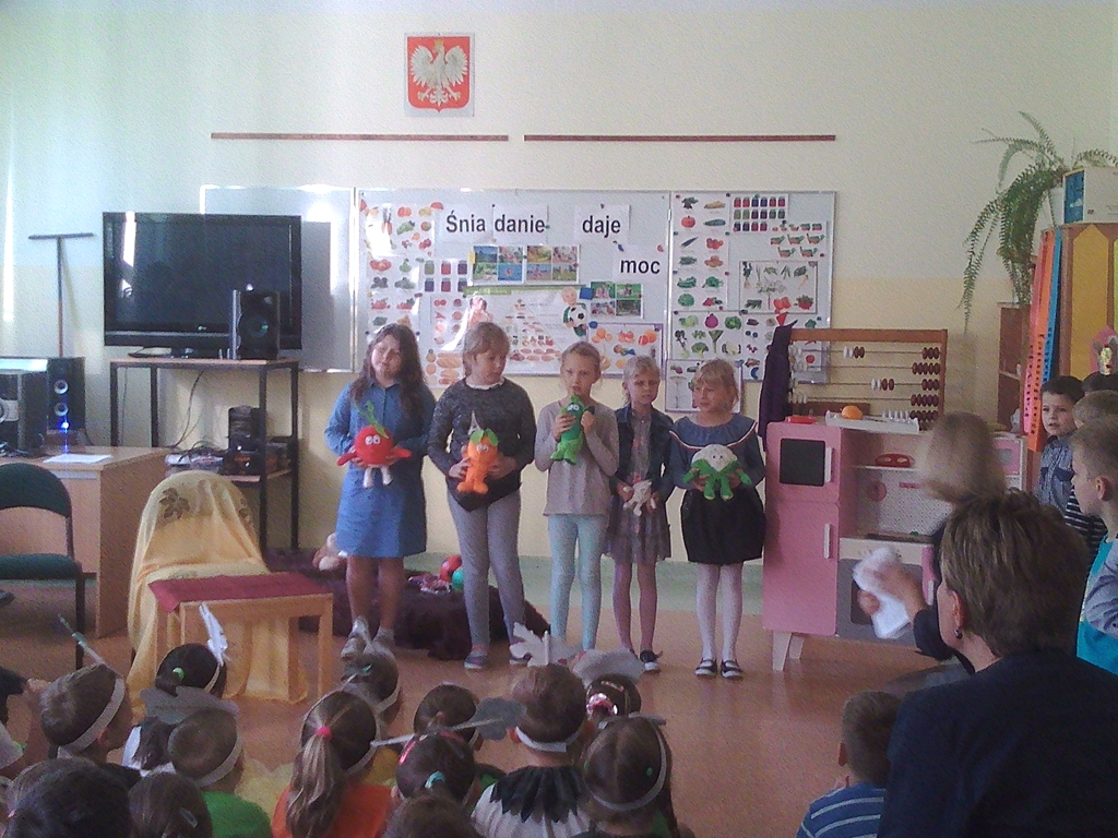 Dodatkowo w tym dniu uczniowie z klas II i III,  realizowali na zajęciach treści programu edukacyjnego pt. ,,5 porcji zdrowia w szkole”. Aby jak najlepiej przybliżyć dzieciom omawianą tematykę, dzieci wzięły udział w prelekcji, obejrzały prezentację multimedialną oraz uczestniczyły w quizach i rozwiązywały krzyżówki. Dzięki udziałowi w tym programie uczniowie poszerzyli wiedzę na temat zasad zbilansowanej diety, której podstawą jest spożywanie minimum 5 porcji warzyw i owoców dziennie, a jedną z nich może być szklanka soku. Na podsumowanie tego projektu uczniowie z klasy III wykonali wspólną pracę plastyczną.