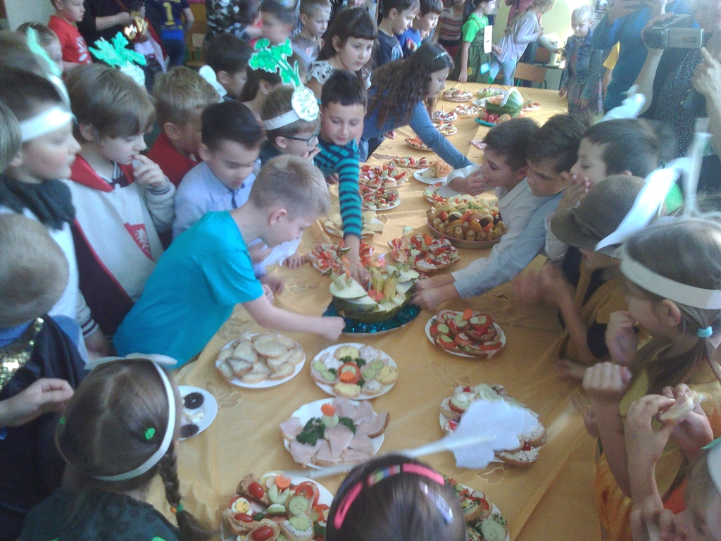 Zdrowe przekąski, kolorowe kanapki i koktajle owocowo-jogurtowe – to tylko część pysznych potraw, które 8 listopada pojawiły się na stołach w szkolnej świetlicy. Tego dnia czniowie z klas 0-3 wraz z wychowawcami i rodzicami, obchodzili ogólnopolskie święto śniadania. Poza zjedzeniem smacznego i zdrowego posiłku, dzieci dowiedziały się, dlaczego śniadanie jest tak ważne dla prawidłowego rozwoju ich organizmu.
