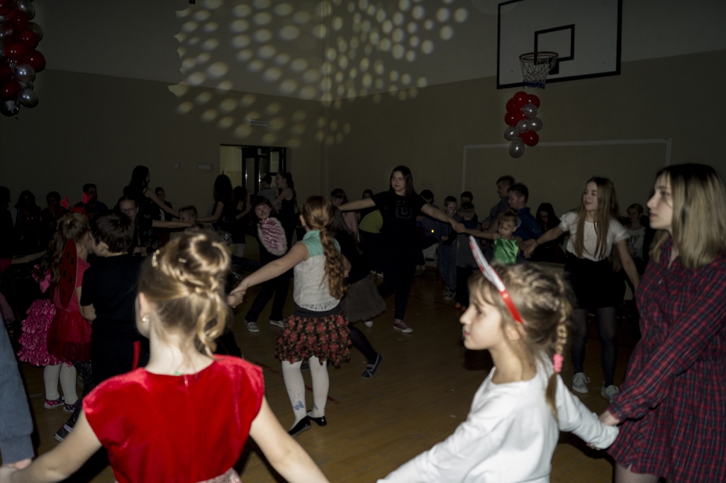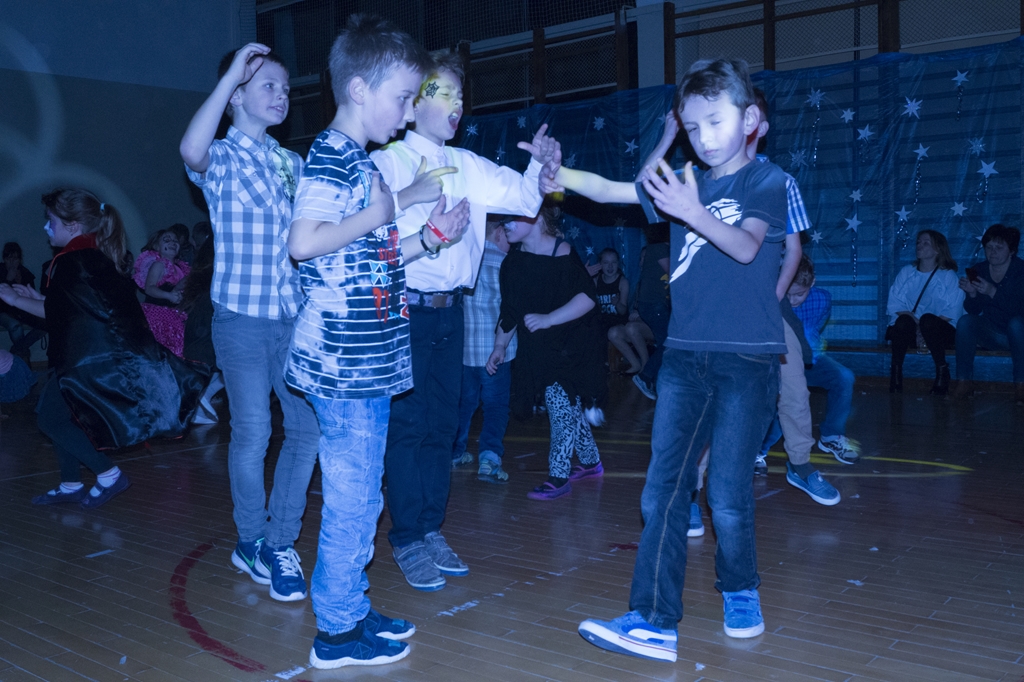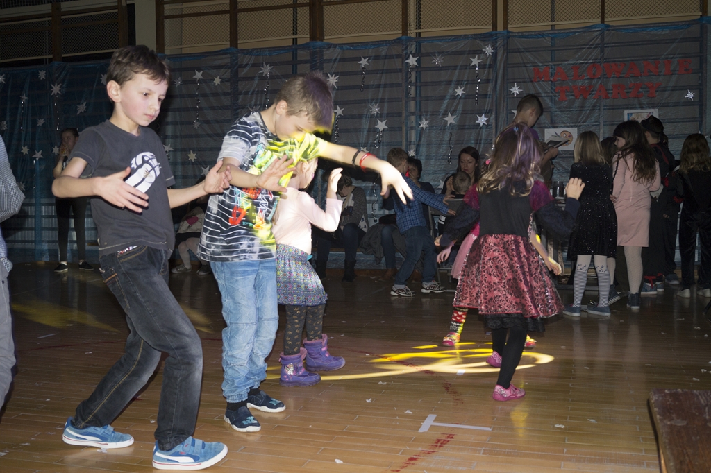 Po przedstawieniu odbył się dyskotekowy bal maskowy. Nad oprawą muzyczną czuwał profesjonalny DJ, a mamy uczniów urządziły im malowanie twarzy. Zabawę najmłodszym dzieciom organizowały ich starsze koleżanki z SU.